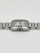 The dial is a masterclass in Cartier’s "Parisian Chic" DNA. It features a silvered flinqué dial with a subtle sunray texture that radiates from the center, providing a sophisticated backdrop for the bold black Roman numerals and the iconic chemin-de-fer (railway) minute track. The blued-steel sword-shaped hands provide a sharp, vibrant contrast, ensuring effortless legibility. Every element is balanced to favor aesthetic purity, omitting a date window to preserve the harmony of the "Small" proportions.