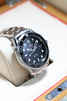 The Omega Seamaster Diver 300M reference 212.30.41.20.01.003 represents one of the final and most refined evolutions of the pre-ceramic Seamaster era—a generation that helped define modern Omega design. Now discontinued and replaced by ceramic-dial versions, this model stands as a closing, highly collected chapter of a nostalgically regarded period of the Diver 300M line.