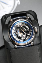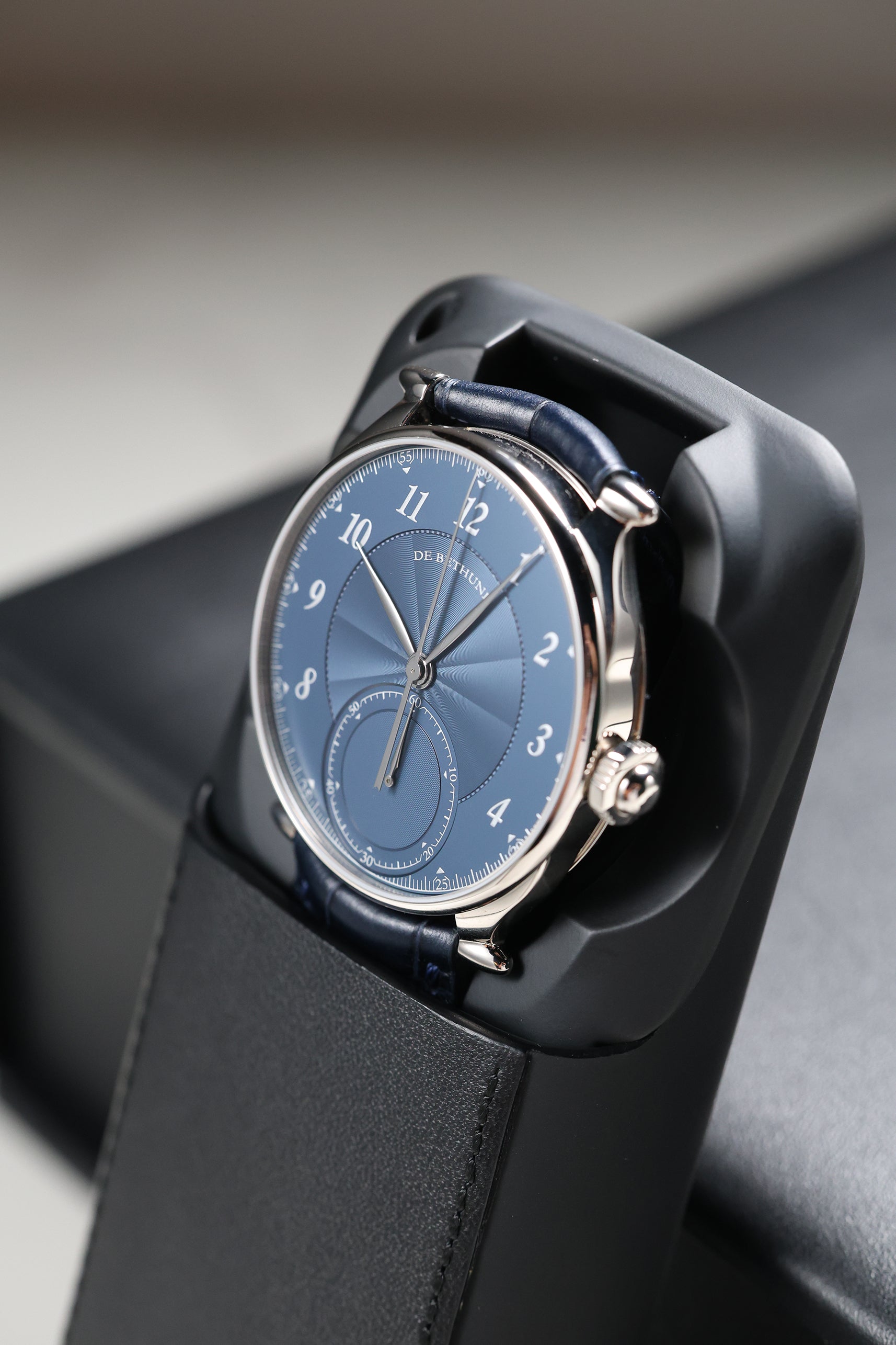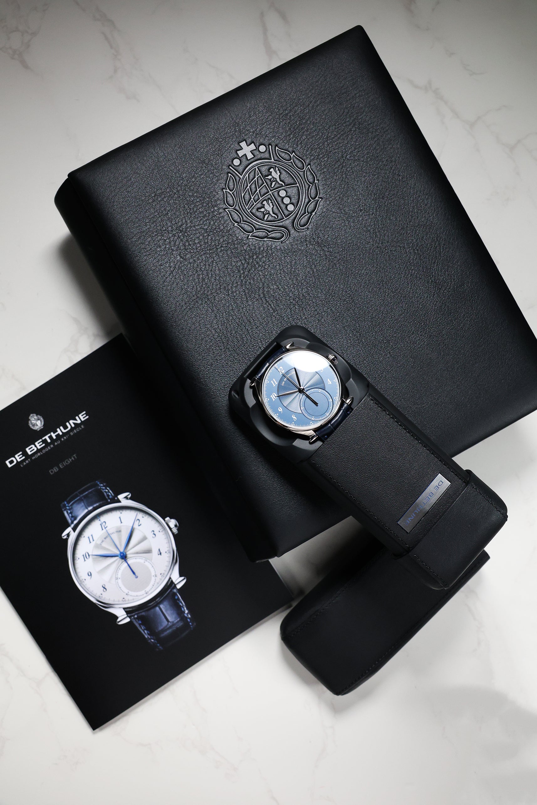 Beneath this artistic facade lies the Calibre DB3000, De Bethune’s 31st in-house movement. This manually wound monopusher engine is a marvel of modern horology, operating at 28,800 vph with a substantial 60-hour power reserve. It features De Bethune’s patented titanium balance wheel with white gold inserts, optimized for temperature stability and aerodynamic efficiency, alongside their proprietary flat terminal curve balance spring. The architecture of the movement is visible through the sapphire caseback, revealing hand-beveled steel and mirror-polished finishes that represent the pinnacle of haute horlogerie.