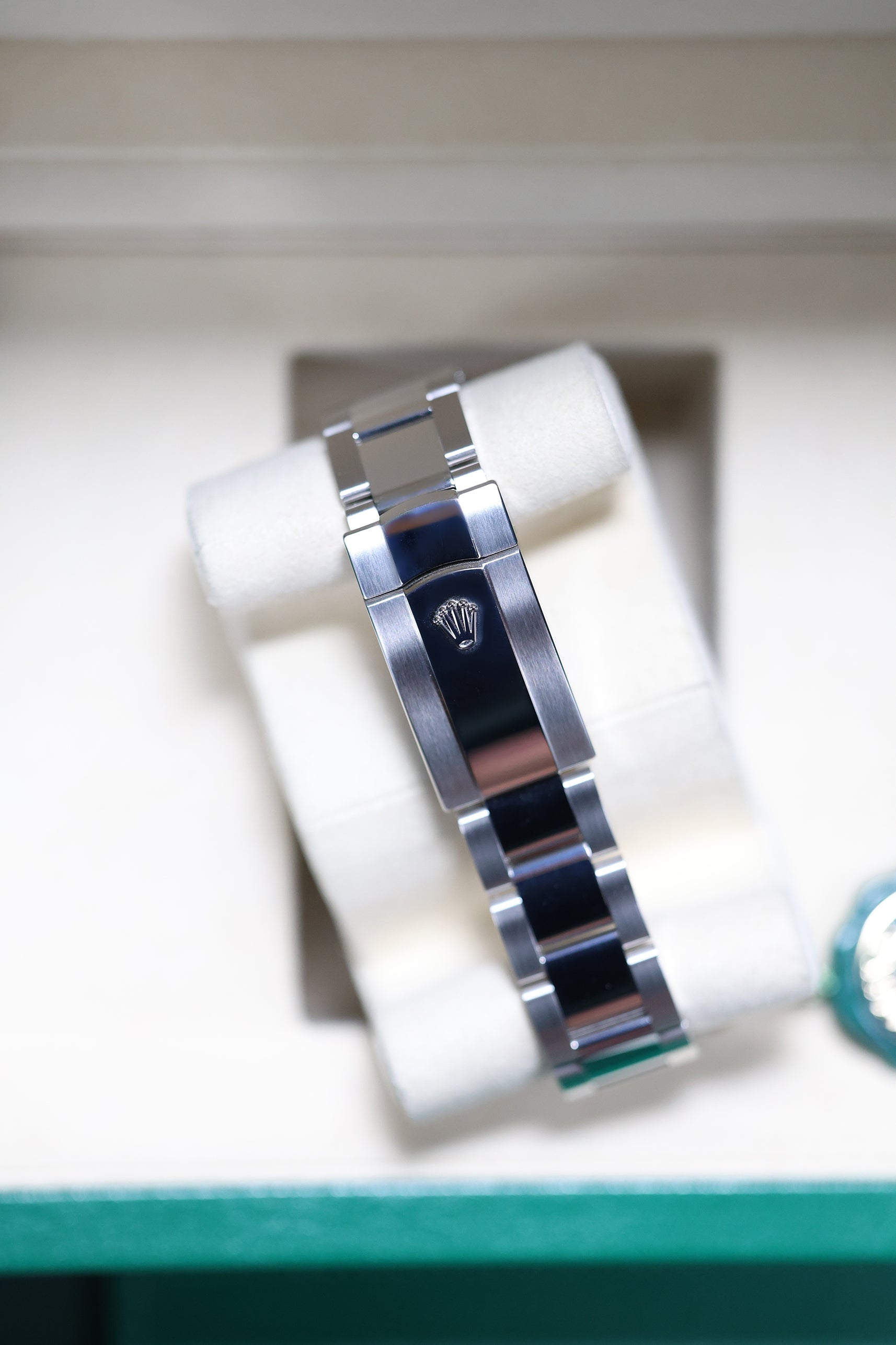 This watch is defined by a seamless blend of polished and brushed surfaces. The 41mm Oystersteel case features a sleek, smooth domed bezel, which gives the watch a clean, contemporary feel. Paired with the robust Oyster bracelet, this combination creates a rugged yet refined look that ensures both exceptional comfort and a strong wrist presence, making it a versatile choice for any occasion.
