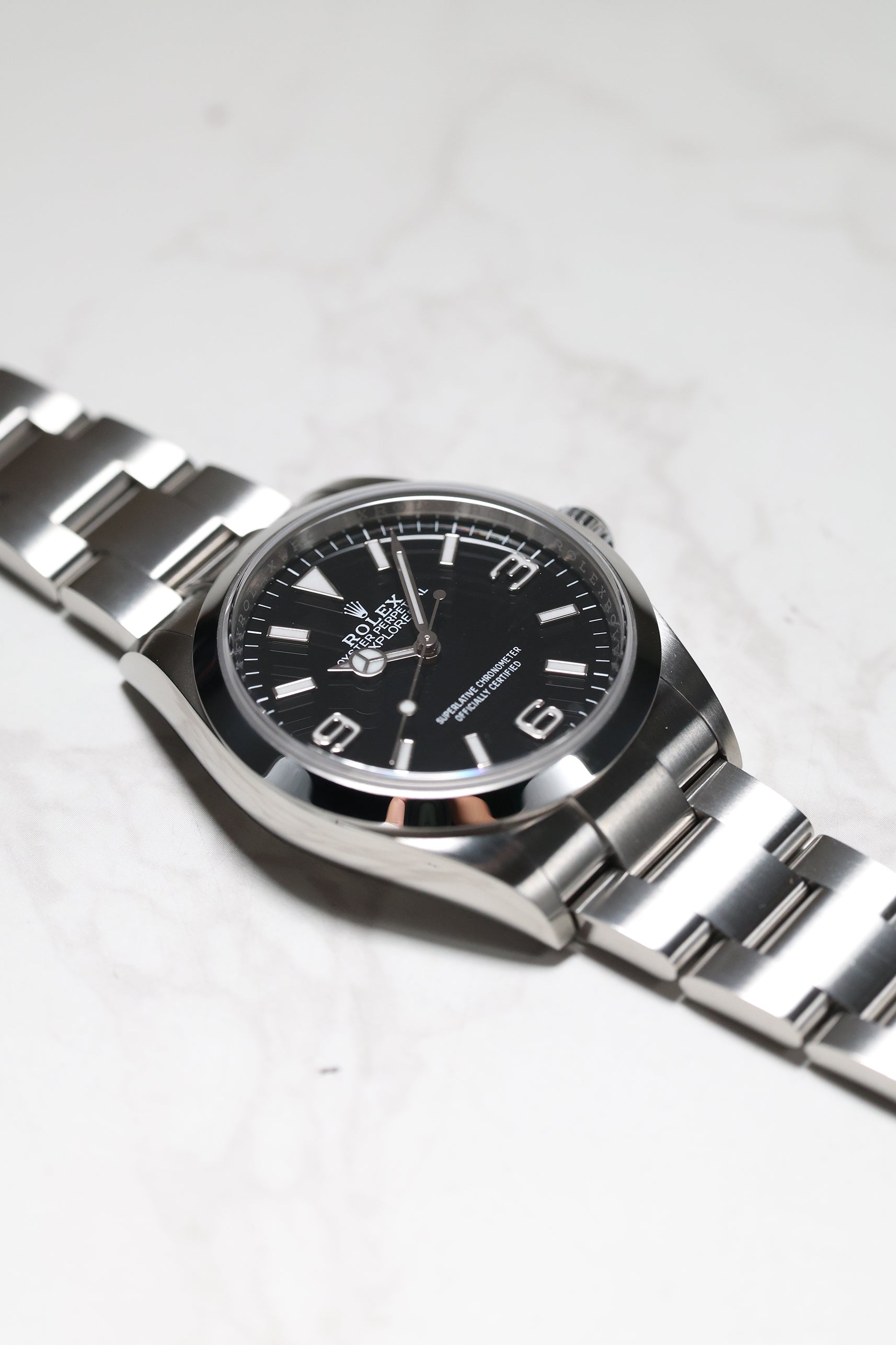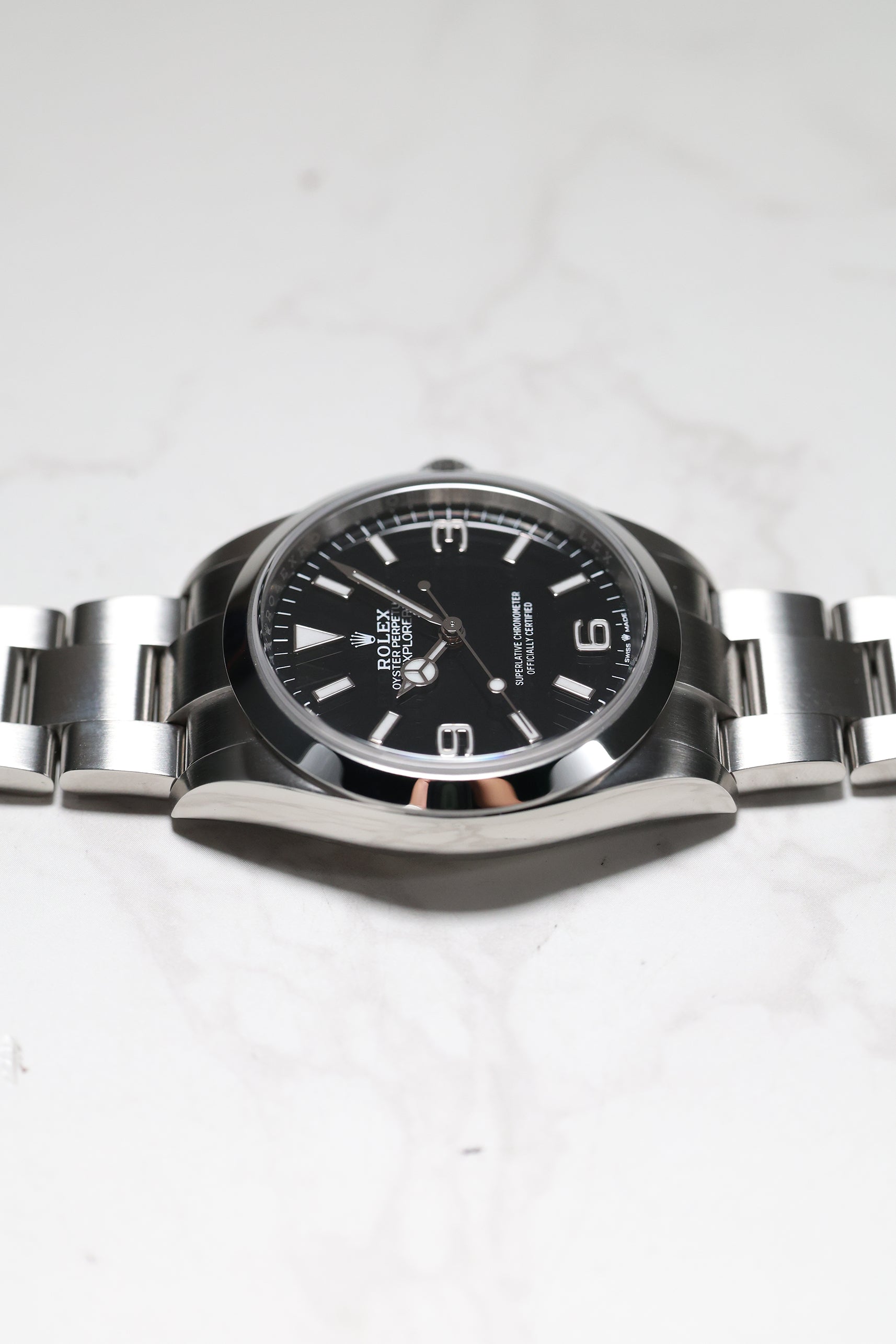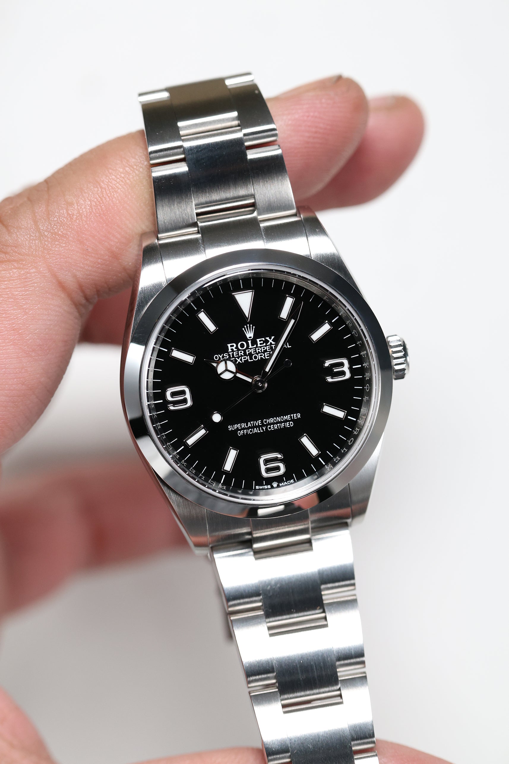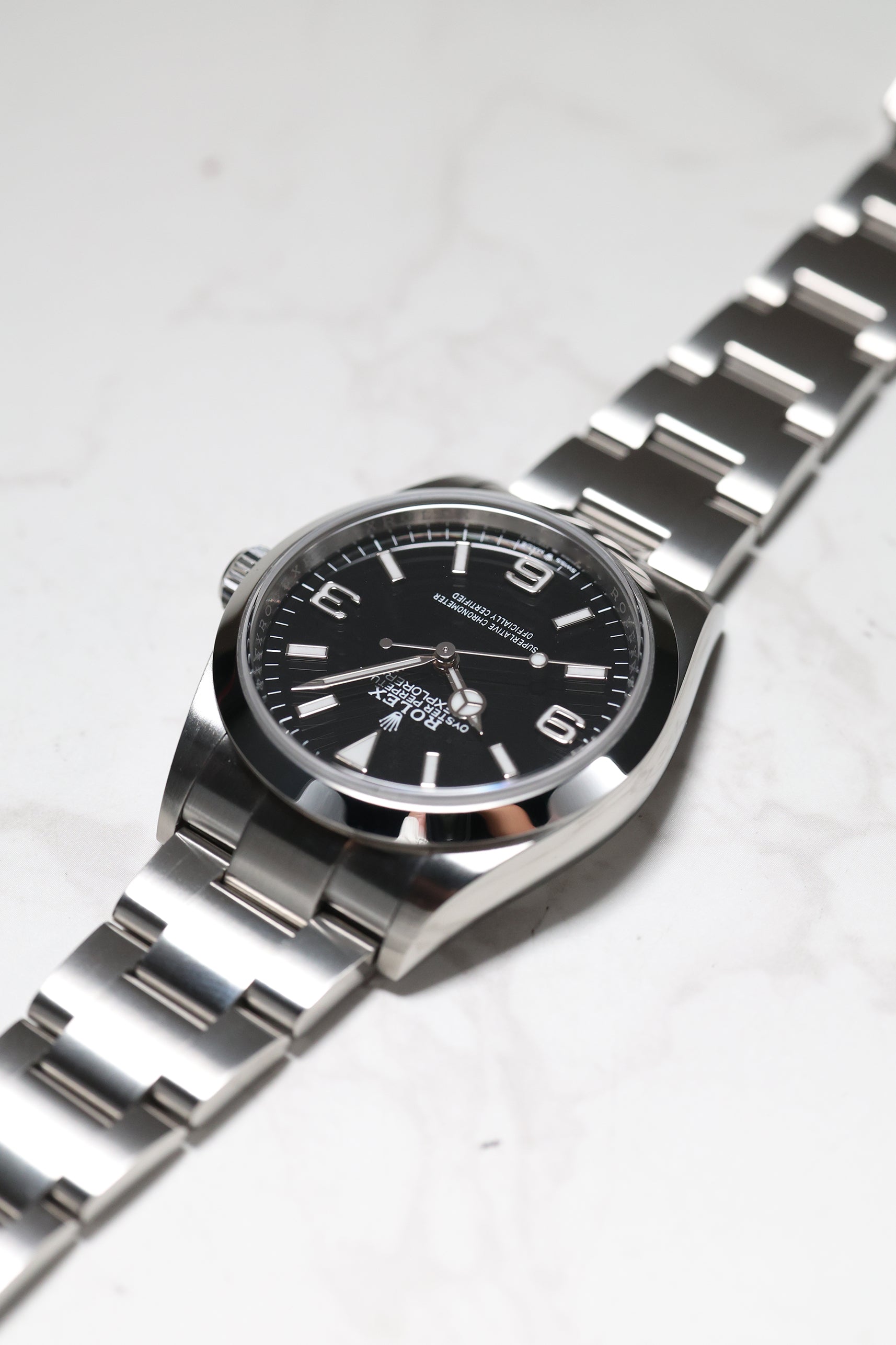 The watch comes on the sturdy Oyster bracelet, known for its durability and comfort. The Oysterlock clasp, paired with the Easylink extension system, allows for easy adjustments to ensure the perfect fit. The Rolex Explorer 1 reference 124270 remains a timeless, highly functional tool watch with a refined aesthetic, making it a must-have for collectors and enthusiasts alike. Its combination of heritage, performance, and elegance makes it a versatile choice for both daily wear and exploration.