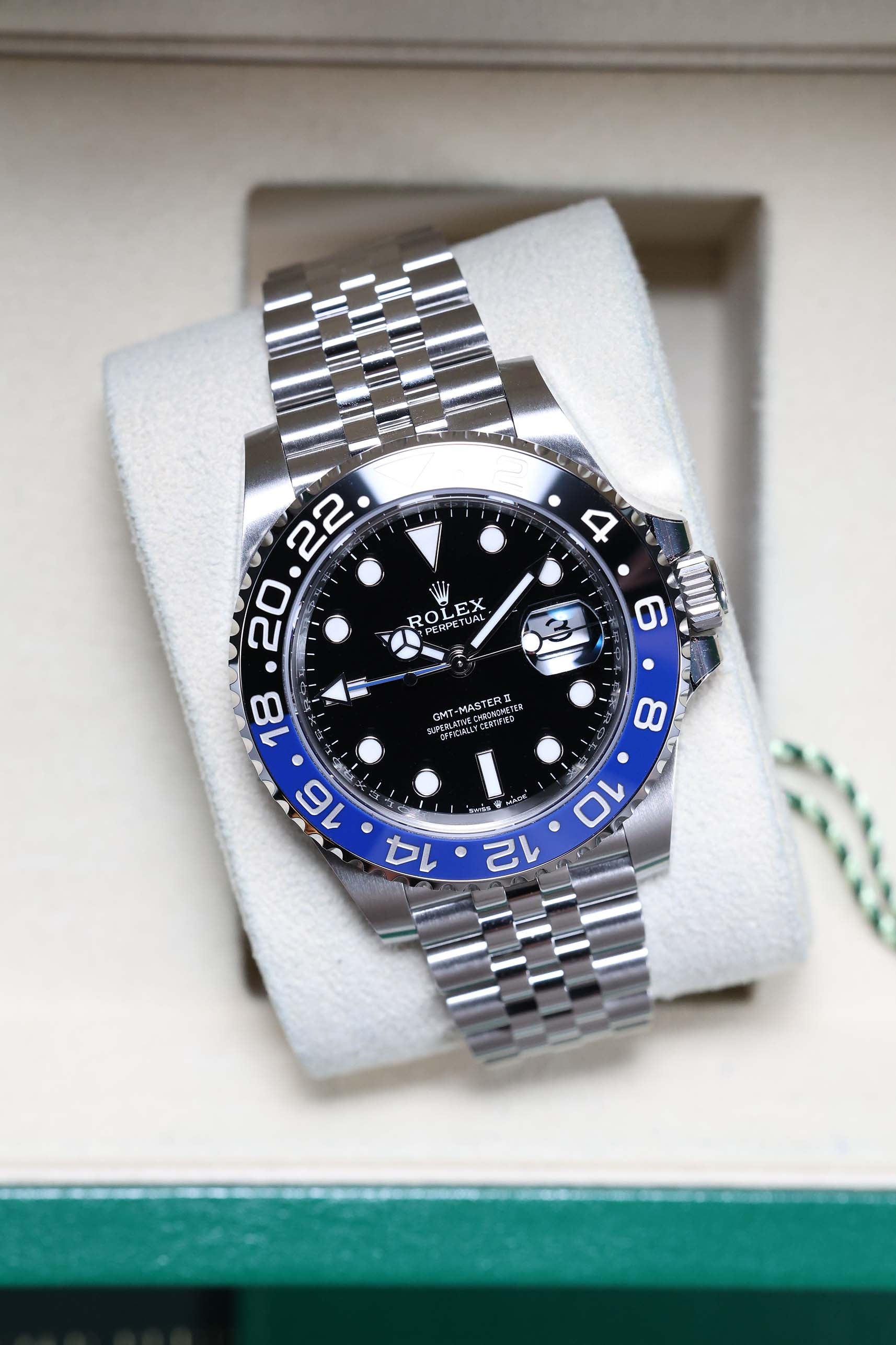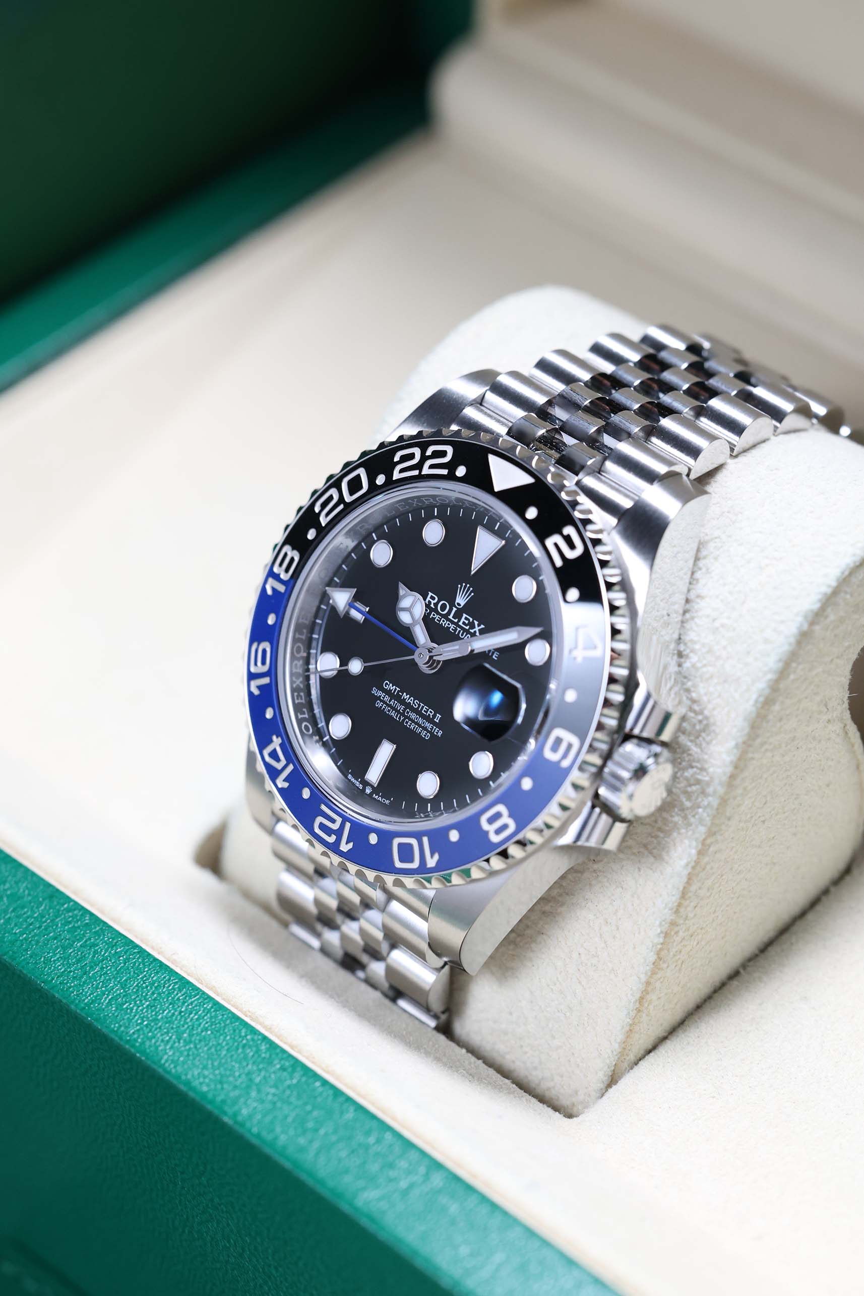 Powering this exceptional timepiece is the high-performance Rolex in-house Calibre 3285 automatic movement. Engineered for accuracy and reliability, it is equipped with Rolex’s efficient Chronergy escapement and delivers a substantial 70-hour power reserve. The 126710BLNR is a beloved choice for collectors and global citizens alike, embodying Rolex's legacy of exceptional craftsmanship with a design ready for any journey.