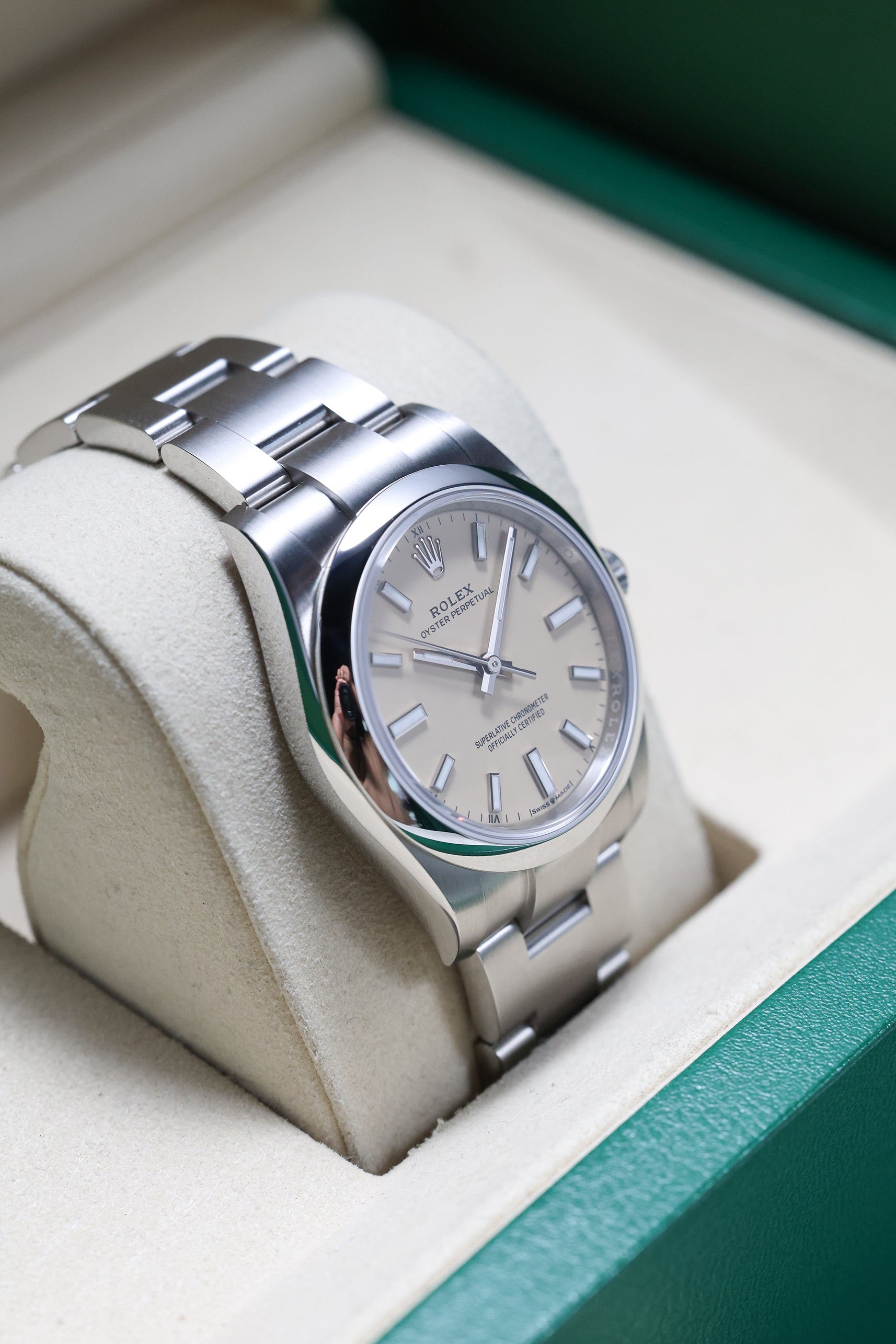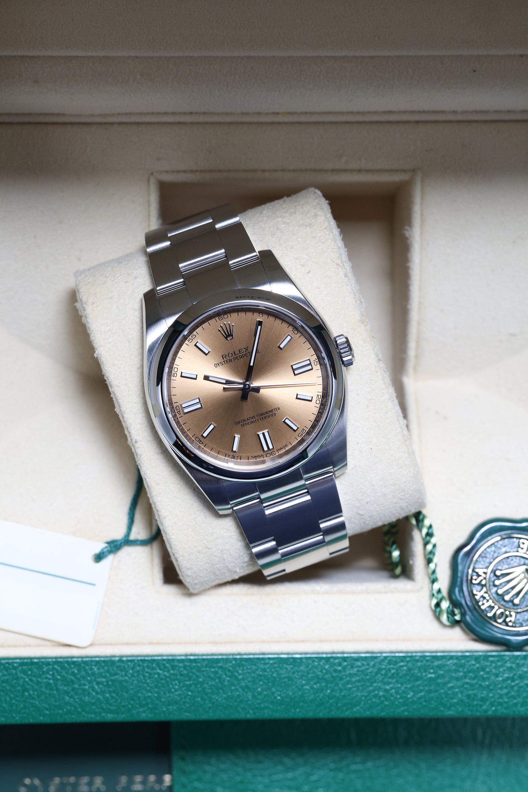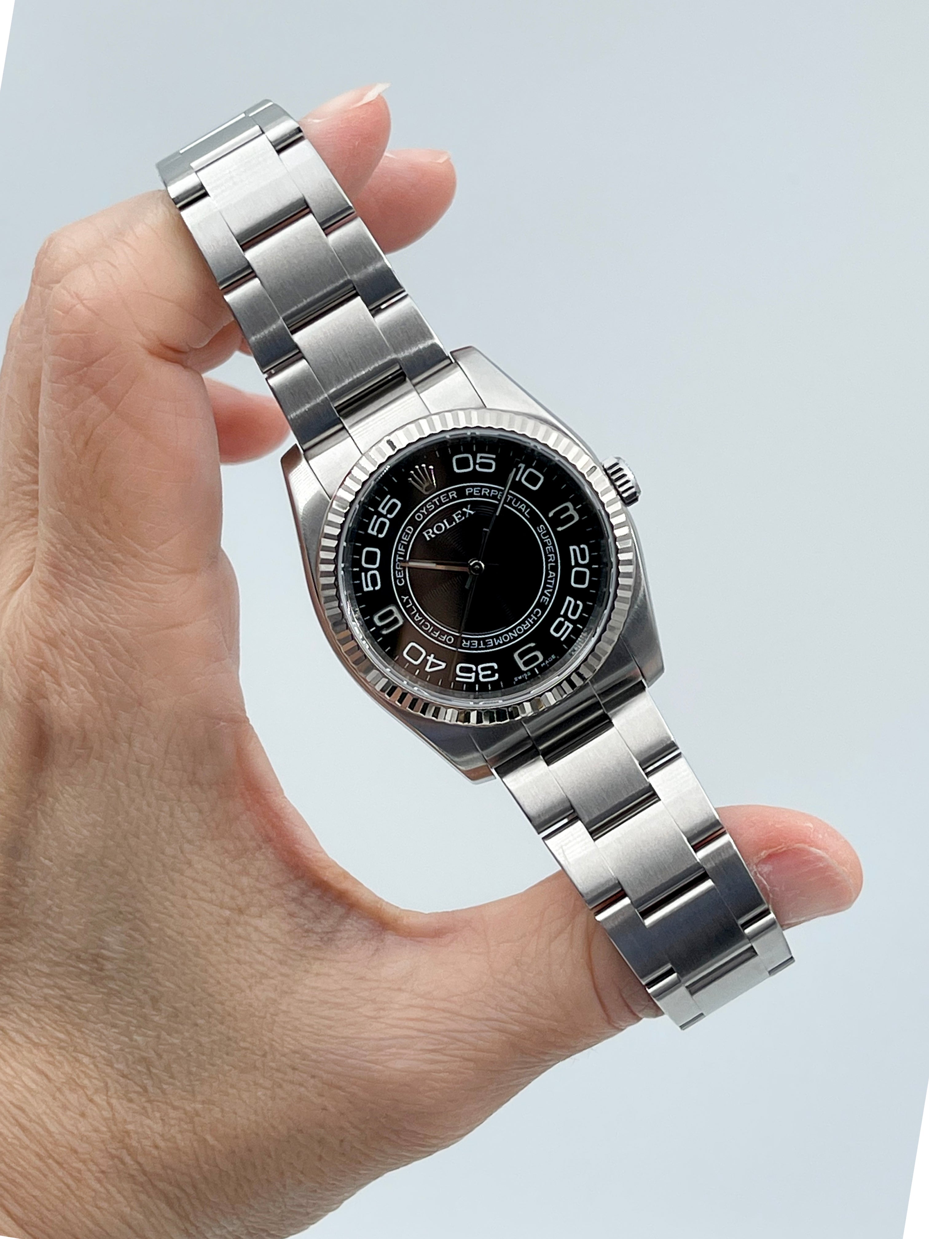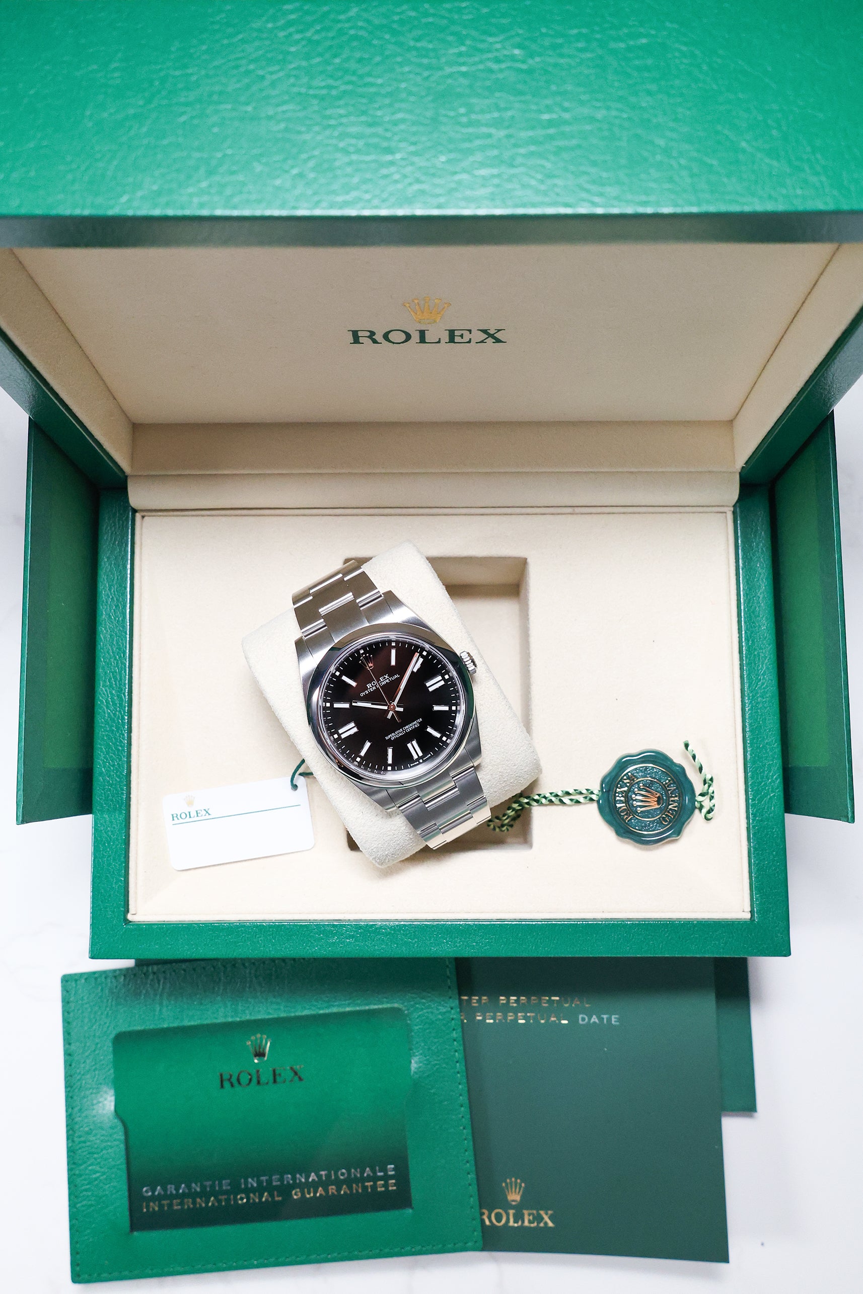 We verify reference, configuration, serial, movement, dial, case, bracelet, clasp, and key components. Every watch is checked for correctness and consistency before it is listed.