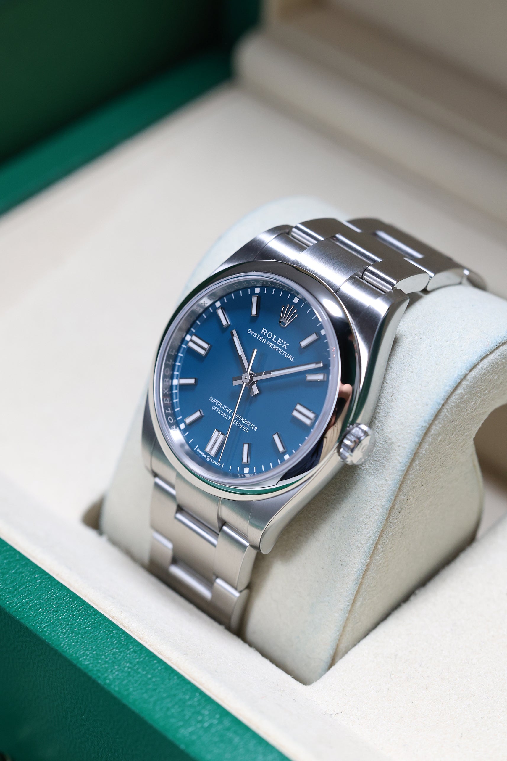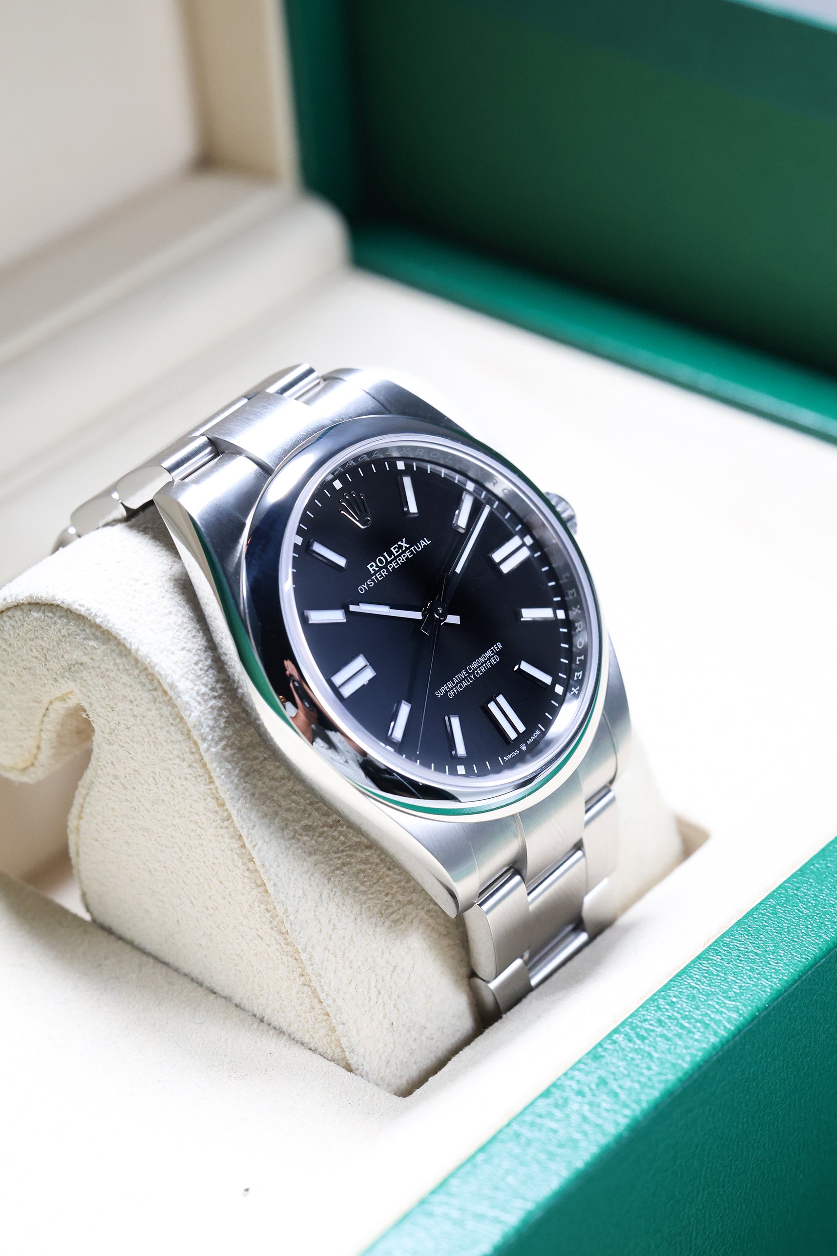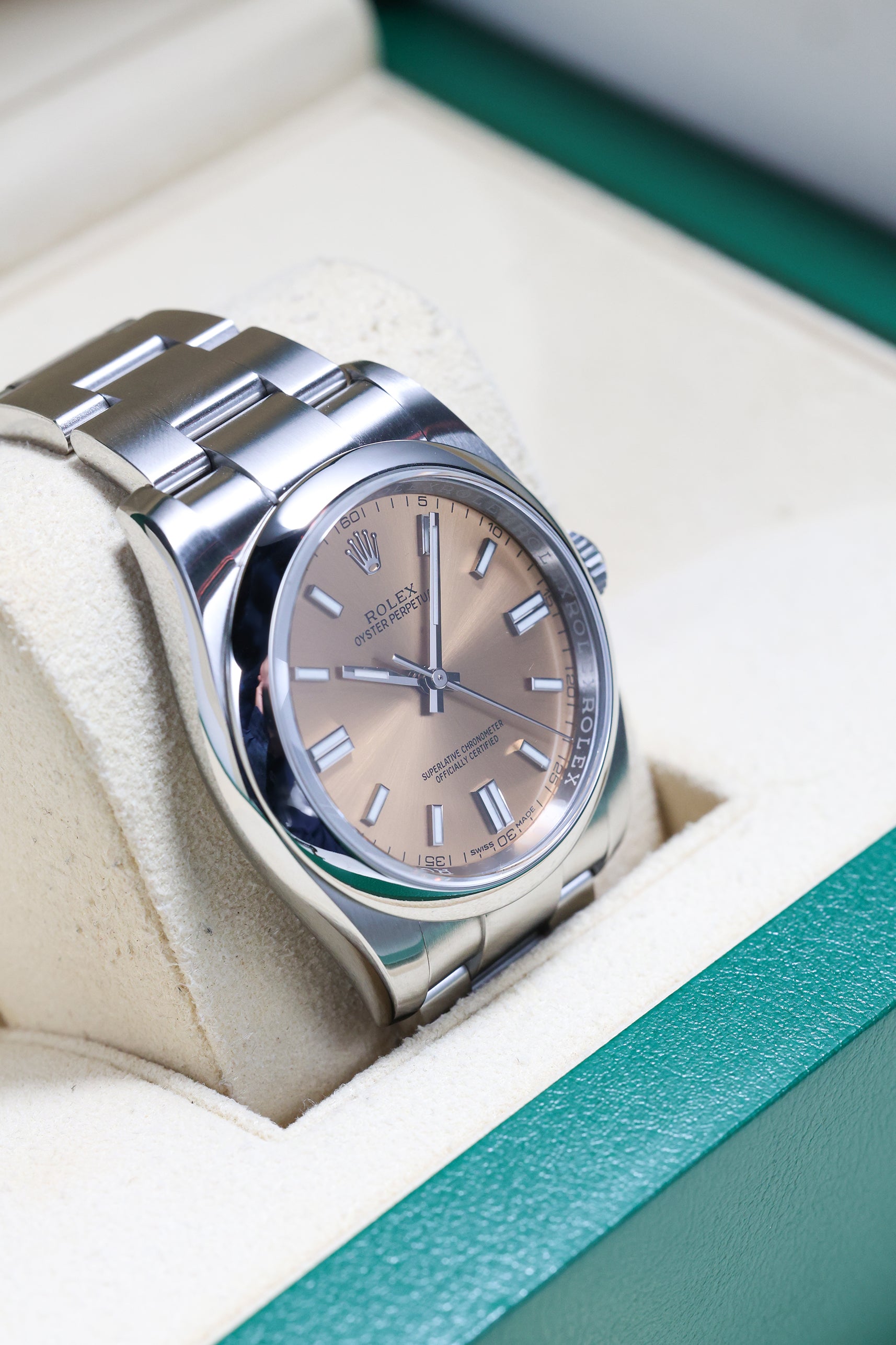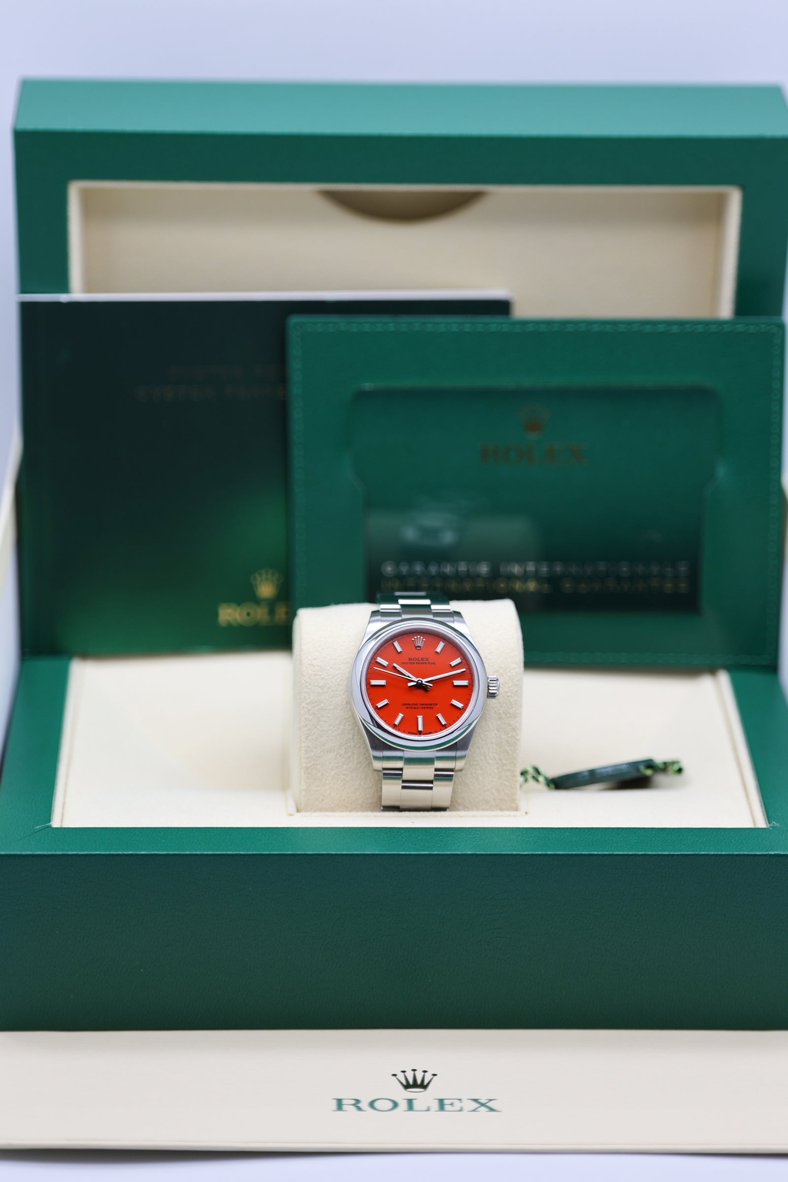We verify reference, configuration, serial, movement, dial, case, bracelet, clasp, and key components. Every watch is checked for correctness and consistency before it is listed.