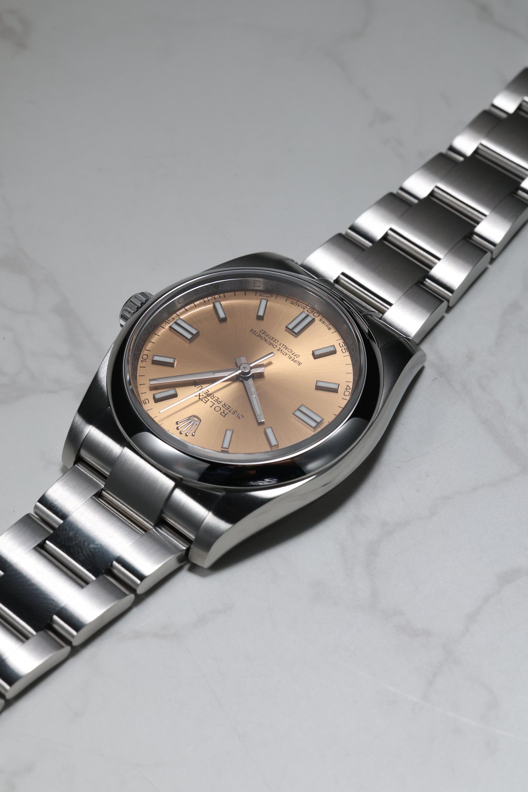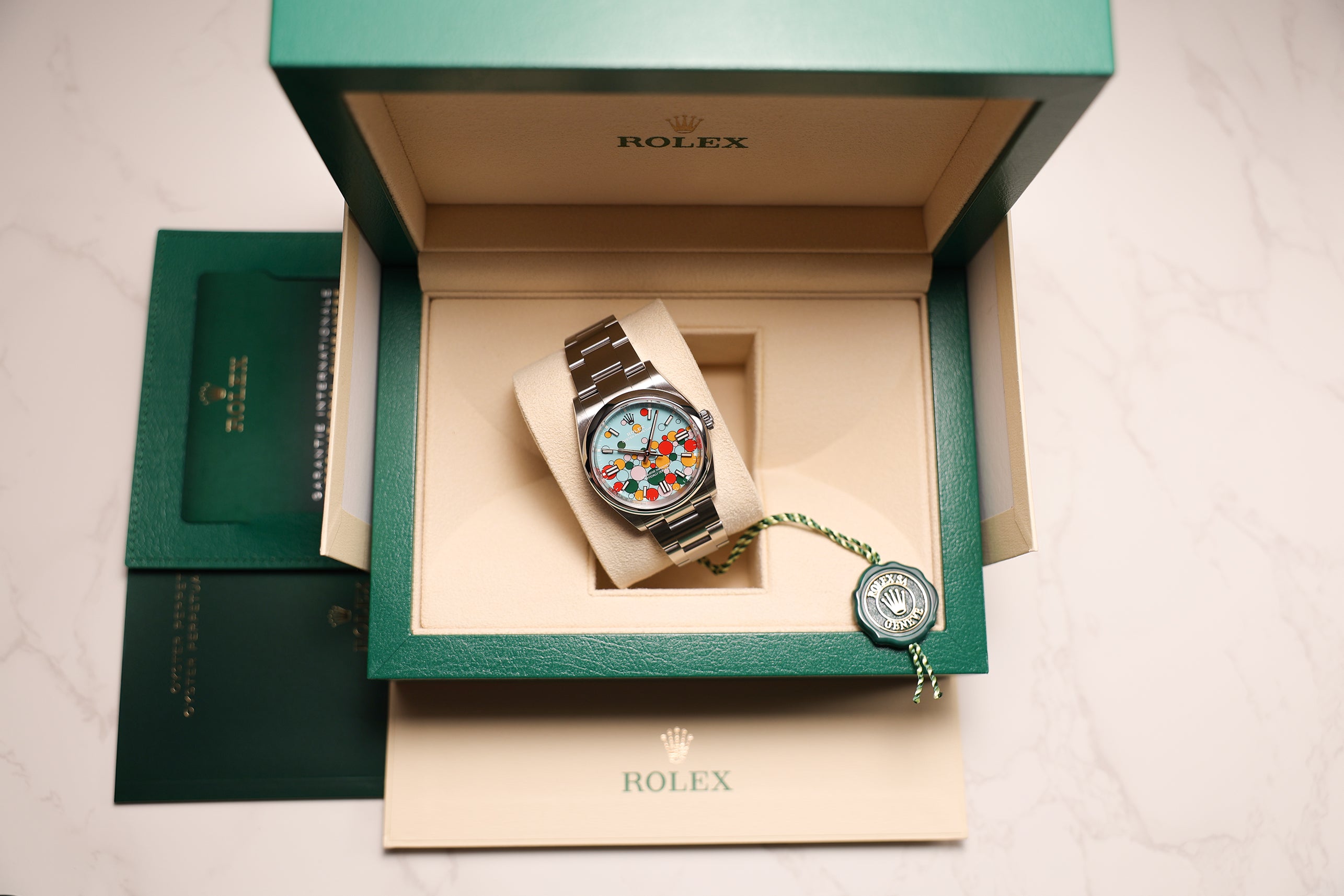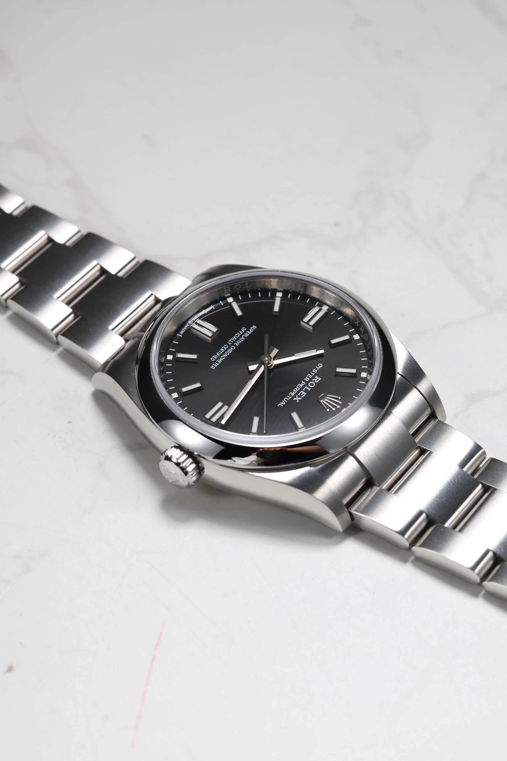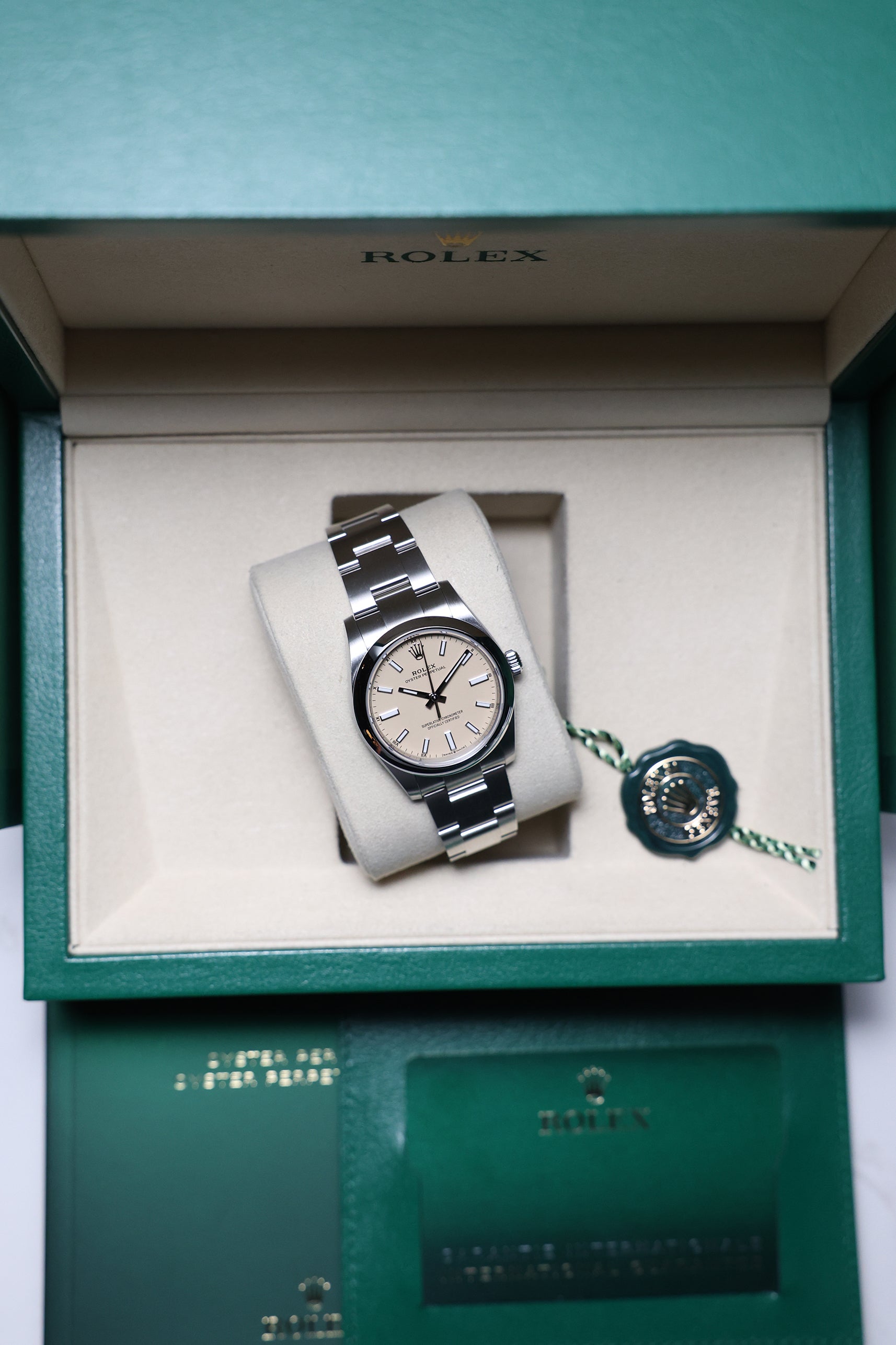 We verify reference, configuration, serial, movement, dial, case, bracelet, clasp, and key components. Every watch is checked for correctness and consistency before it is listed.