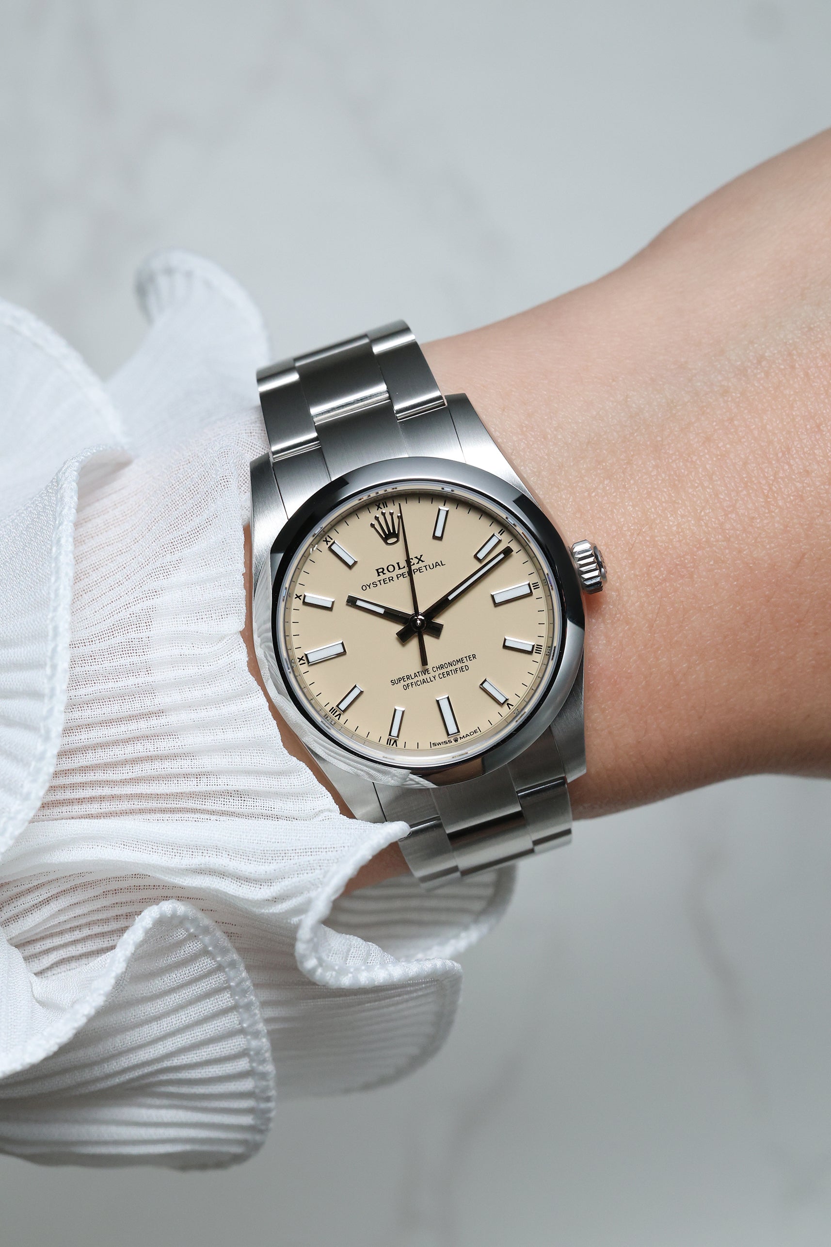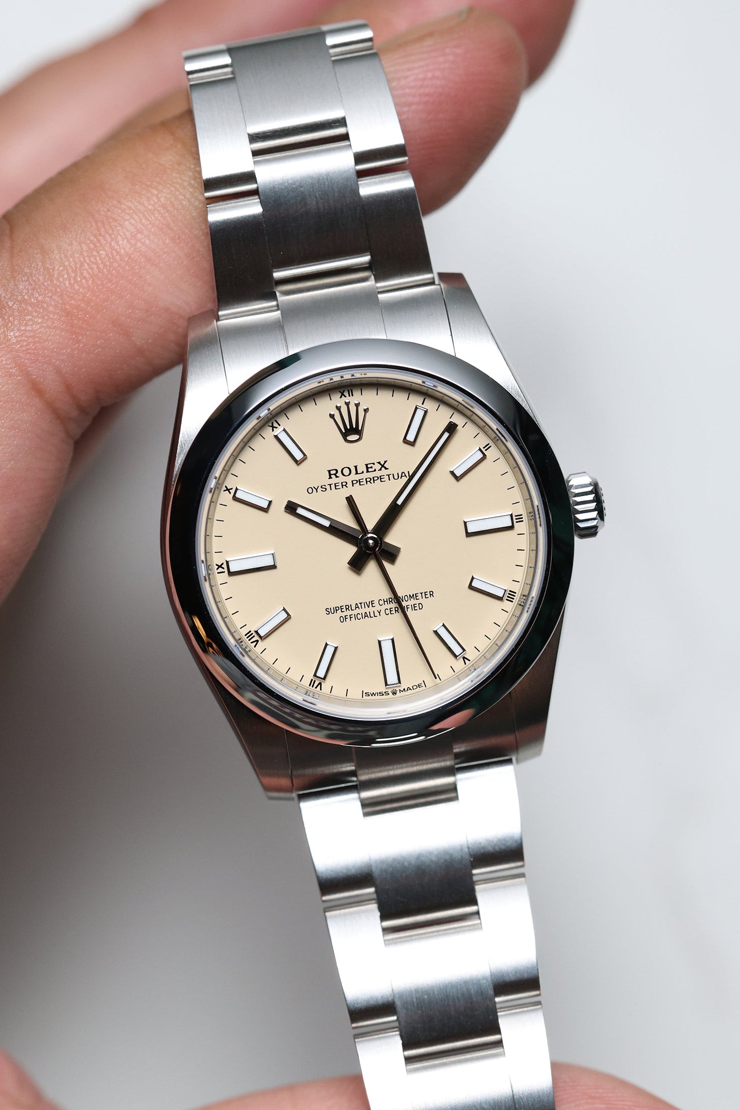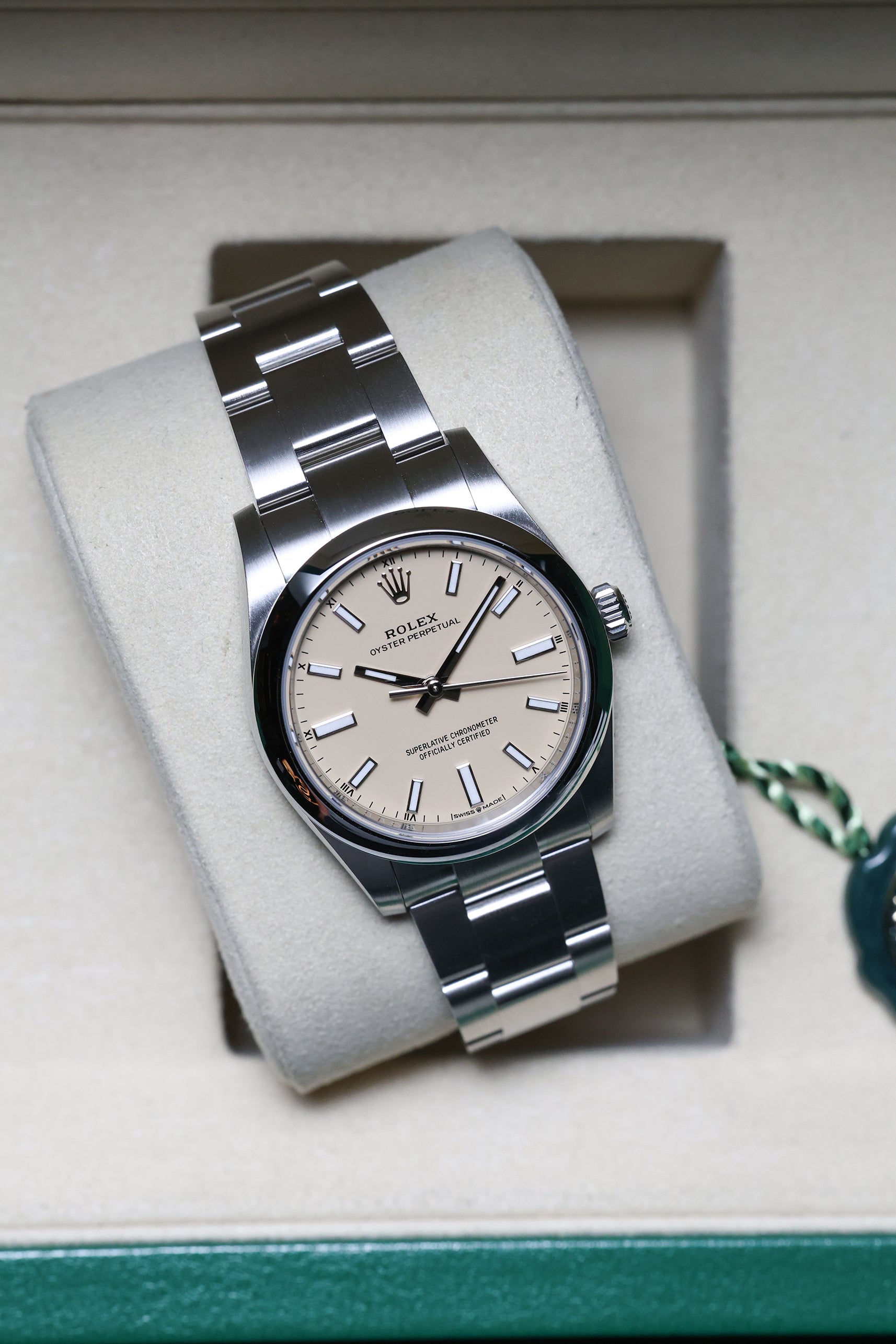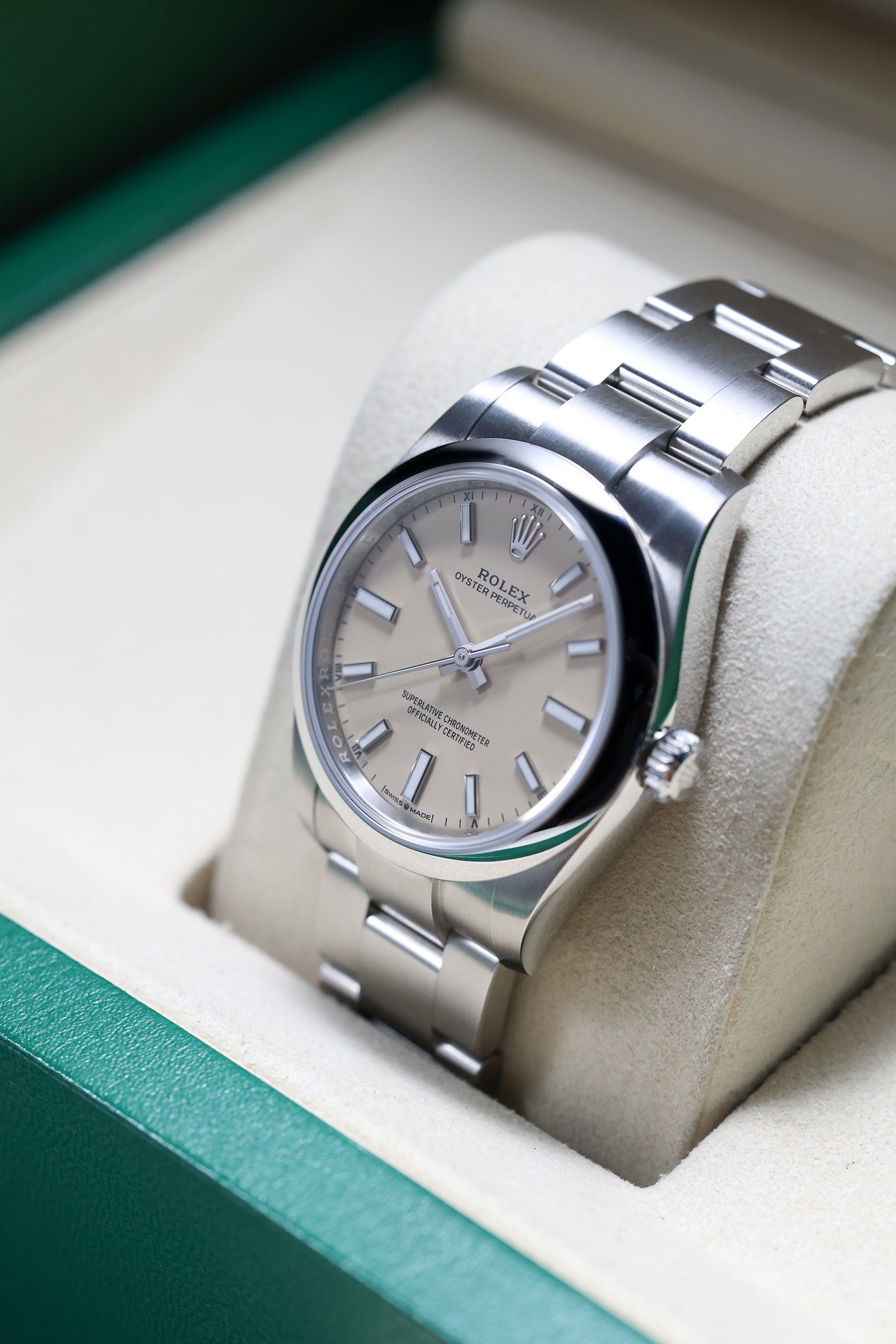 We verify reference, configuration, serial, movement, dial, case, bracelet, clasp, and key components. Every watch is checked for correctness and consistency before it is listed.