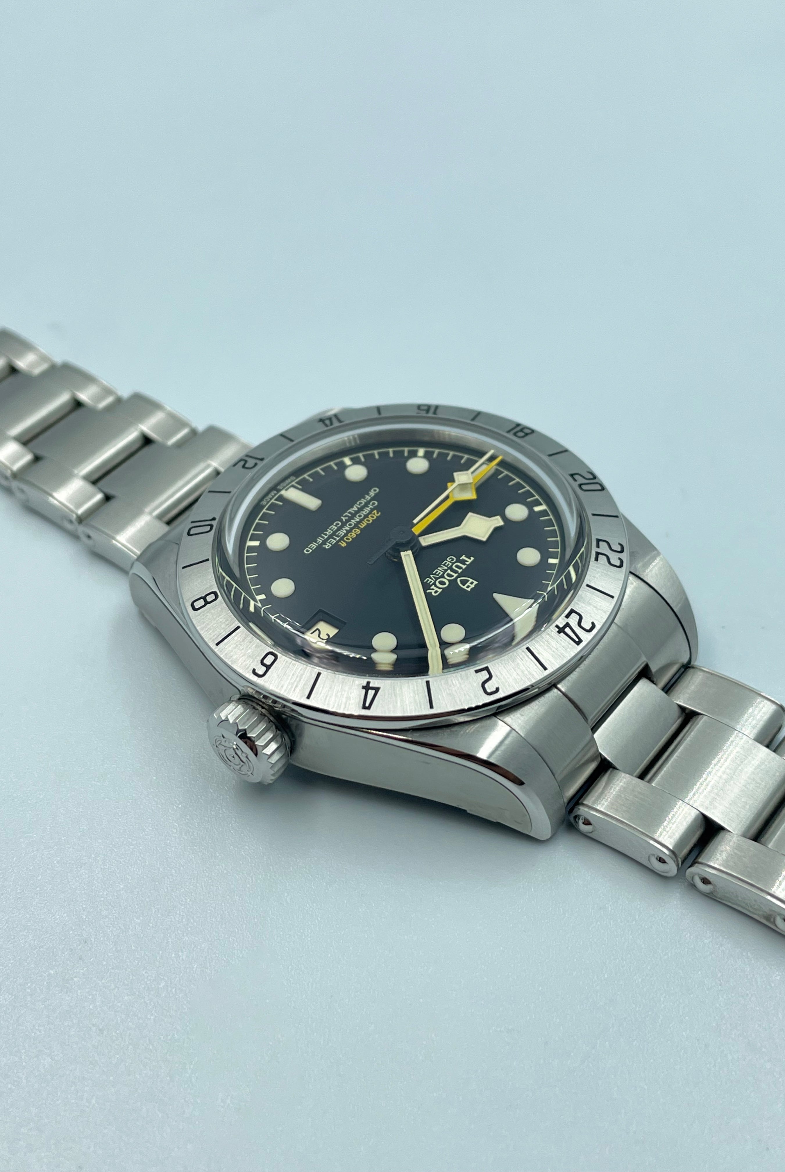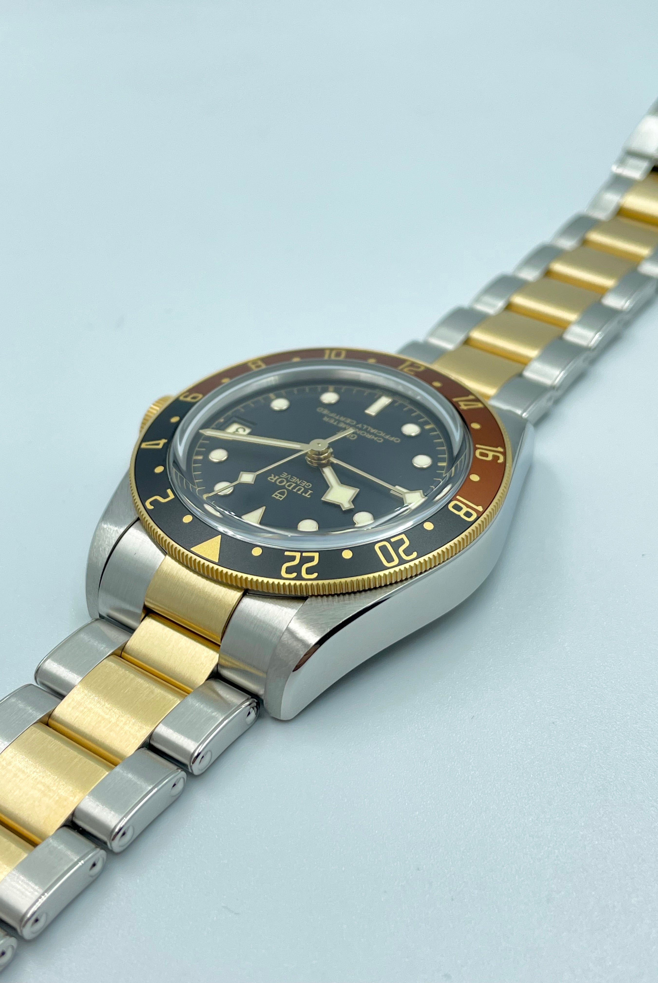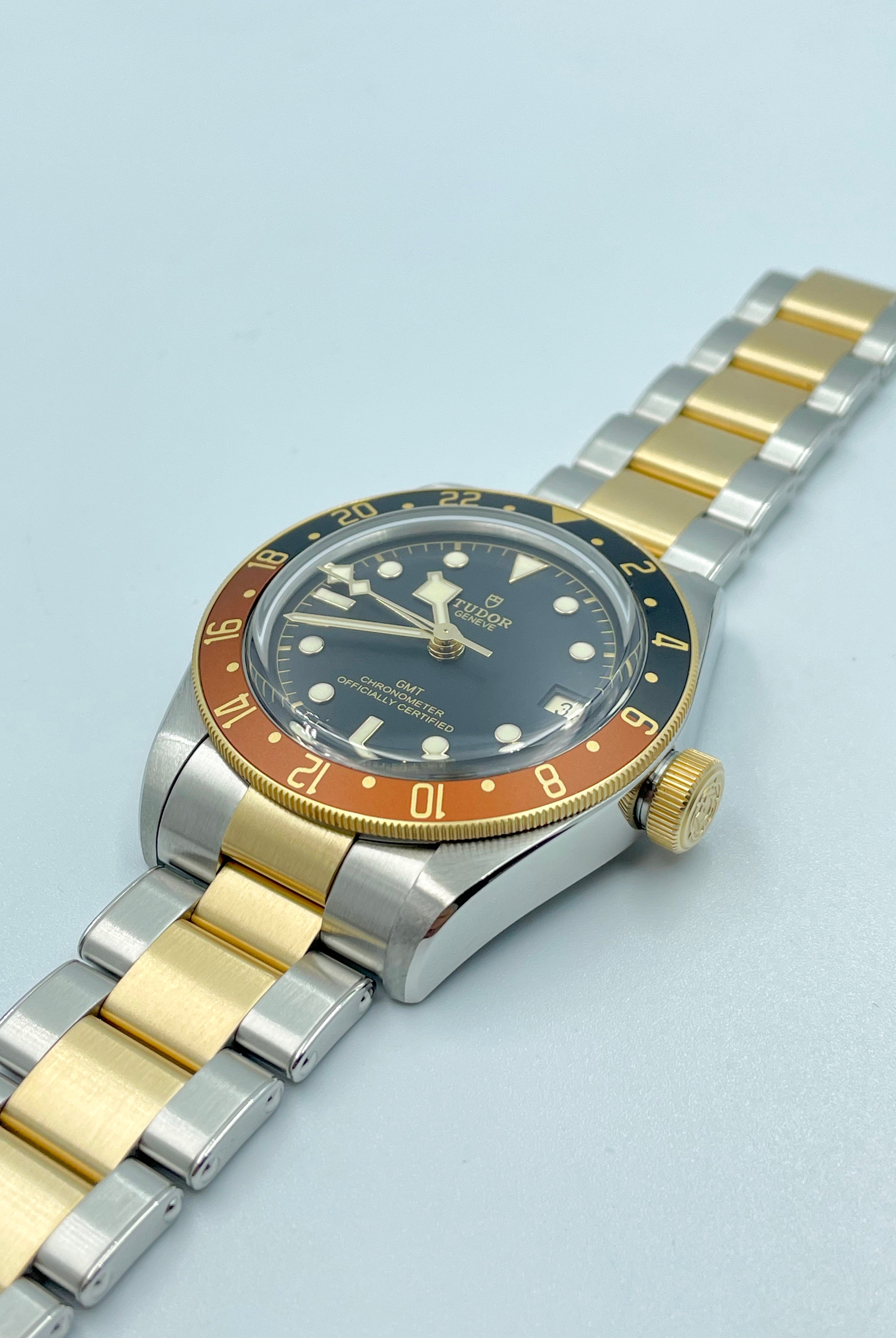 We verify reference, configuration, serial, movement, dial, case, bracelet, clasp, and key components. Every watch is checked for correctness and consistency before it is listed.
