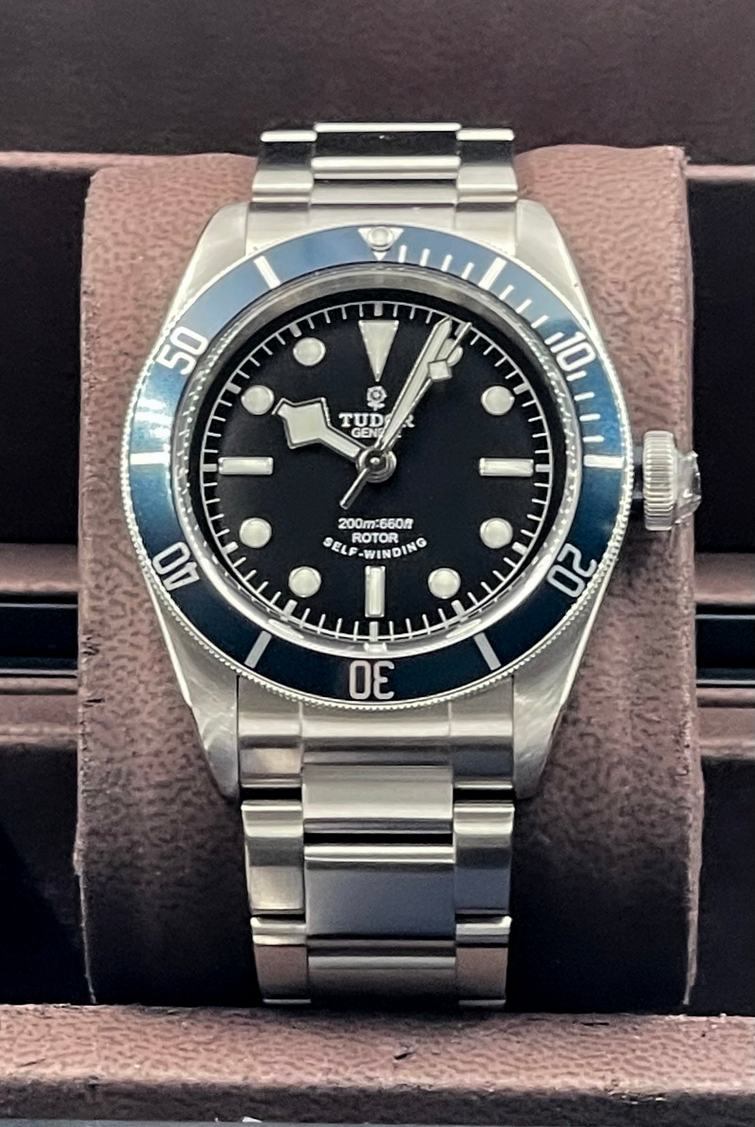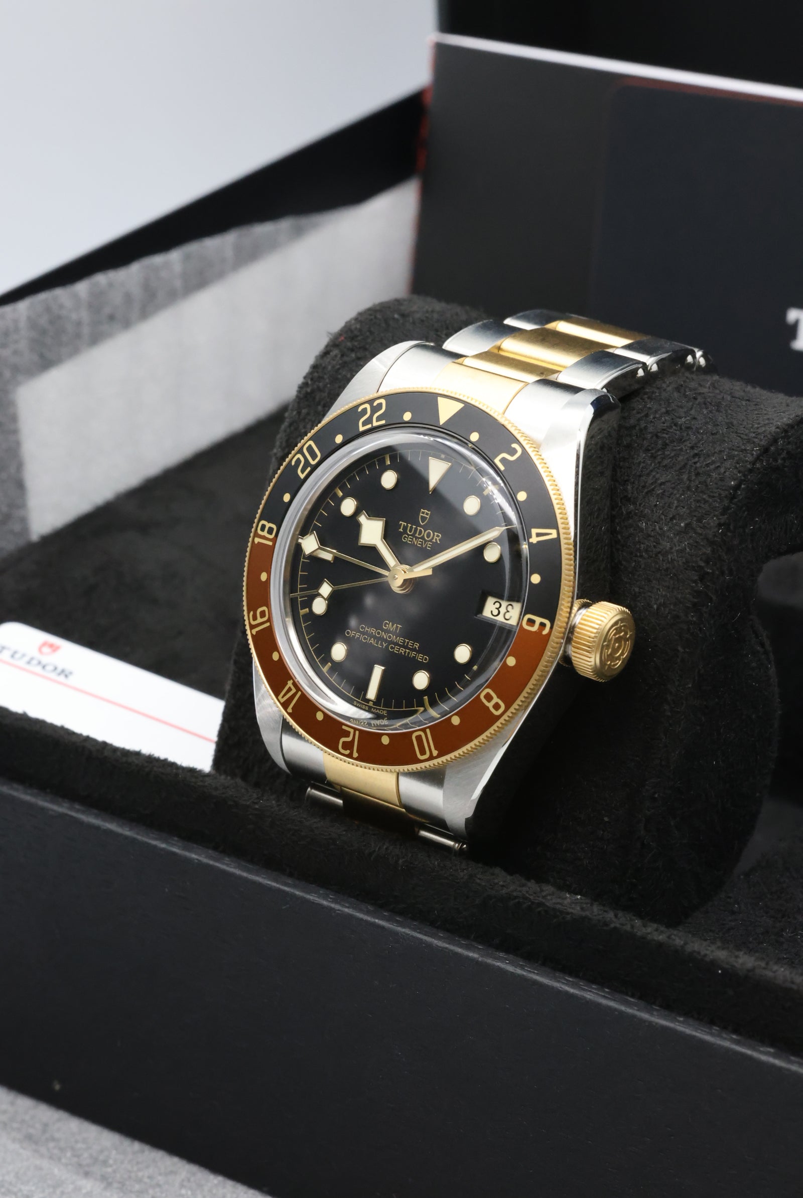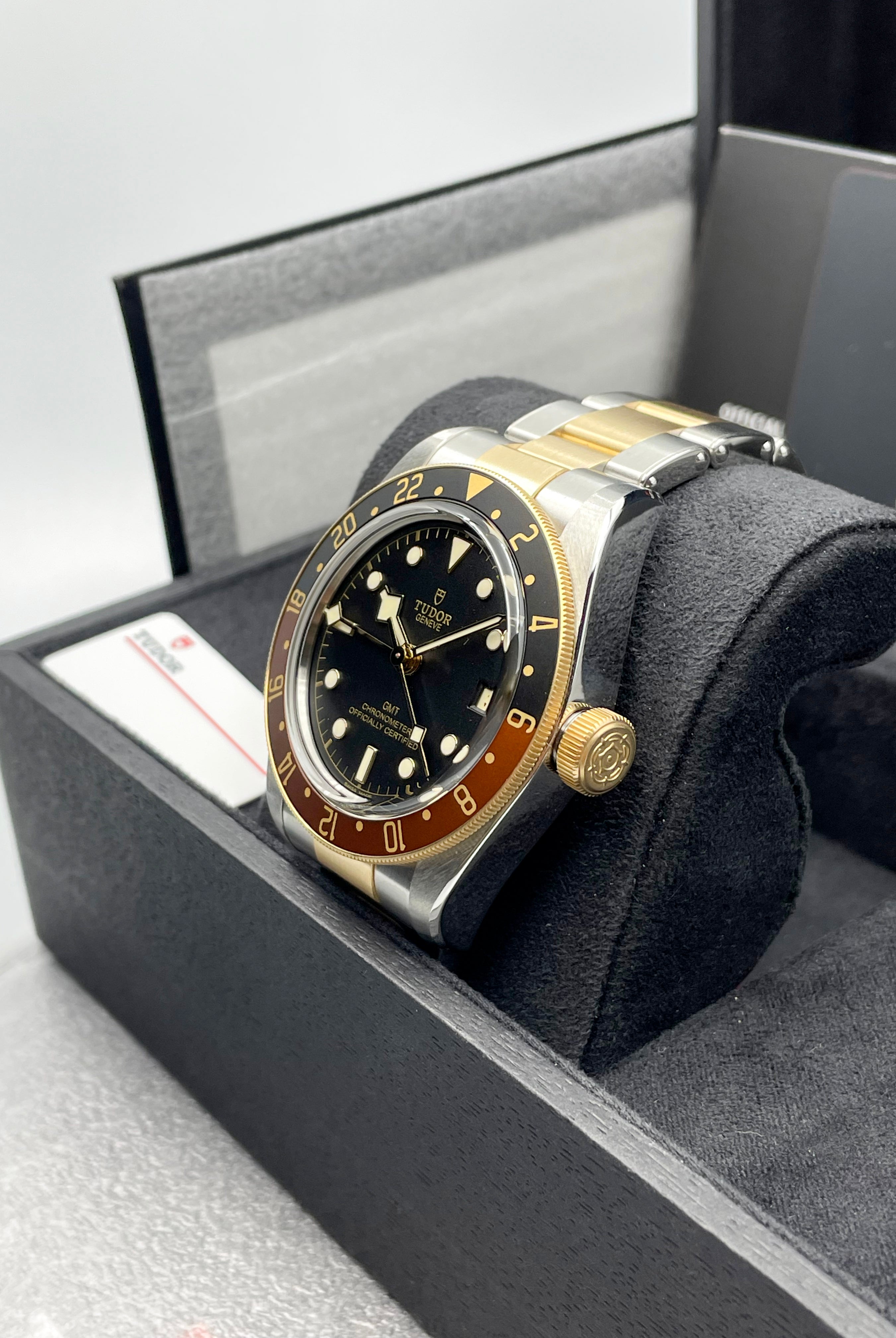 We verify reference, configuration, serial, movement, dial, case, bracelet, clasp, and key components. Every watch is checked for correctness and consistency before it is listed.