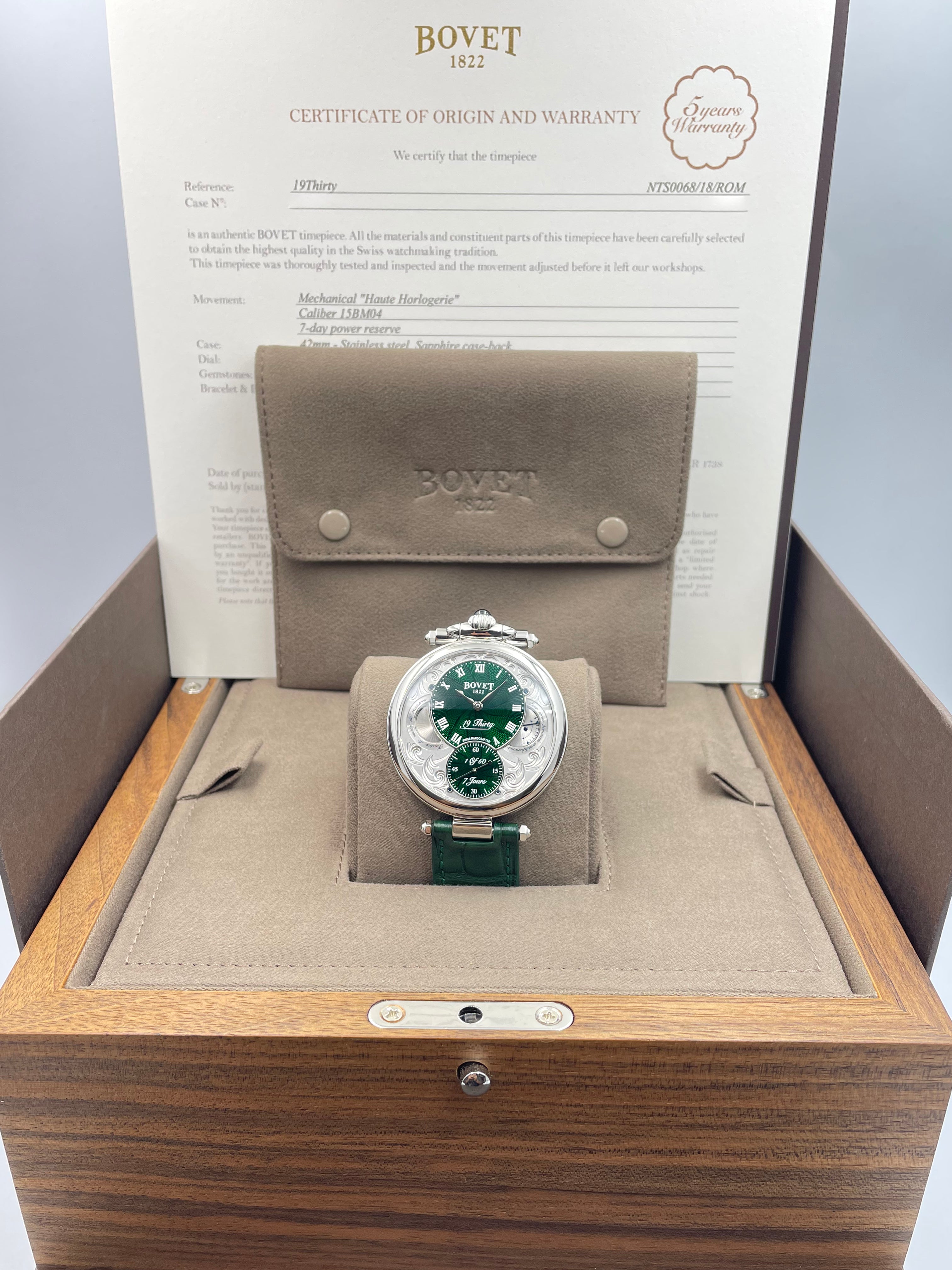 | Movement : | Bovet Calibre 15BM04, 168 hours Power Reserve, Manual Winding |