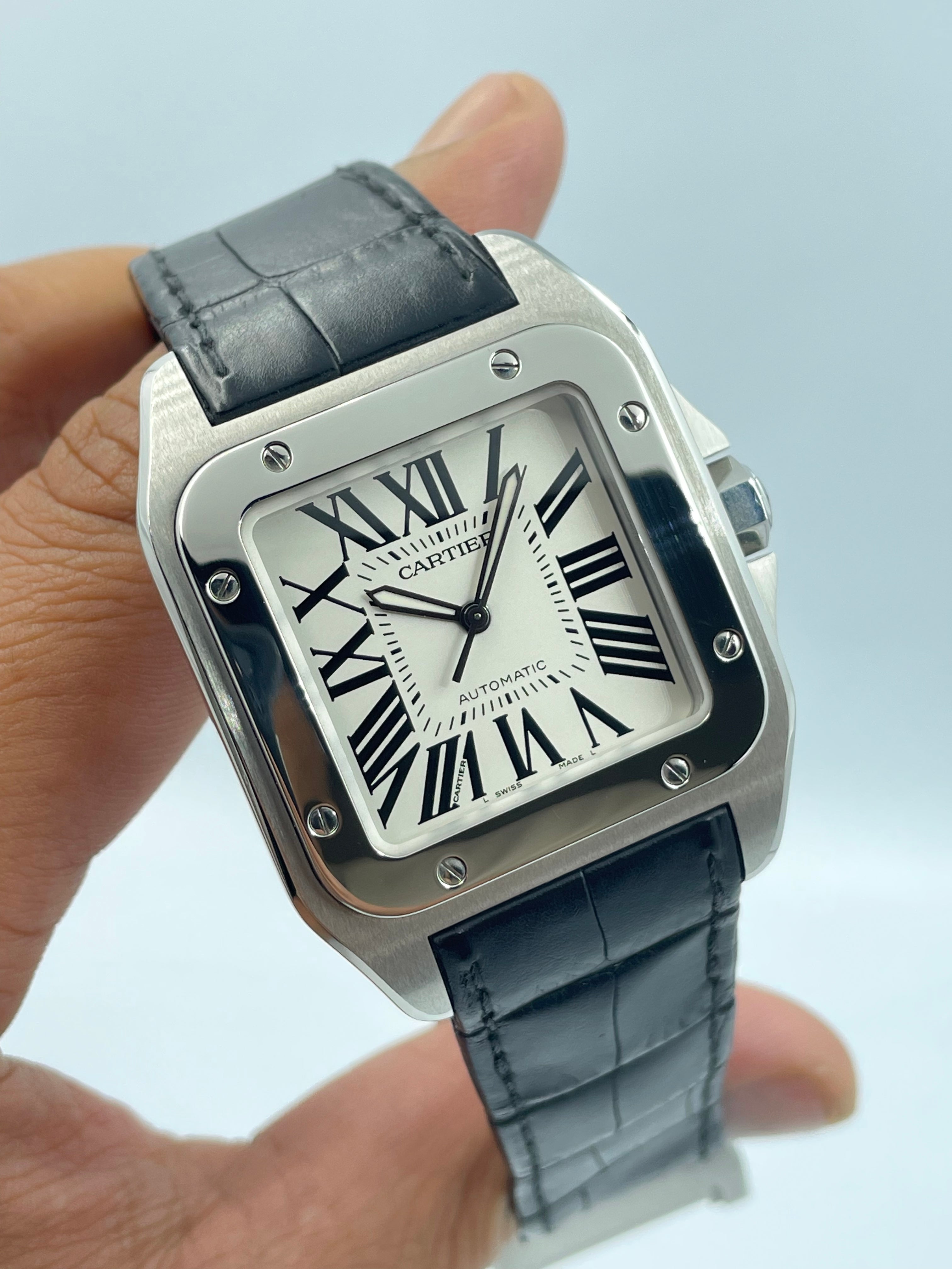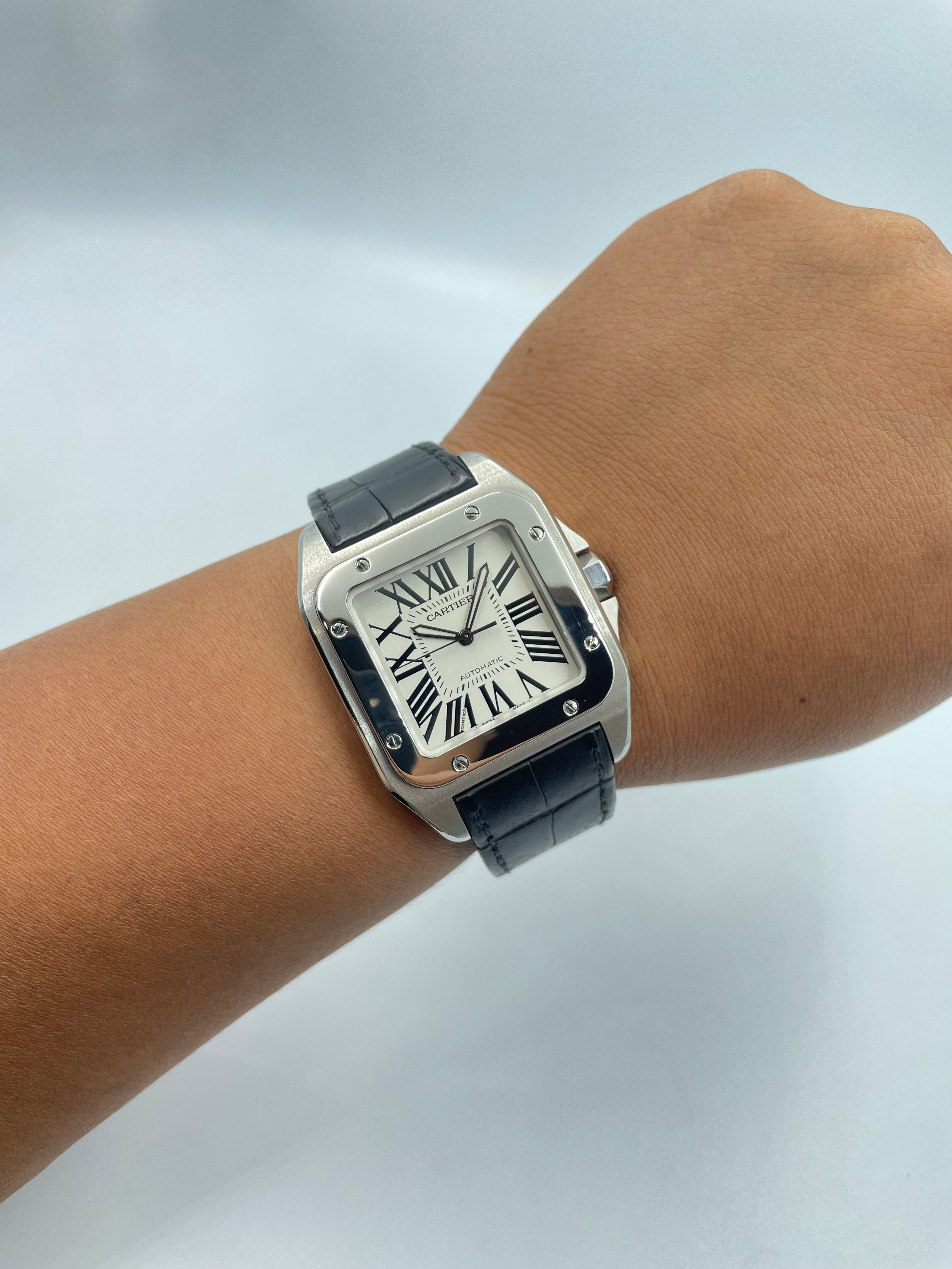 This reference of the Cartier Santos 100 was later discontinued in 2017. Cartier then released the new Santos de Cartier in 2018.