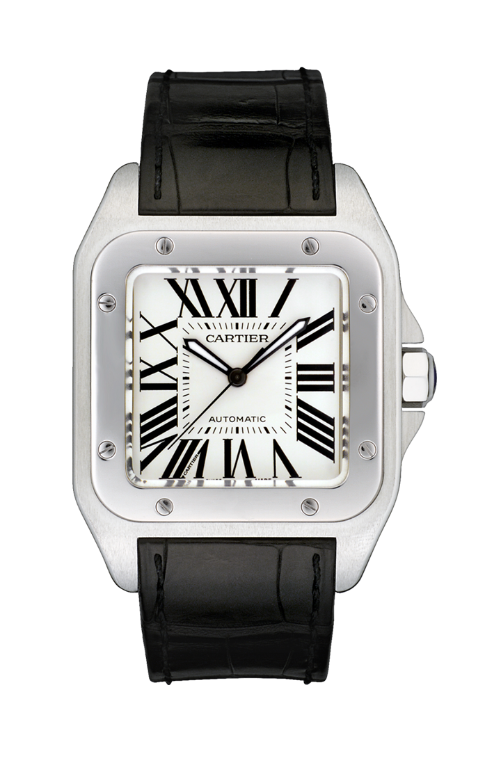The Cartier Santos 100 W20073X8, introduced in 2004 to commemorate the 100th anniversary of the iconic Santos collection, became an instant classic with its bold, modern reinterpretation of the original 1904 design. The large square case, measuring 38mm, is made of stainless steel and paired with Cartier’s signature Roman numeral dial, maintaining the brand's traditional elegance. The exposed screws on the bezel and integrated lugs give the watch a more rugged, industrial edge, making it a statement piece with a masculine and contemporary appeal.