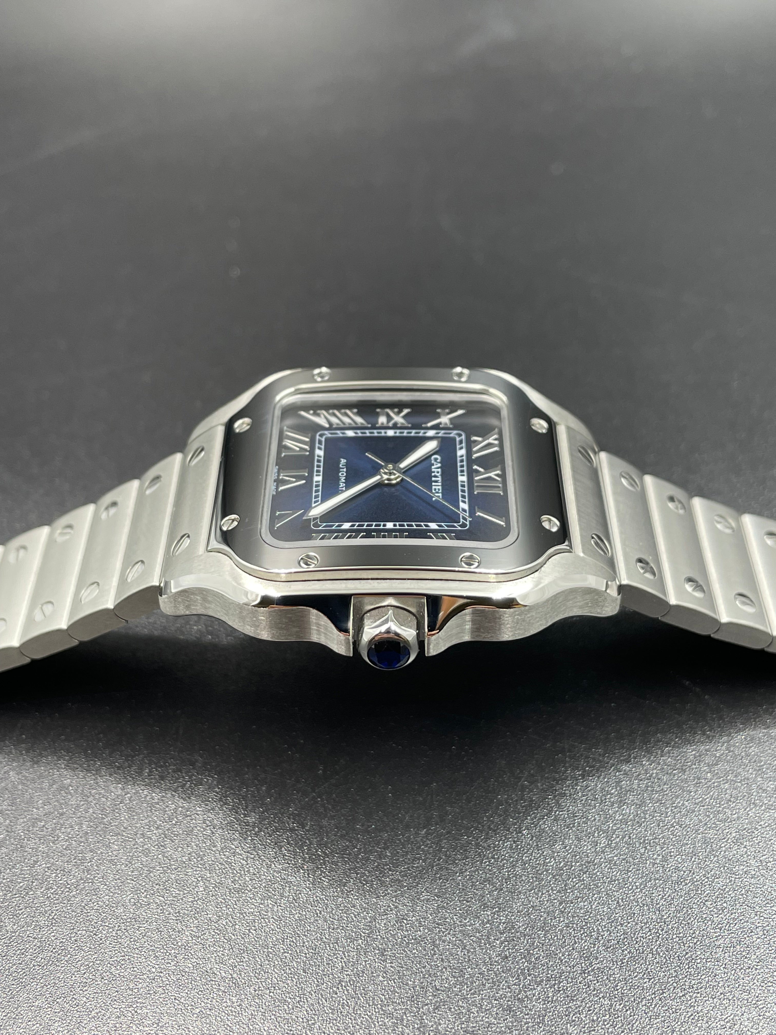 As with all Cartier timepieces, the Santos reflects the brand's commitment to craftsmanship and attention to detail. Its sapphire crystal provides excellent durability and scratch resistance, while its water resistance of up to 100 meters (330 feet) ensures peace of mind in daily wear.