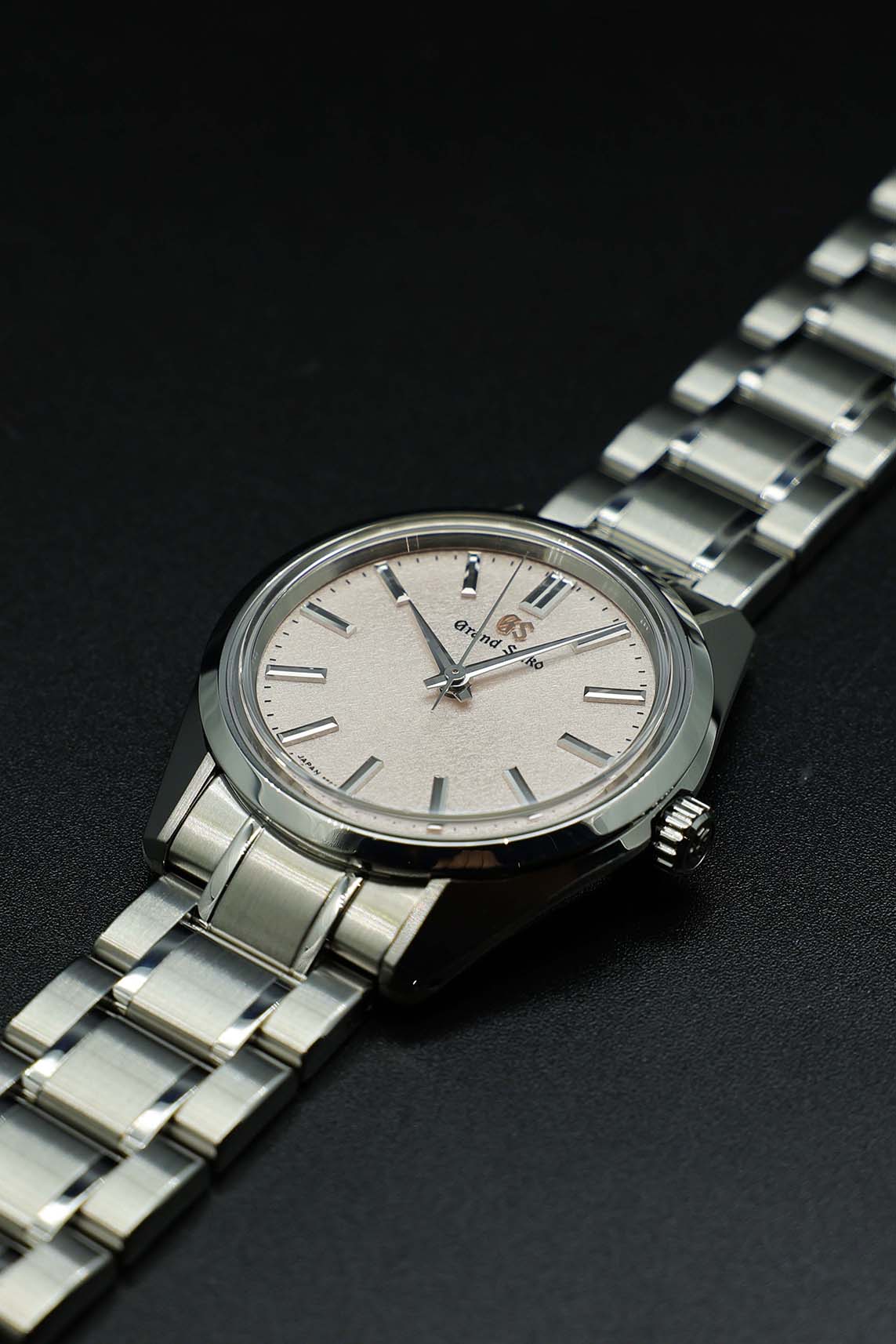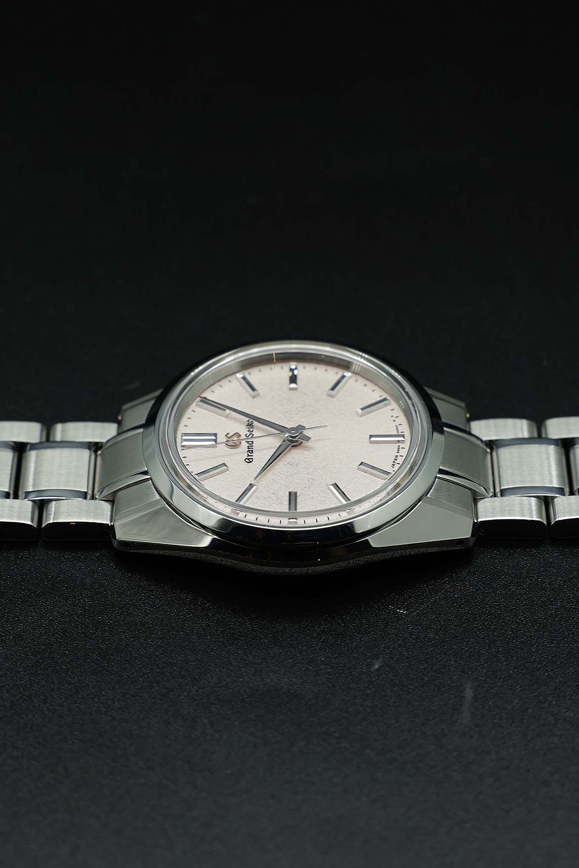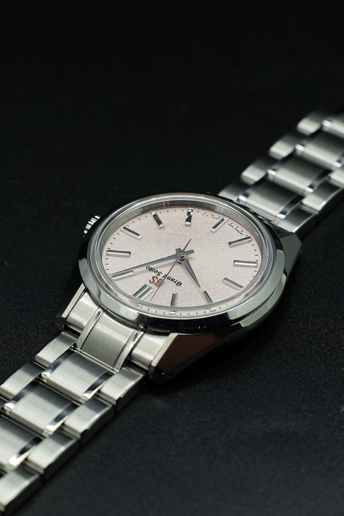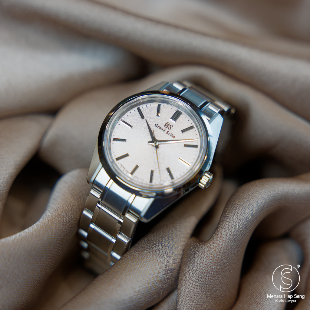 The Grand Seiko Heritage Sakura-Kakushi SBGW289G is a tribute to both the brand’s legendary 44GS design and the fleeting beauty of springtime cherry blossoms lightly dusted by snow. Released as part of the 55th anniversary celebration of the 44GS, this limited edition of 1,200 pieces embodies the Grand Seiko Style, defined by its nine distinct design elements. The 36.5mm stainless steel case is impeccably finished with Zaratsu polishing, creating a striking interplay of mirror-like reflections and fine hairline finishes, staying true to the refined aesthetics Grand Seiko is known for. The box-shaped sapphire crystal enhances the dial’s texture, giving it a sense of depth and a delicate sparkle.