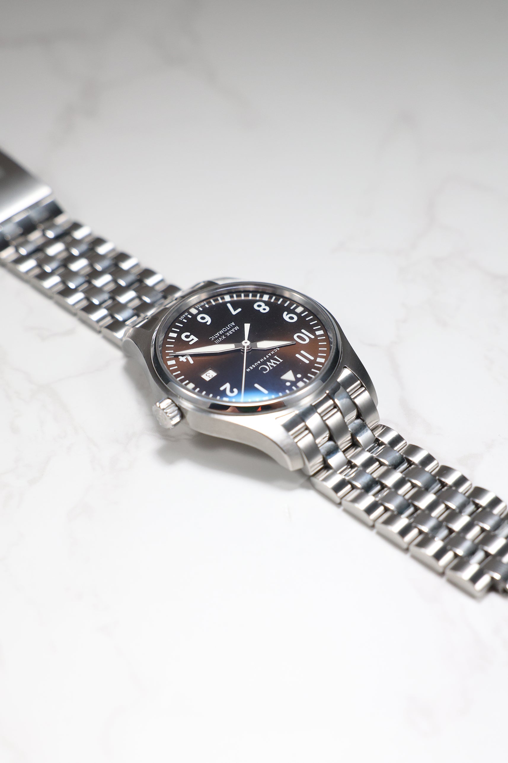The captivating brown sunburst dial evokes the warm, inviting tones of vintage flight instruments. It's paired with bold white Arabic numerals, a crisp triangle index at 12 o’clock, and luminous hands, all meticulously designed for optimal readability in any condition. A discreet date window at 3 o’clock adds practical everyday functionality without disrupting the dial’s pristine symmetry. The 40mm stainless steel case is perfectly streamlined and highly wearable, offering both durability and elegance in one exceptionally versatile package.