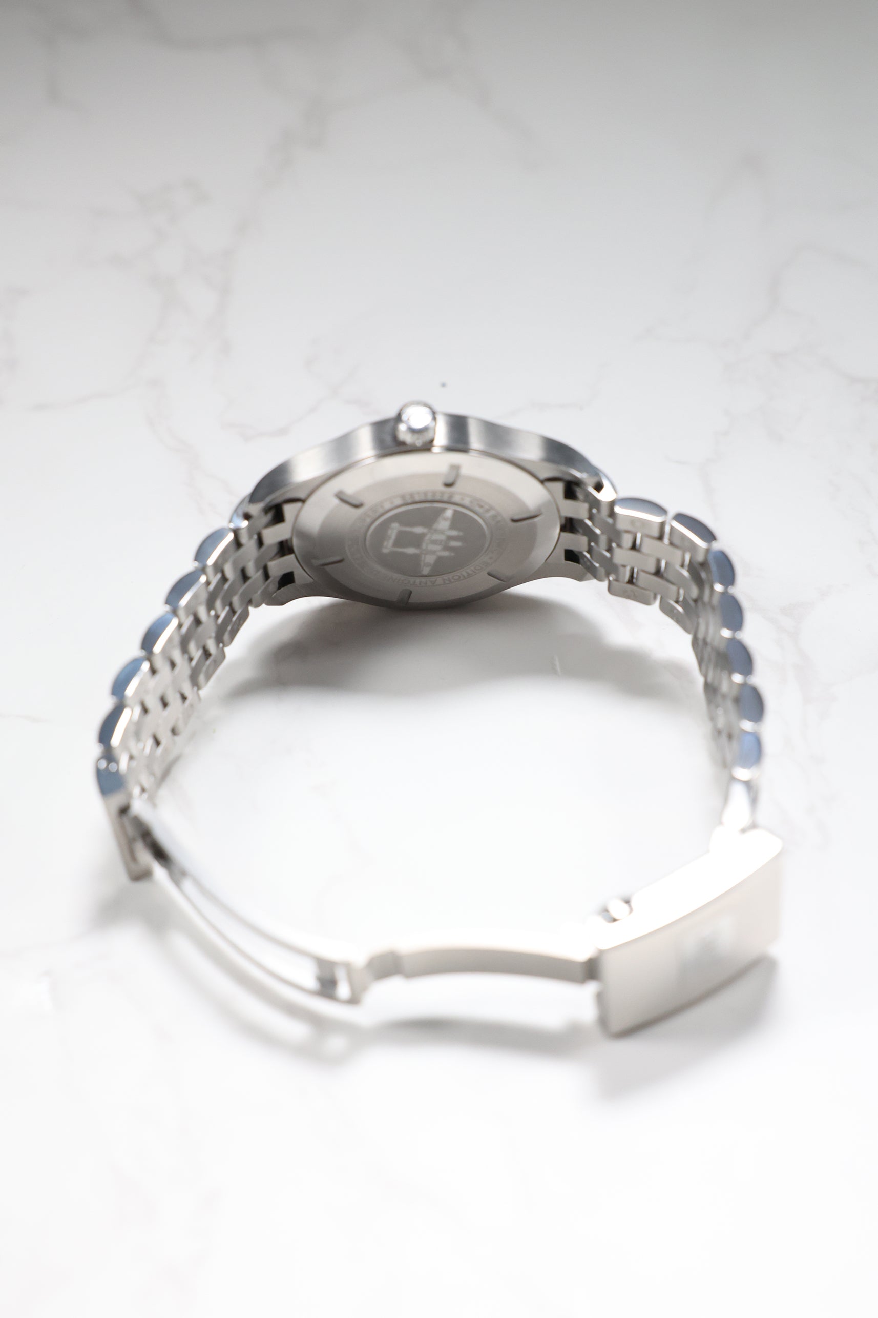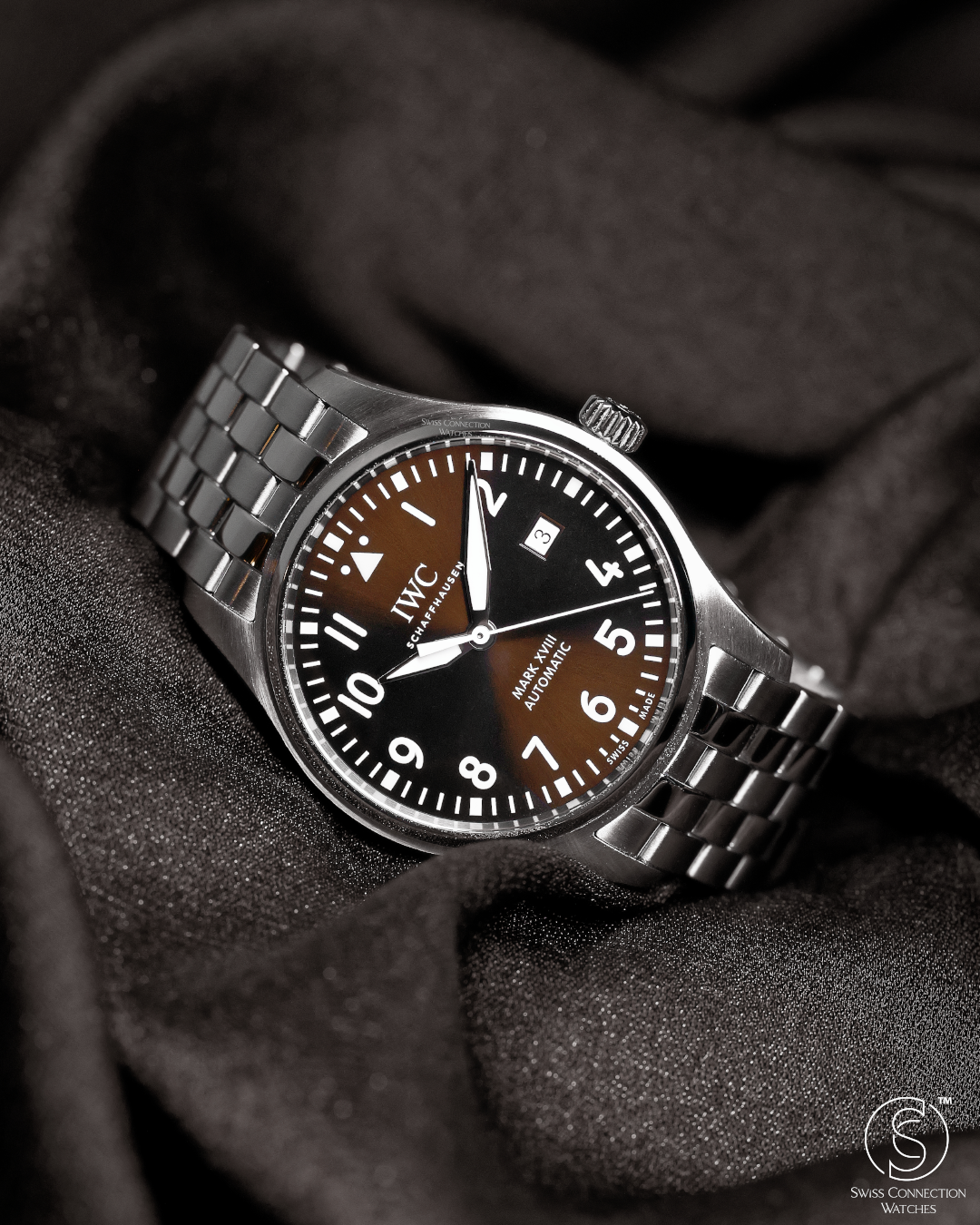 Adding to its remarkable versatility, this particular example includes both its original brown calfskin strap by Santoni, renowned for its rich patina and supple feel, and an additional stainless steel bracelet. This allows the wearer to seamlessly transition between classic elegance and sporty resilience. For enthusiasts who value captivating storytelling, meticulous engineering, and versatile design in equal measure, the Mark XVIII “Antoine De Saint Exupéry” remains a deeply wearable and poignant tribute to the spirit of flight, enduring literature, and timeless horological craftsmanship.