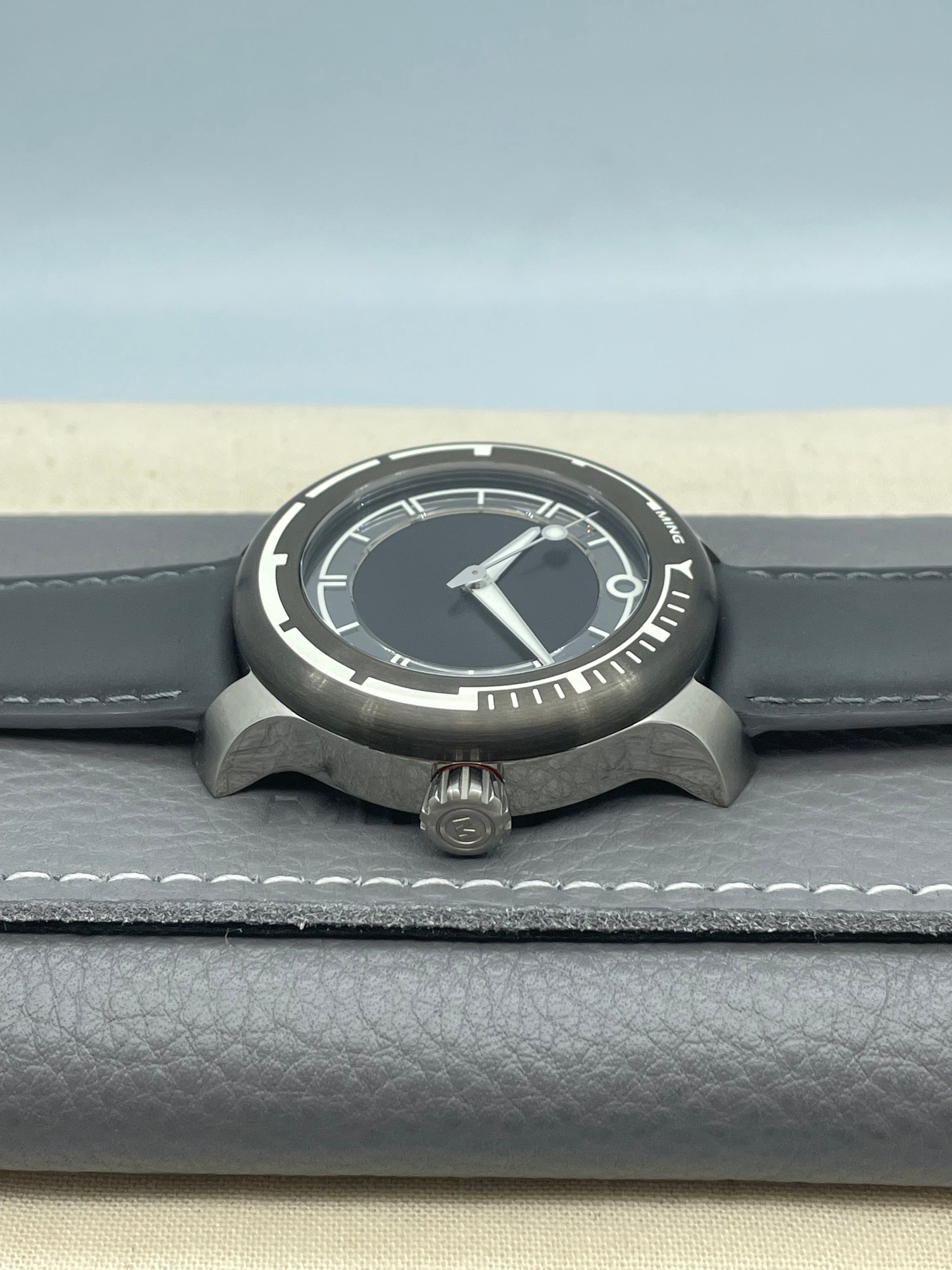 The Ming 18.01 H41 Diver is a bold and distinctive take on the modern dive watch, blending Ming’s signature design language with robust underwater performance. Crafted with a 40mm titanium case, it offers a lightweight yet durable build, making it ideal for daily wear as well as deep-sea adventures. The watch boasts a water resistance of 1,000 meters, an impressive feat that reinforces its credibility as a serious dive instrument. Unlike traditional divers, the H41 embraces a minimalist aesthetic, maintaining a clean yet highly legible dial while still delivering the functionality expected of a professional-grade timepiece.