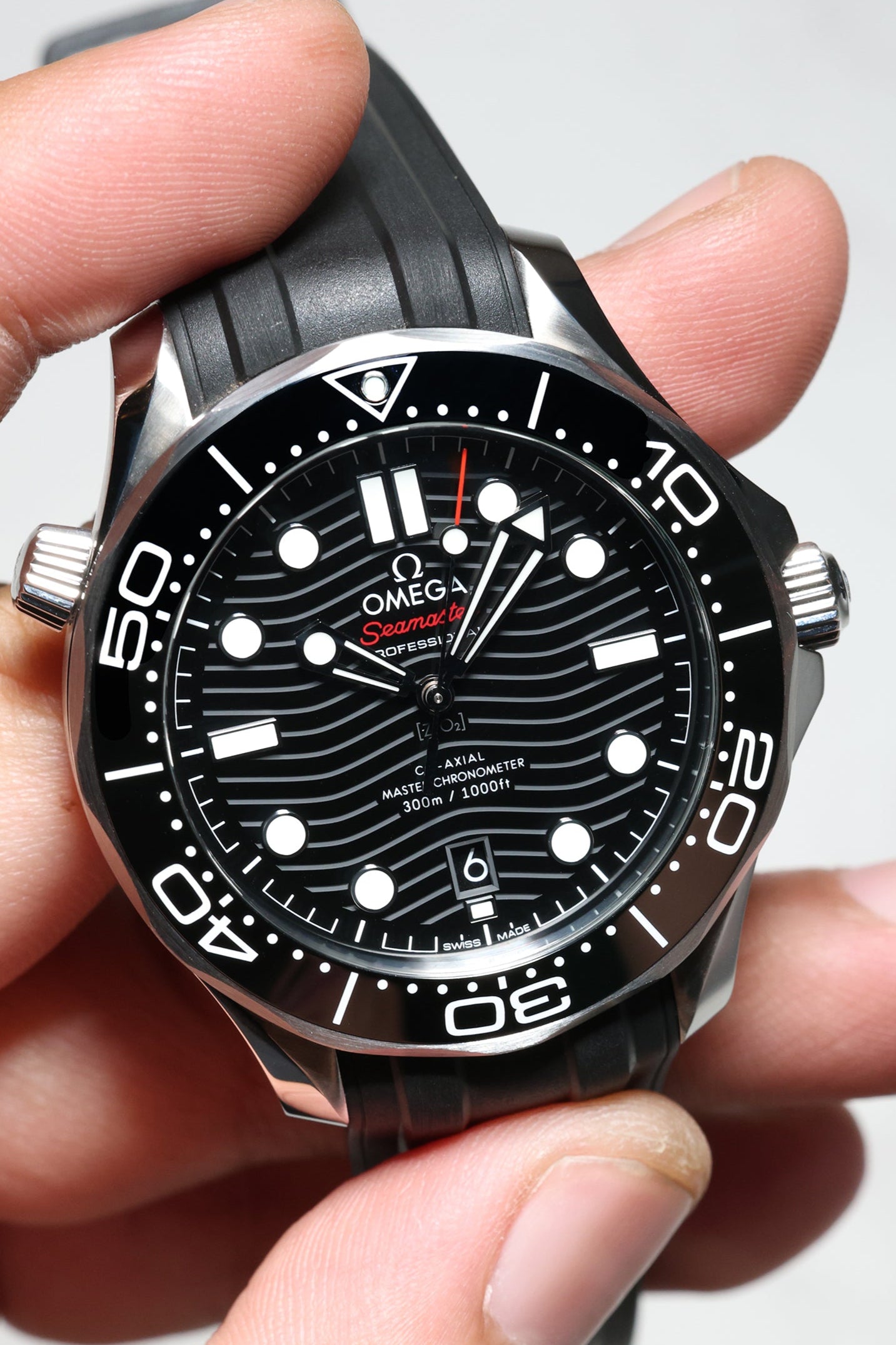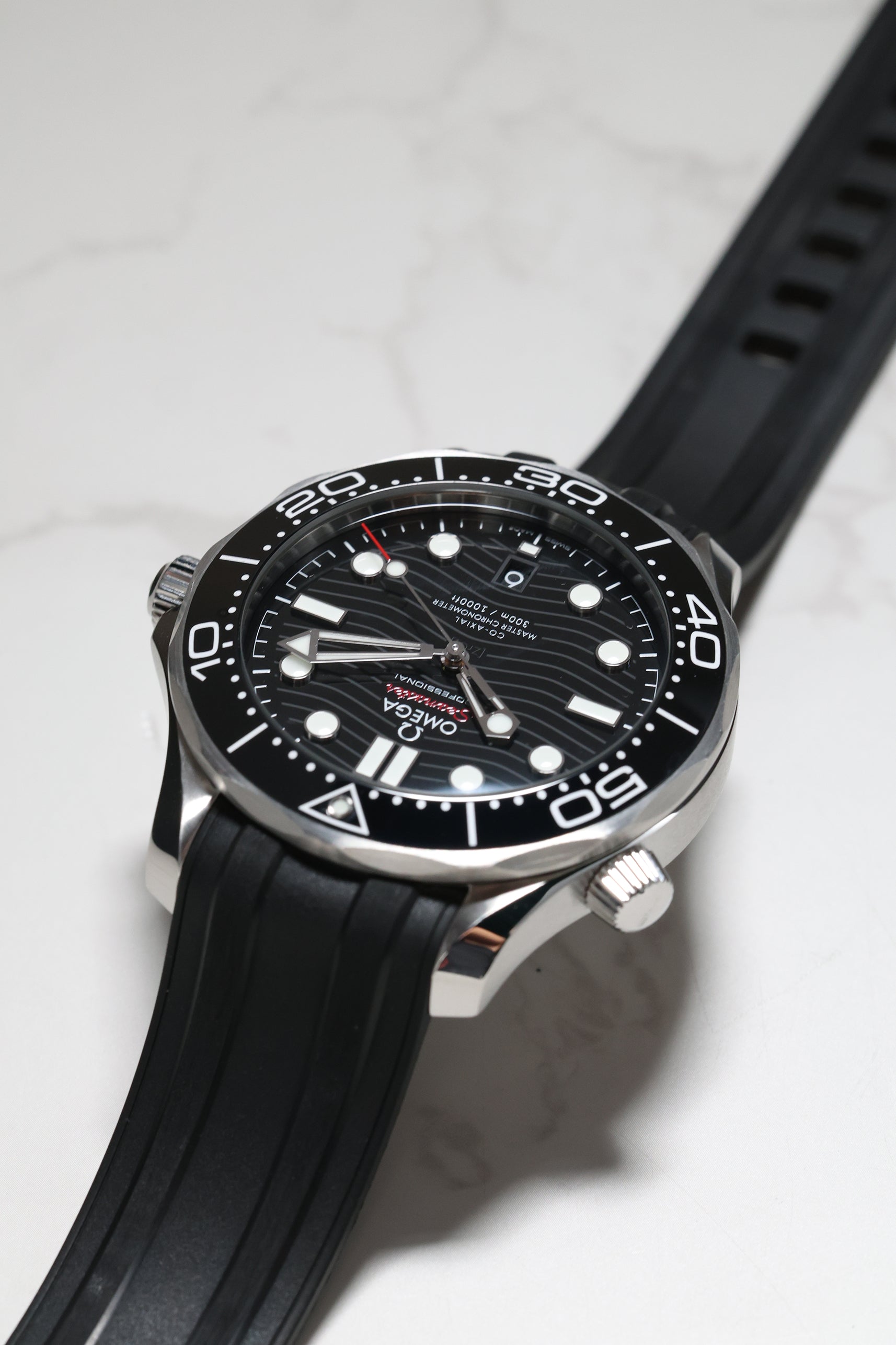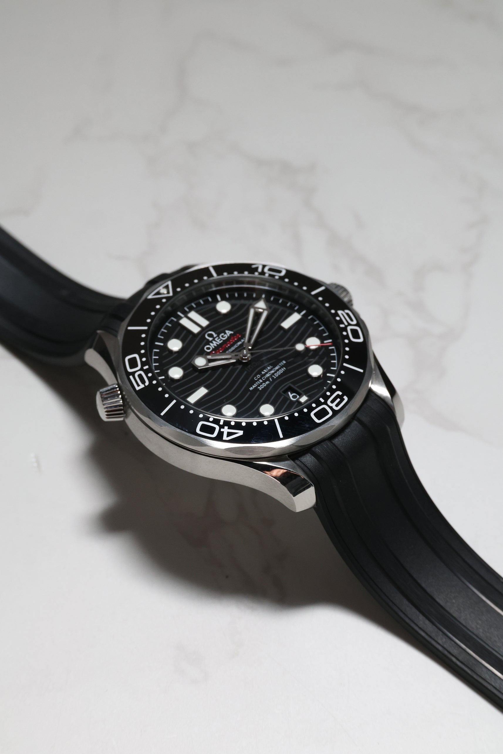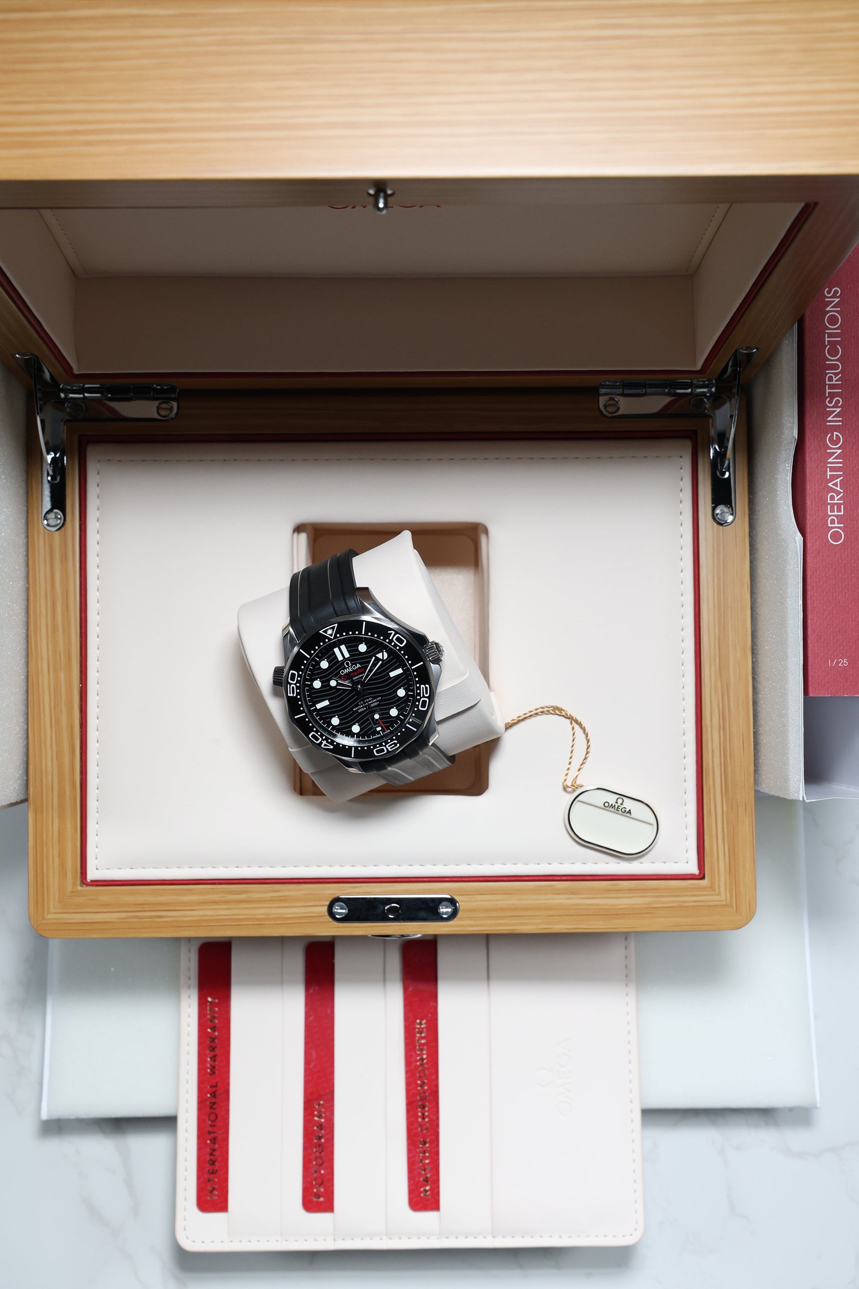 The black rubber strap adds a sporty edge, providing comfort, flexibility, and water resistance—perfect for an active lifestyle. Whether paired with a wetsuit or worn beneath a cuff, the Seamaster Diver 300M 210.32.42.20.01.001 delivers versatility with an unmistakably modern Omega flair. Its refined design, robust build, and iconic status make it a compelling choice for both seasoned collectors and first-time luxury watch buyers.