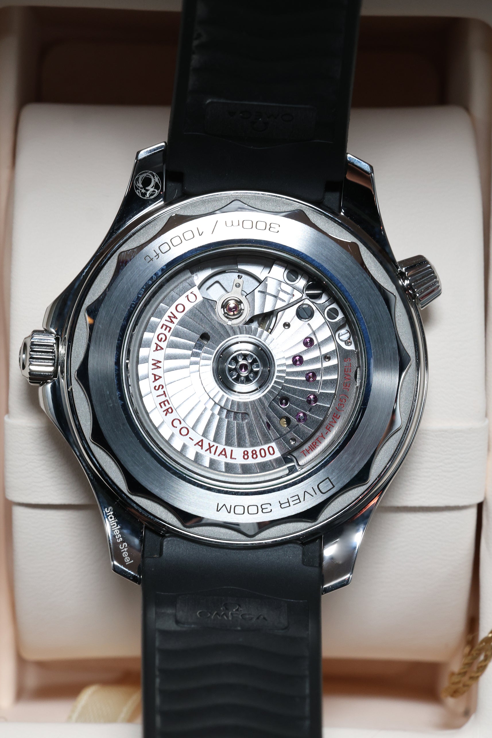 Powering this model is the Omega Master Chronometer Calibre 8800, visible through the sapphire caseback. It’s resistant to magnetic fields up to 15,000 gauss and certified by METAS for precision and performance, offering a 55-hour power reserve. The movement reflects Omega’s continued push toward horological excellence, making the Diver 300M not just a tool watch, but a technologically impressive timepiece suitable for everyday wear.