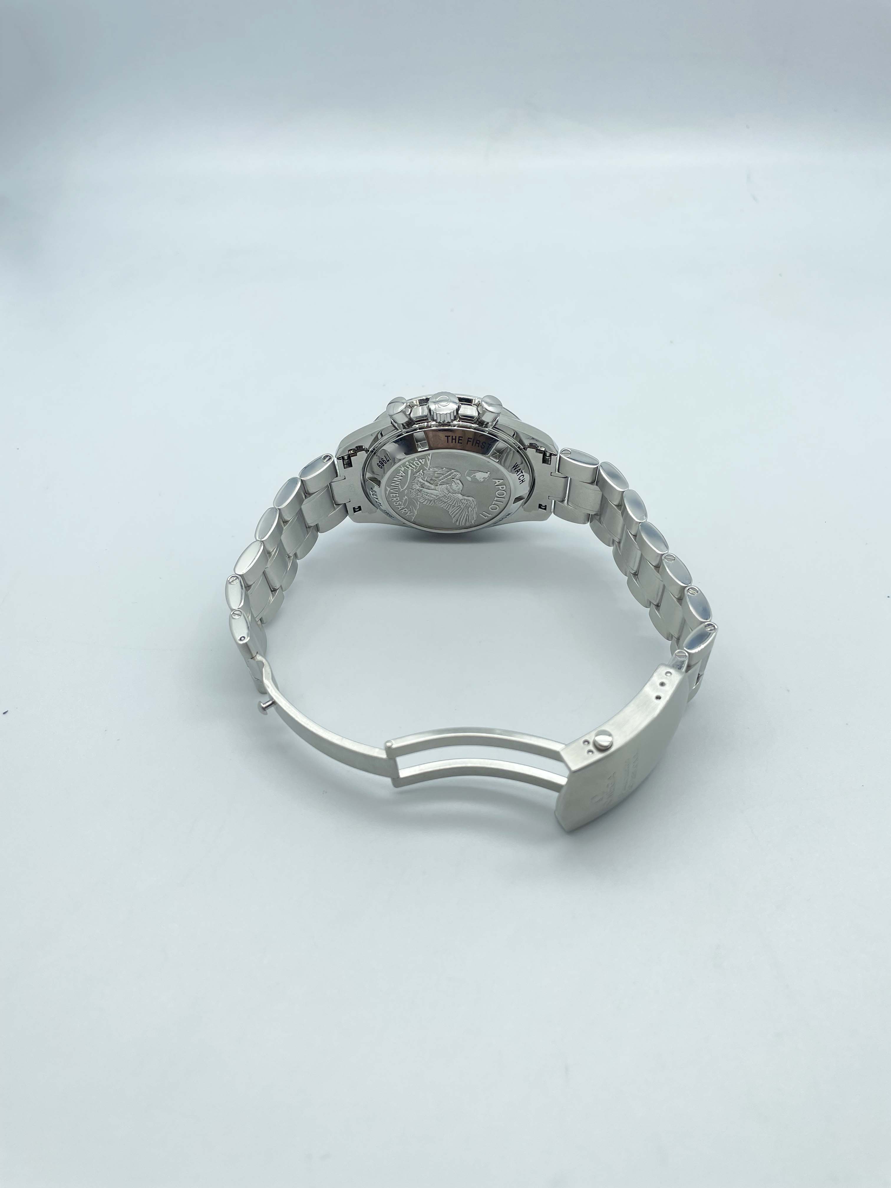 The rest of the dial remains unmistakably Speedmaster, with its matte black finish, white hour markers, and Super-LumiNova coating for optimal legibility in low light. Unlike some limited editions that modify the Omega logo, this model retains the white Omega logo, ensuring a clean and classic look. Paired with the stainless steel bracelet, the watch embodies the perfect balance of heritage, functionality, and celebratory design, making it a highly desirable piece for collectors and enthusiasts alike.