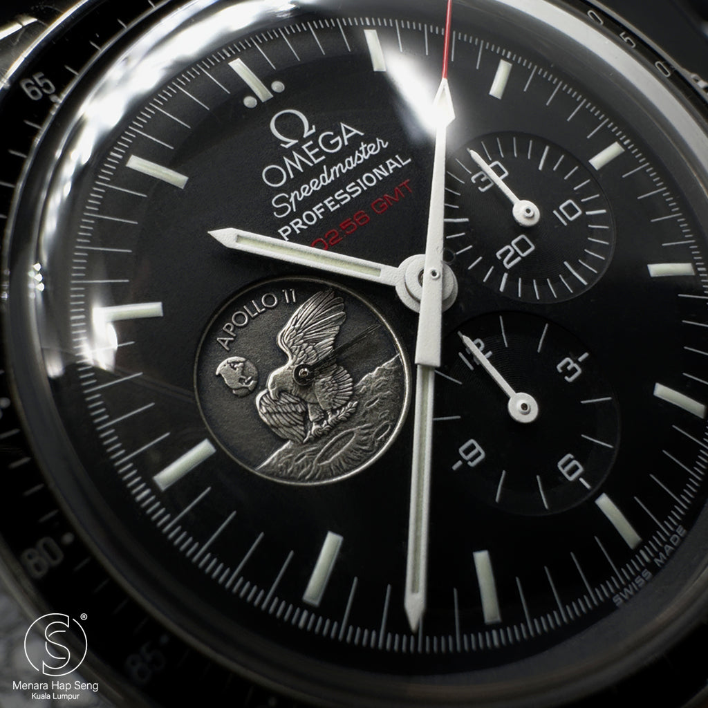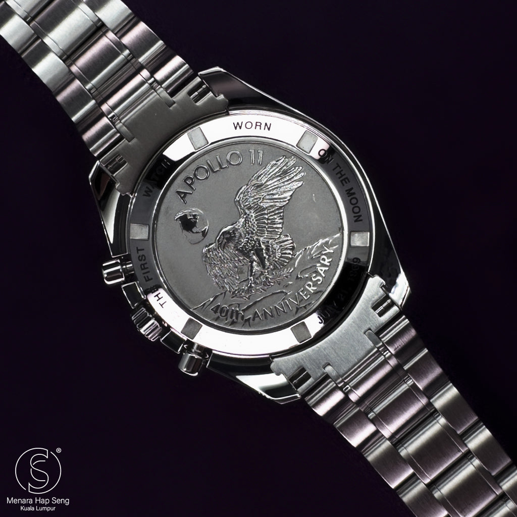 Completing the package, the 311.30.42.30.01.002 is presented in a special commemorative box, which includes an Apollo 11 mission badge medallion. The case back is engraved with "Apollo 11 40th Anniversary, Limited Edition", along with its unique serial number out of 7,969 pieces, symbolizing the year of the moon landing. With its rich history, unique dial elements, and iconic Speedmaster aesthetics, this limited edition remains a timeless tribute to one of humankind’s greatest achievements.