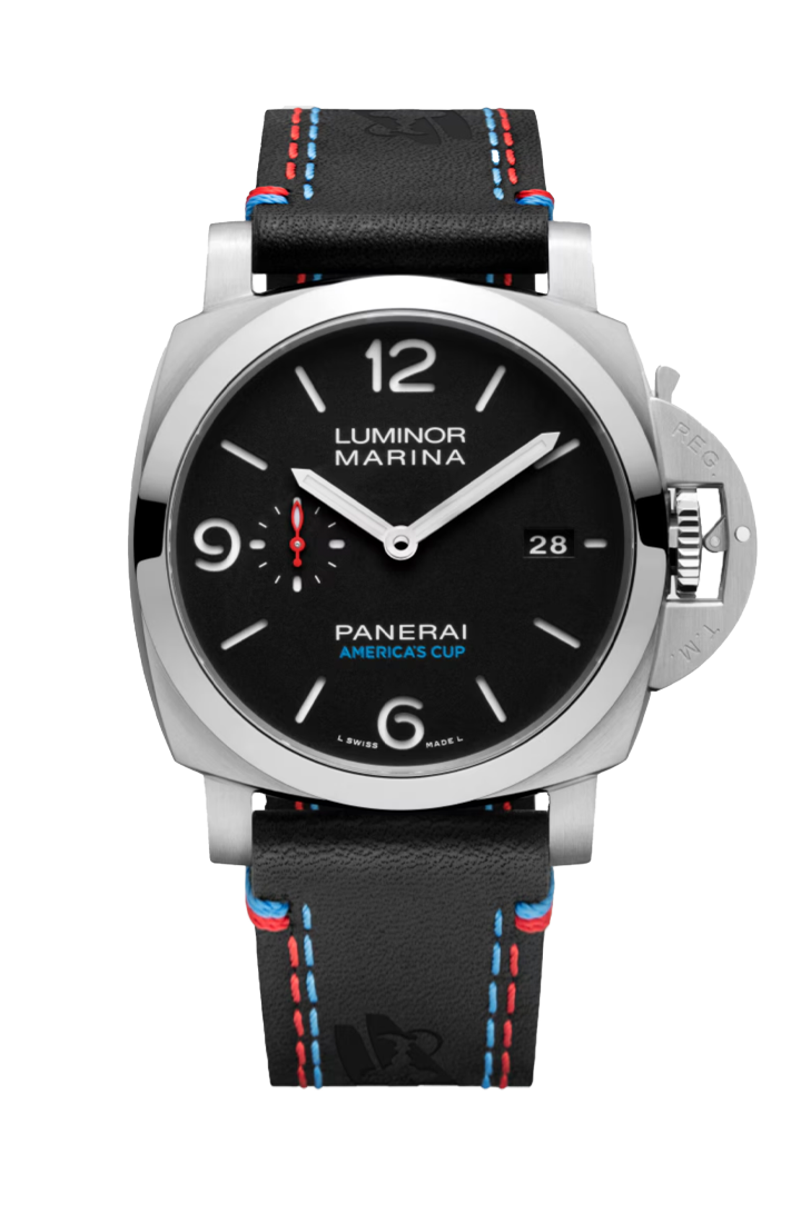 A special calf strap further reinforces the connection to the America’s Cup, crafted with contrasting blue and red stitching that mirrors the nautical palette of the race. The strap offers a refined yet sporty touch, making the watch versatile enough for both casual wear and more adventurous occasions. The watch is delivered in a commemorative black box, different from Panerai’s usual pear-wood packaging, further highlighting the uniqueness of this celebratory model.