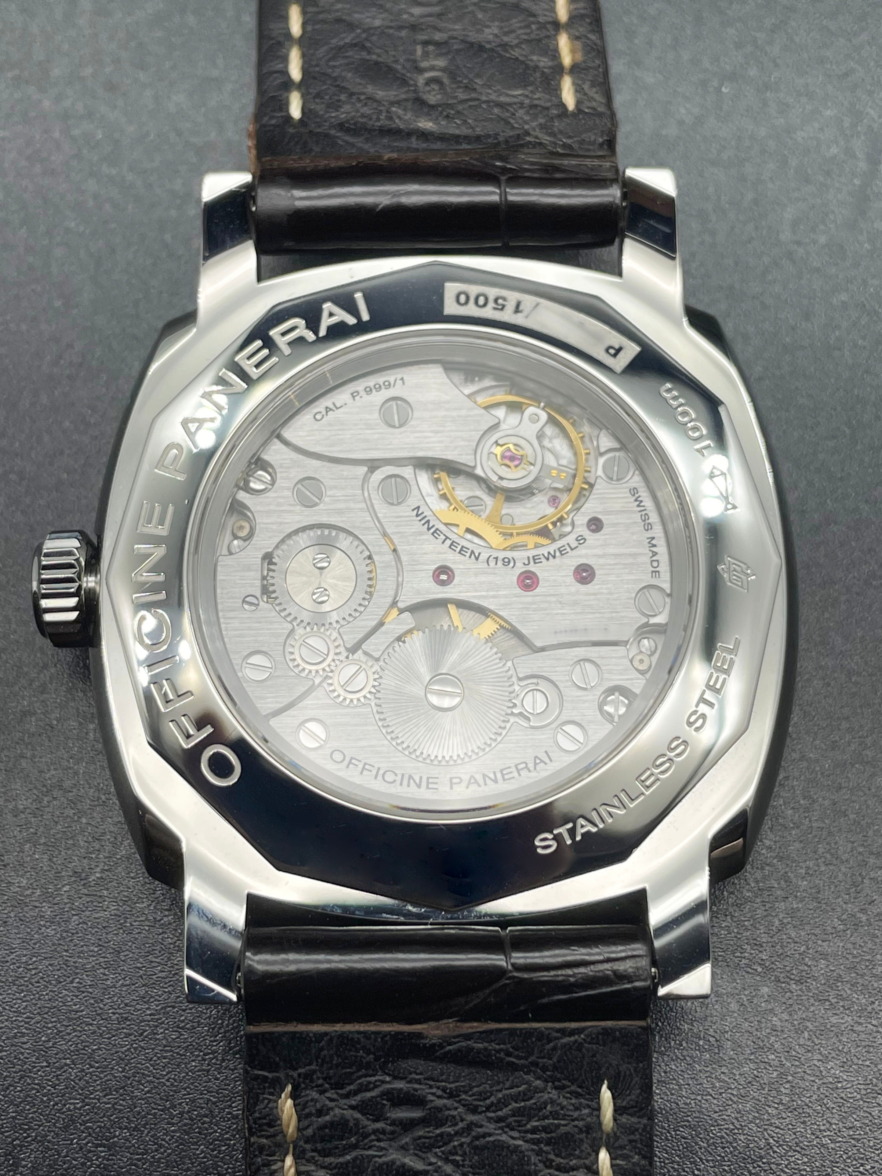 Inside the PAM00512 is the in-house Panerai P.999/1 manual-winding movement, a compact and reliable caliber with a 60-hour power reserve. Unlike its automatic counterparts, this hand-wound movement pays homage to Panerai’s roots in traditional watchmaking, requiring a personal connection with the wearer through manual winding. The sapphire caseback provides a view of the beautifully finished movement, a treat for watch enthusiasts who appreciate fine craftsmanship.