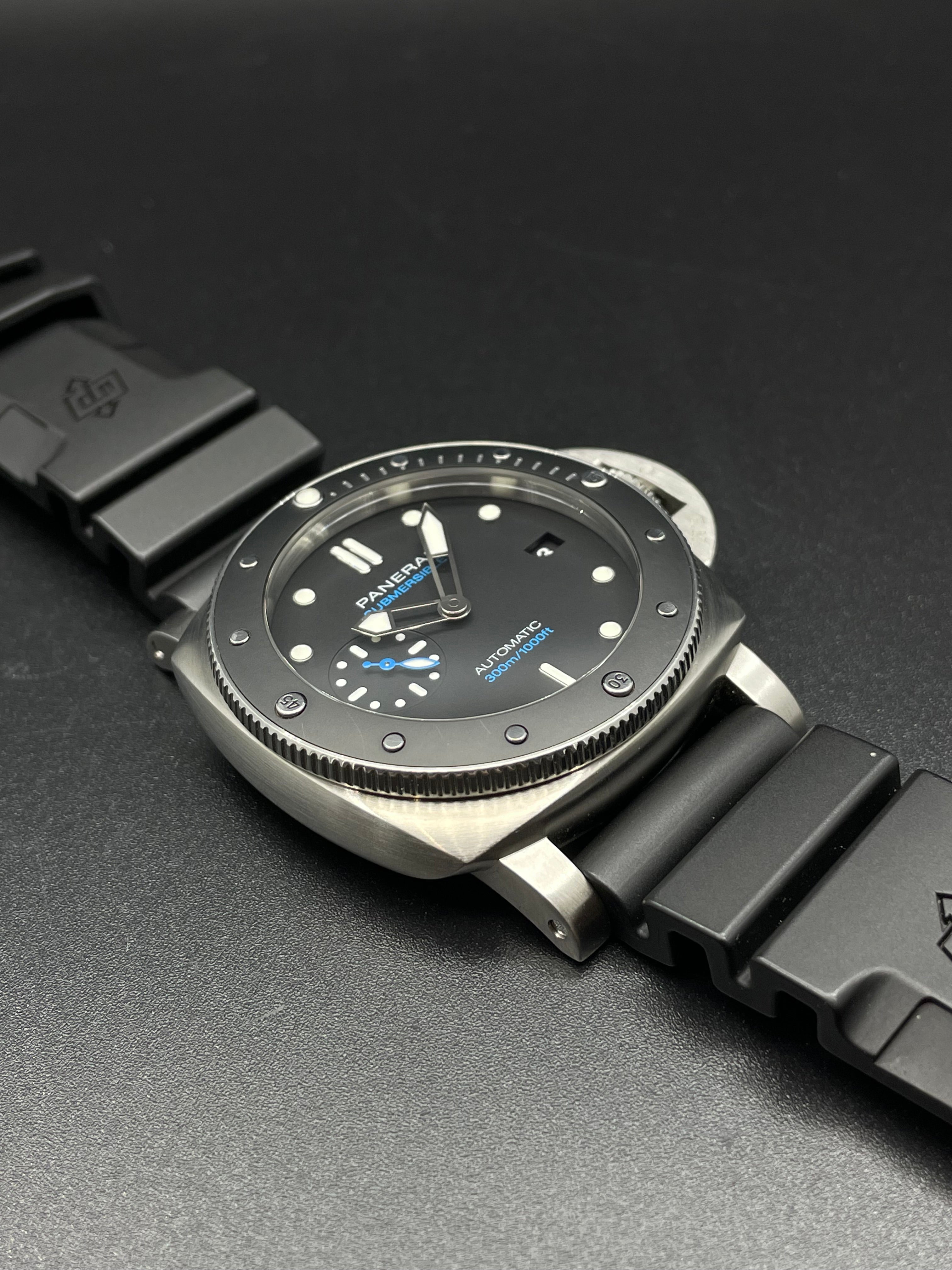 Powered by the automatic P.900 movement, the PAM00683 offers a 72-hour power reserve and dependable accuracy. This movement is notable for its slim profile, enhancing the overall comfort of the watch without sacrificing performance. With a screw-down crown and case back, the watch boasts 300 meters of water resistance, reinforcing its capability as a serious dive watch while staying true to Panerai’s rugged aesthetic.