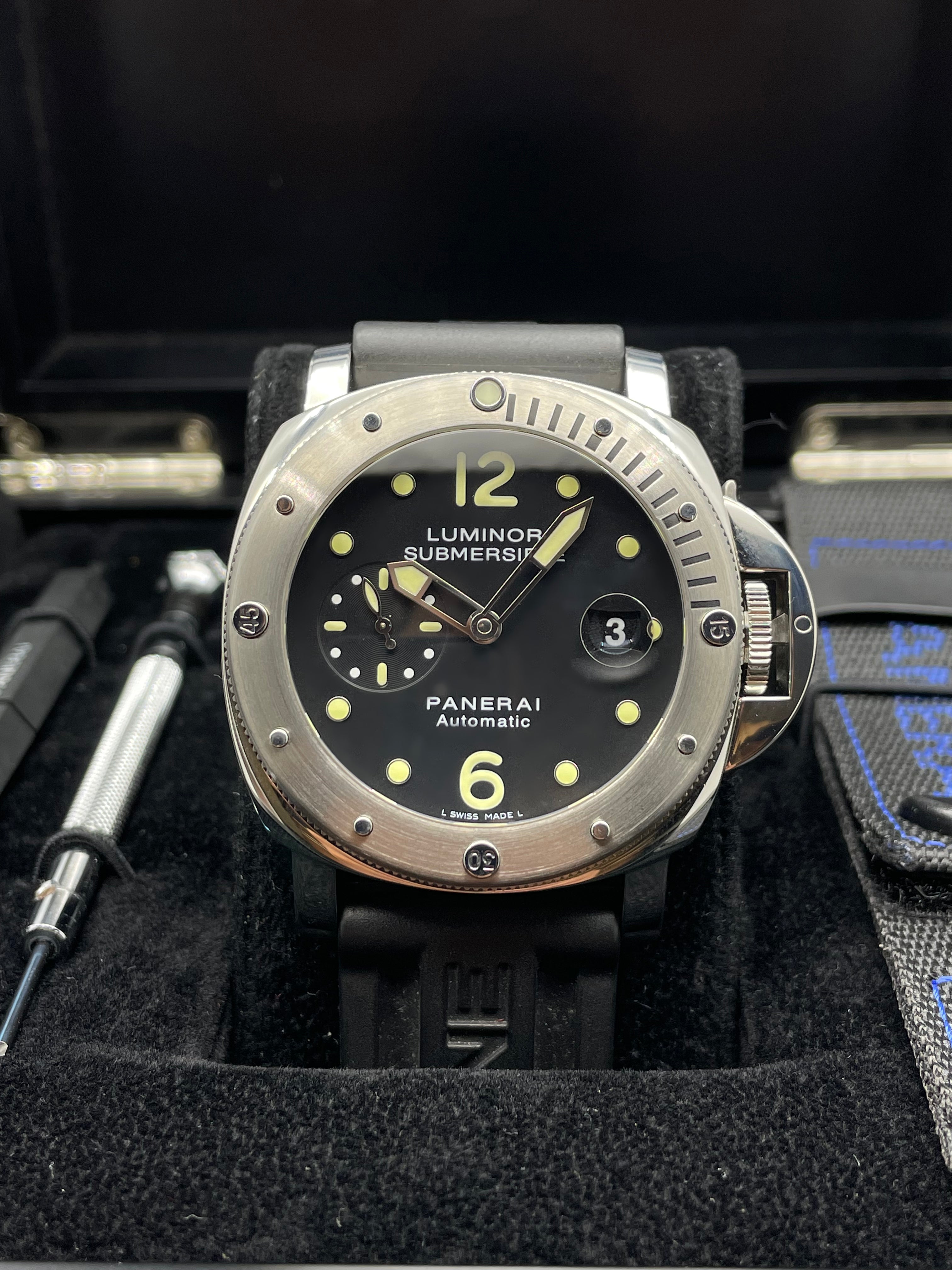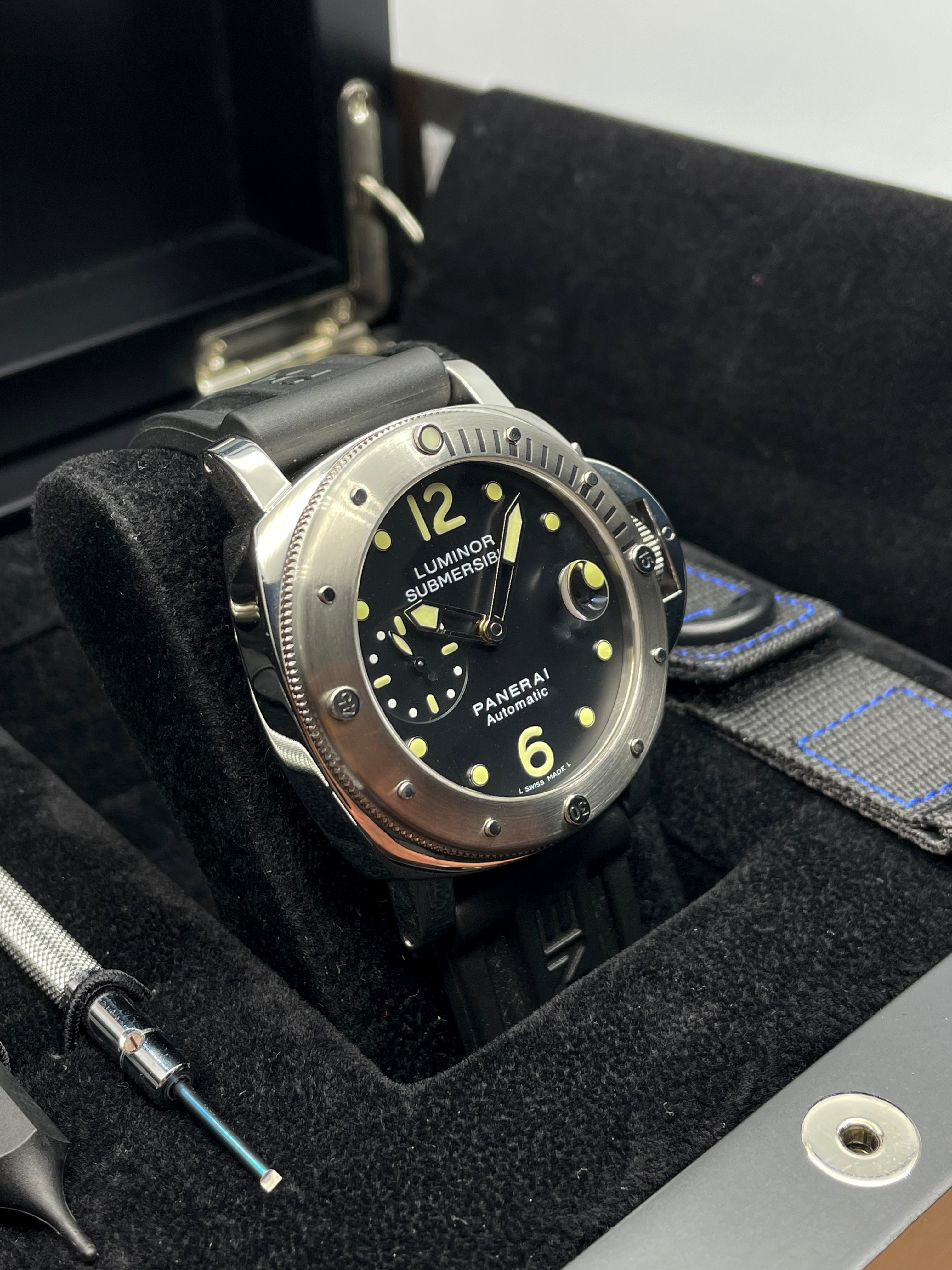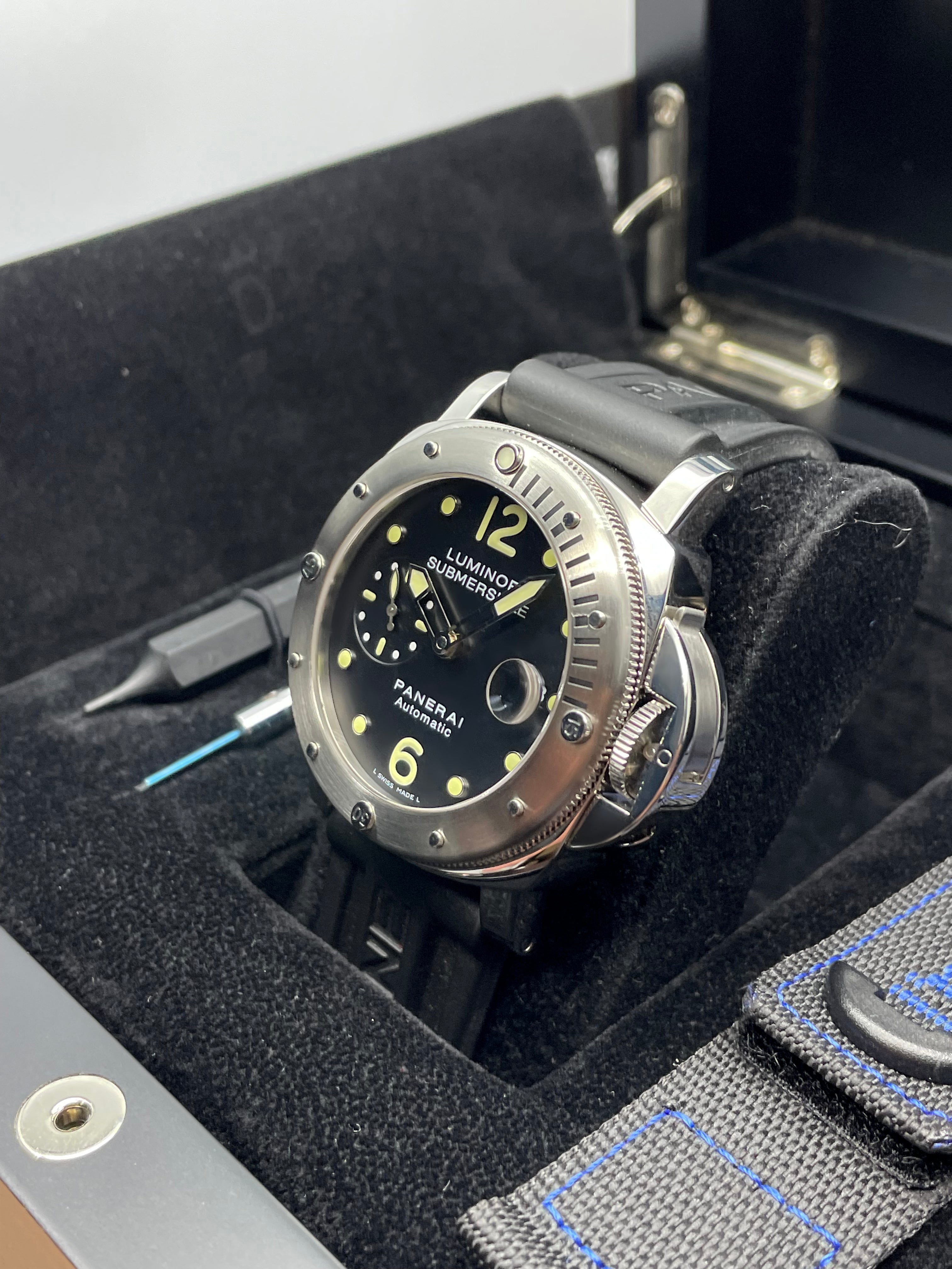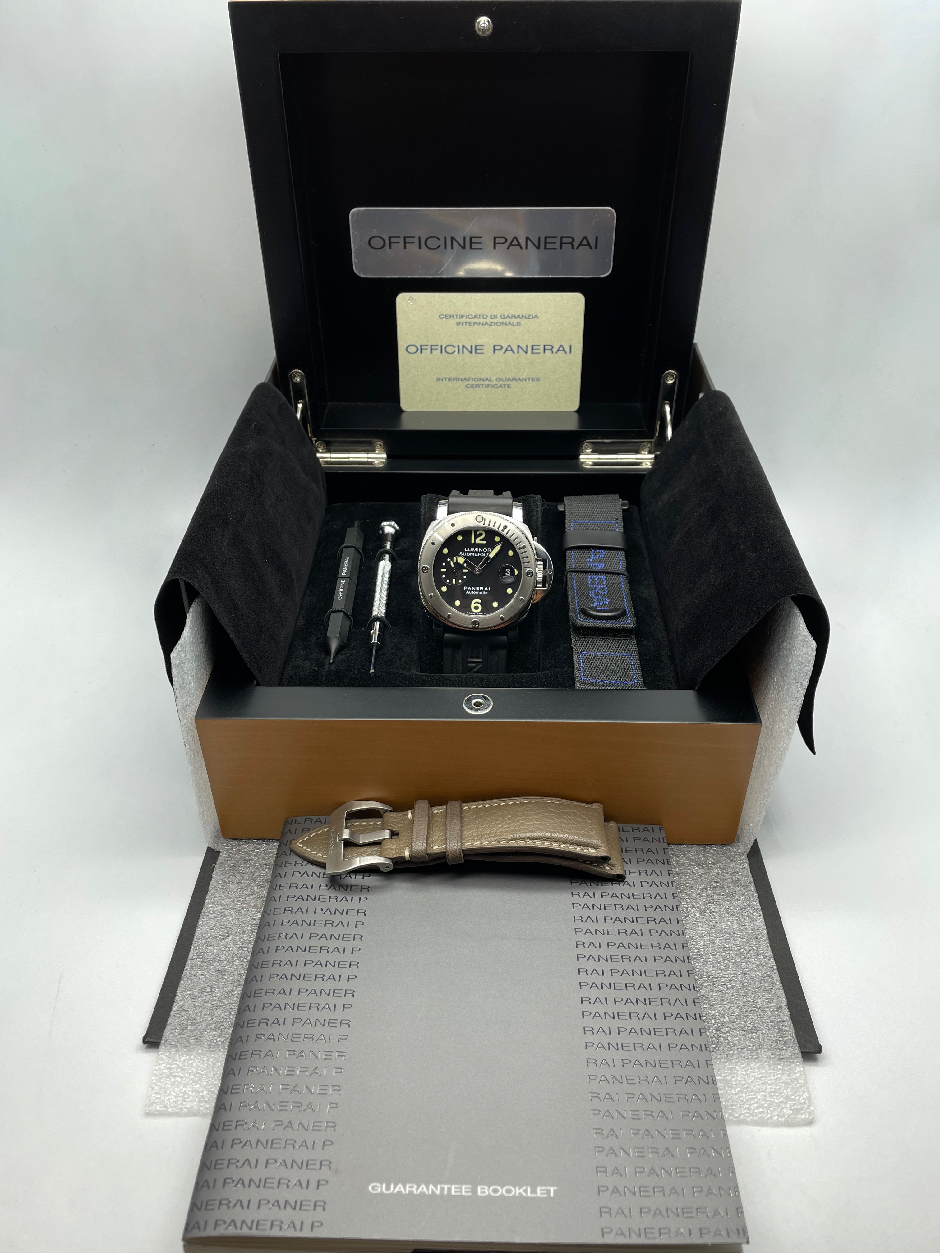 Paired with a black rubber strap for comfort and practicality during diving, the PAM00024 also comes with a second diving strap, providing versatility for different occasions. Overall, the Panerai Luminor Submersible PAM00024 combines iconic design with robust functionality, making it a perfect choice for diving enthusiasts and collectors who appreciate fine watchmaking.