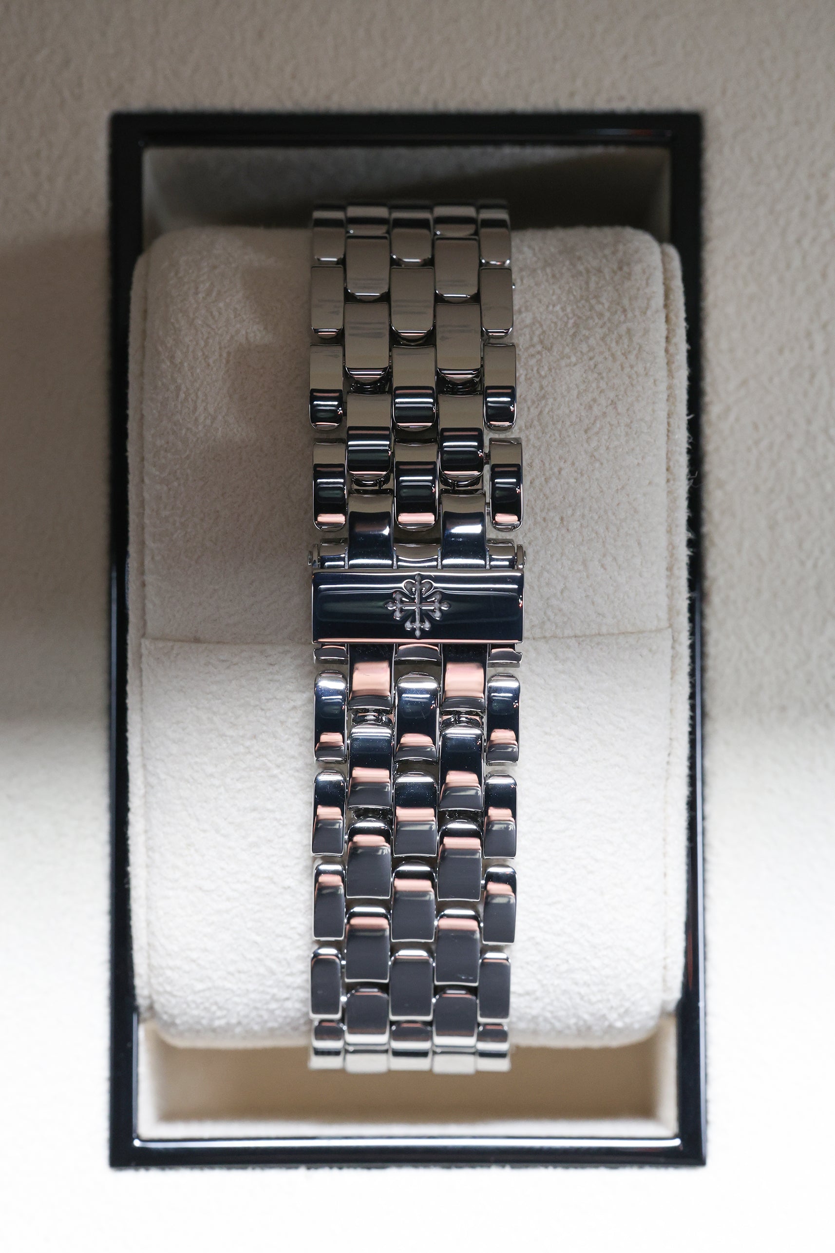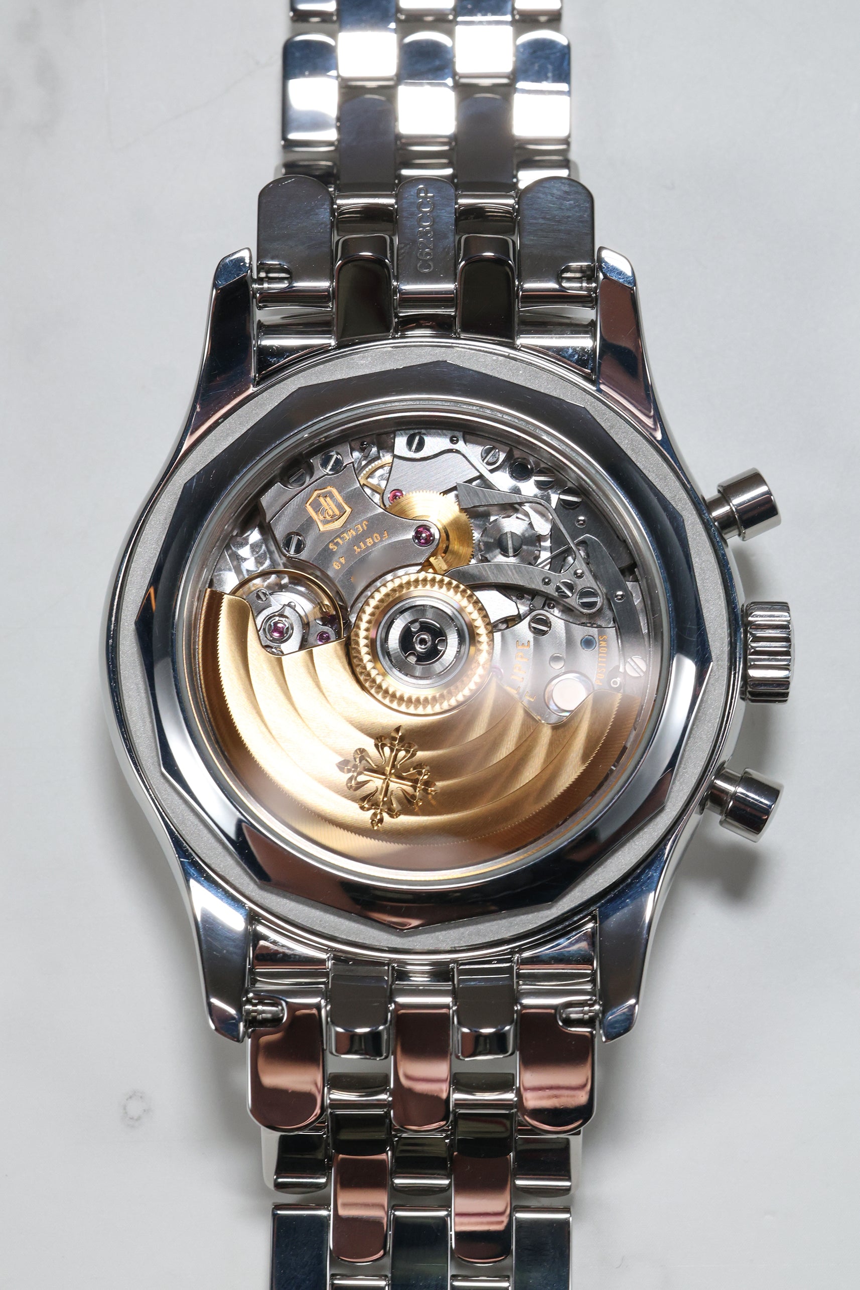 Powering the 5960/1A-010 is the sophisticated self-winding Calibre CH 28-520 IRM QA 24H. This in-house movement is a marvel of engineering, combining a column-wheel chronograph with a vertical clutch, an annual calendar, a power reserve indicator, and a day-night indication—all meticulously packed into an elegant 40.5mm stainless steel case. Visible through the sapphire caseback, the movement is exquisitely finished in line with the demanding Patek Philippe Seal, showcasing both centuries-old watchmaking tradition and contemporary innovation. The integrated steel bracelet, with its alternating brushed and polished links, further reinforces the model’s rare position as a true high complication presented in a casually elegant package.