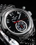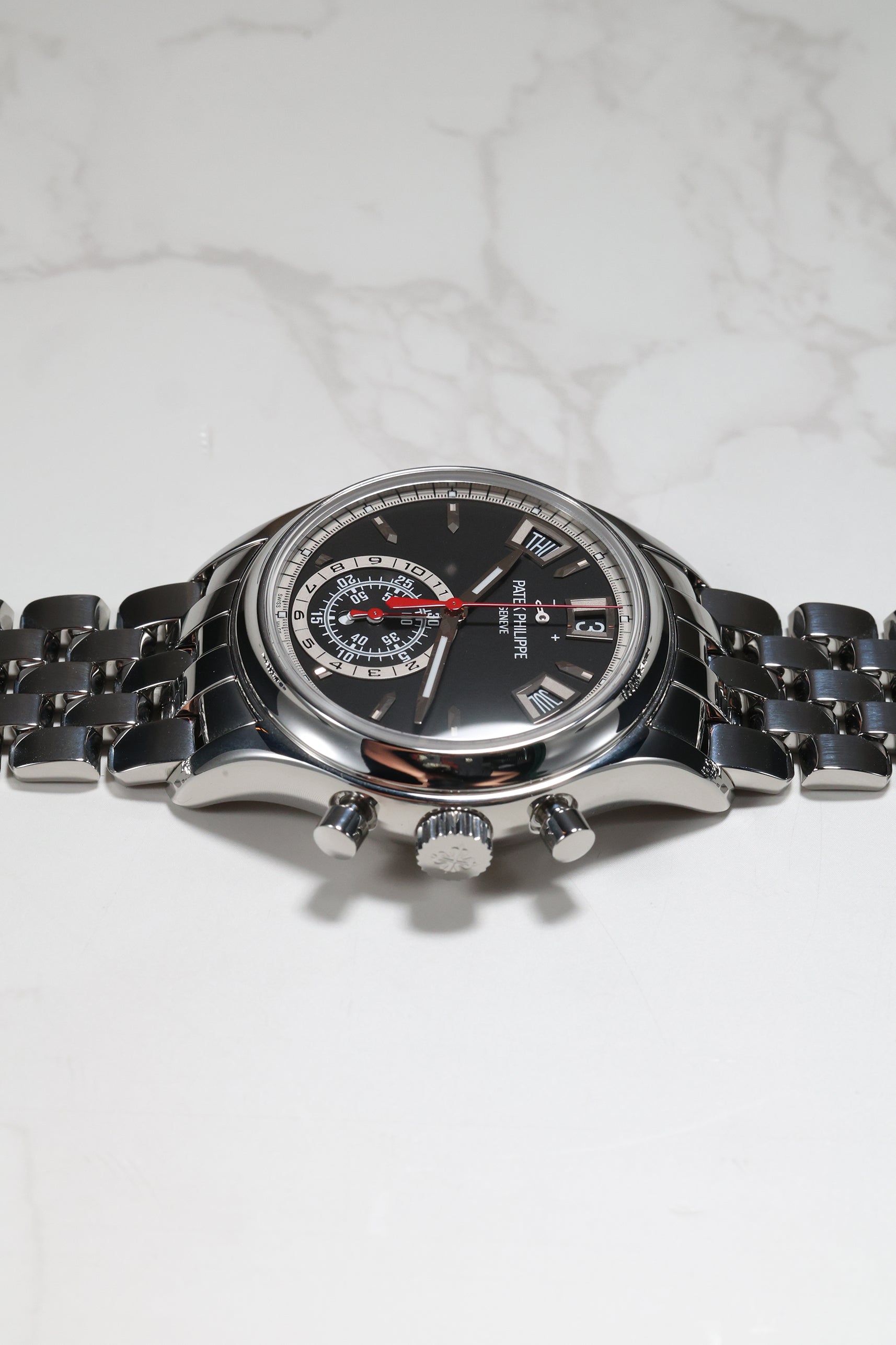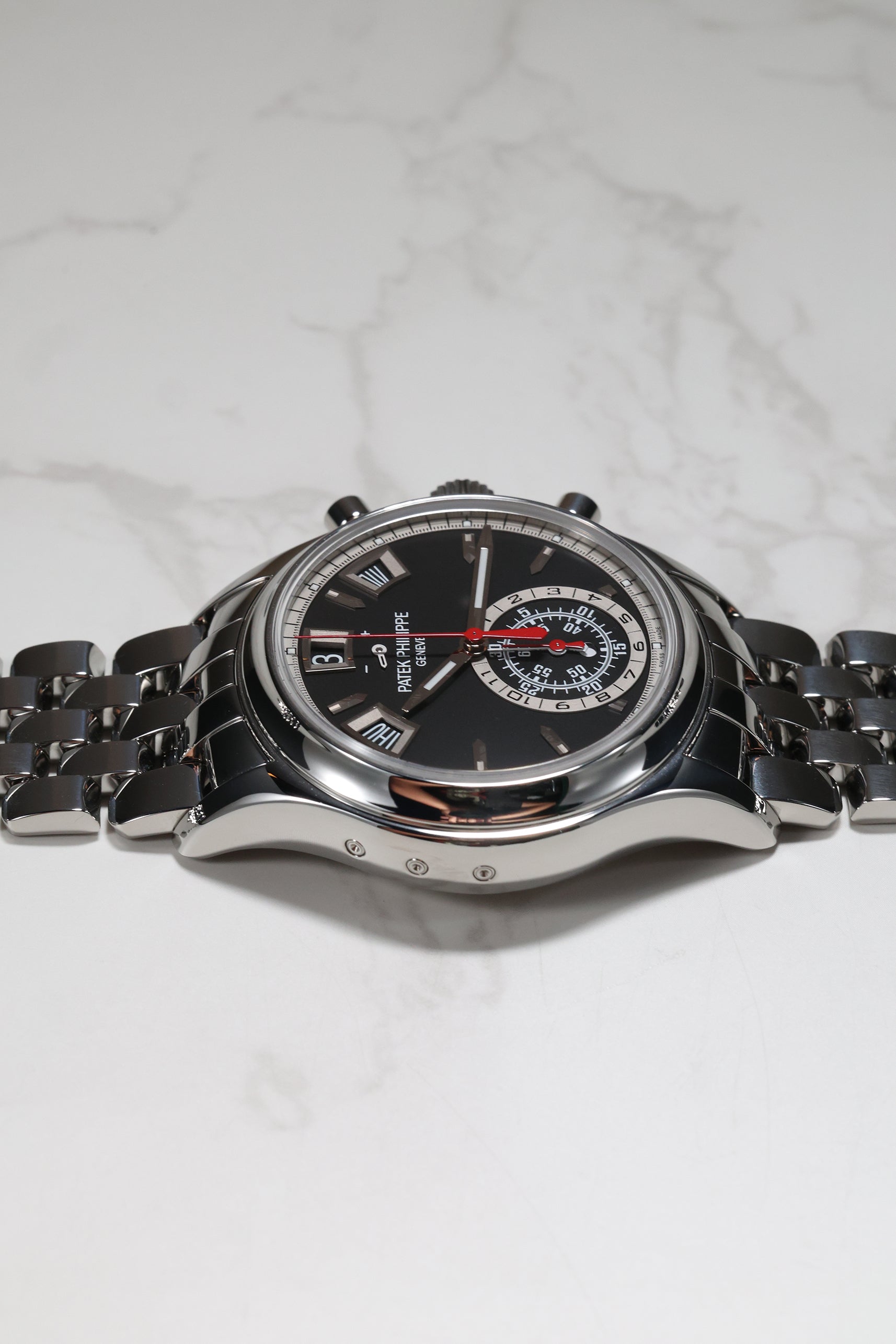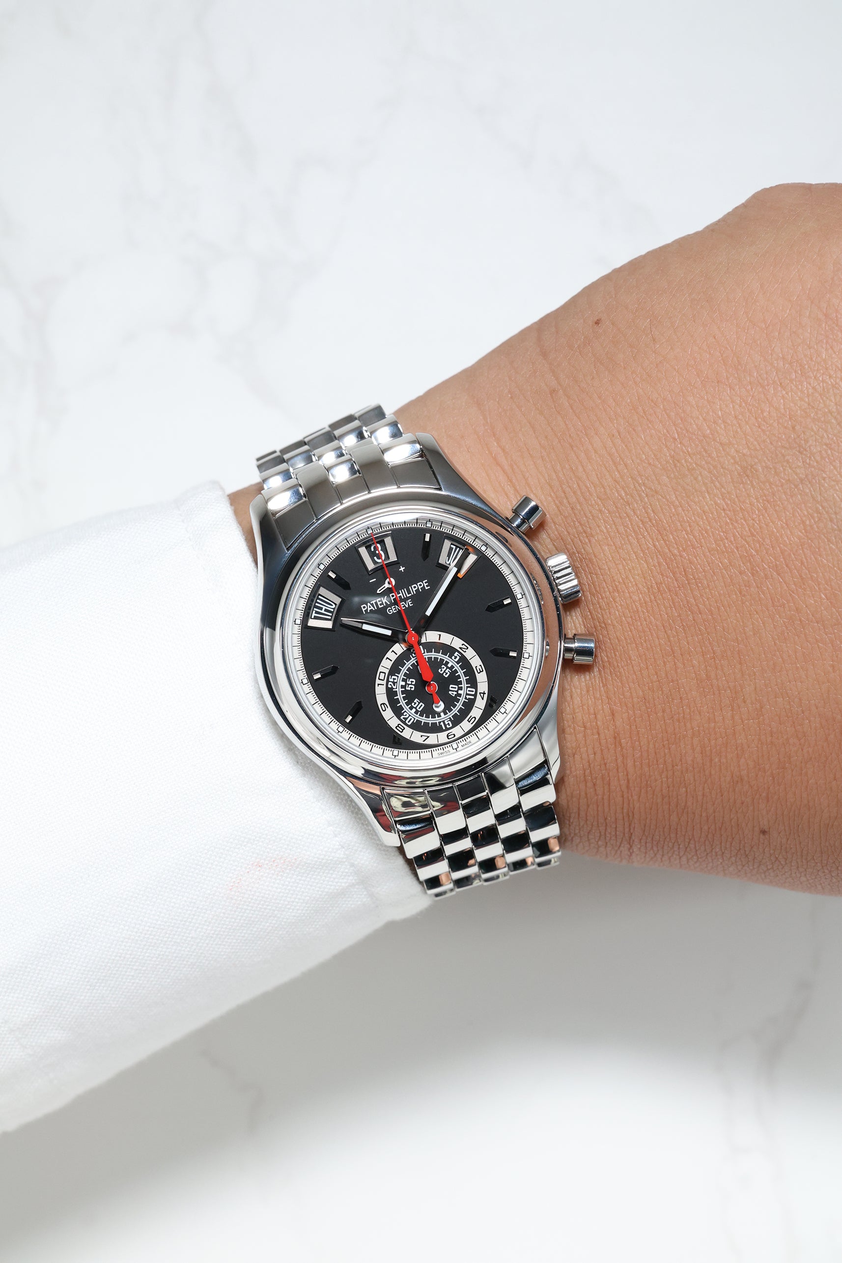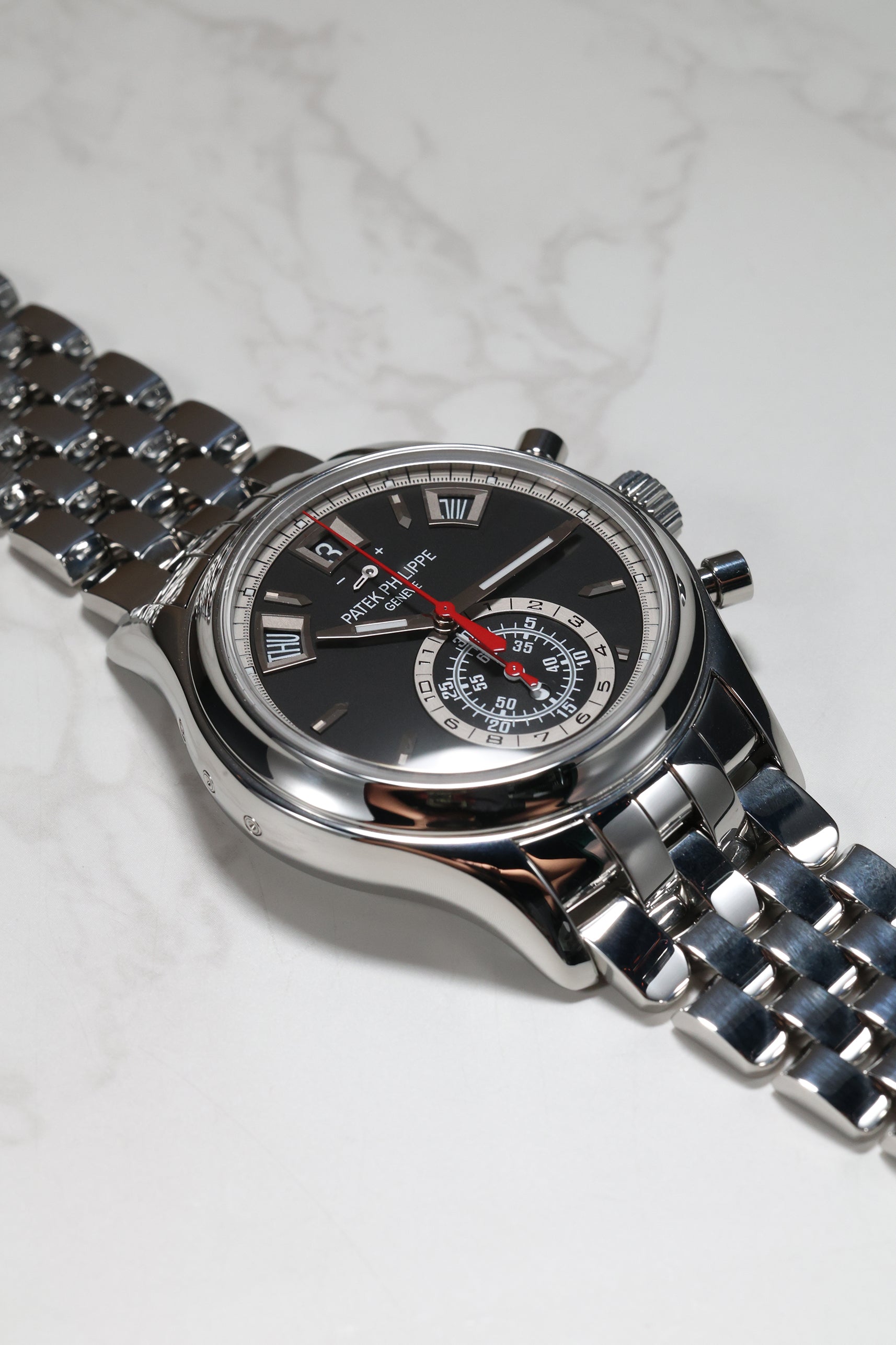 In a brand renowned predominantly for its precious metal watches, a complicated stainless steel chronograph with an annual calendar is exceptionally rare. The 5960/1A-010 embodies this rarity, further amplified by its extremely limited production period. It offers a compelling combination of everyday wearability and haute horlogerie typically reserved for Patek Philippe’s most exclusive pieces. For the discerning collector seeking technical mastery, modern styling, and an uncommon pedigree, this black-dial 5960 is a singular and utterly compelling proposition.