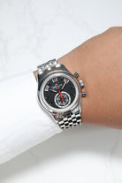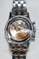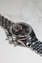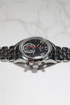 30m depth rating, Annual Calendar with day, date, month apertures, day/night indicator, Flyback Chronograph. |
