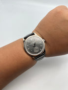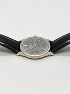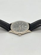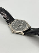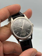 | Features : | 30m depth rating, Charcoal gray, vertical satin finish. Gold applied hour markers, Small seconds. |