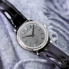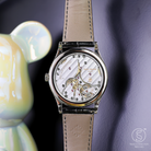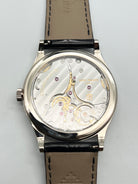 The Patek Philippe Calatrava 6119G-001 is a refined homage to the maison’s heritage, particularly the legendary hobnail design first seen in the iconic Reference 96D from 1934. This modern white gold version reintroduces the “Clous de Paris” bezel with updated proportions, offering a fresh yet faithful take on a signature Patek design. The finely guilloché bezel catches light elegantly, adding a textured sophistication to the otherwise minimalist aesthetic—an unmistakable nod to classic Patek Philippe style.