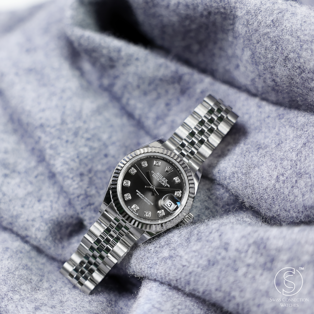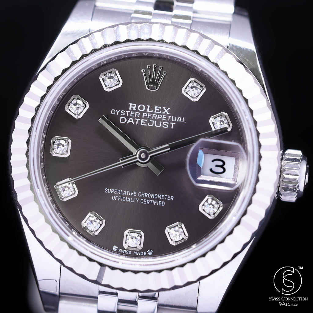 Rolex Datejust 28mm Dark Grey 10 Diamonds Jubilee 279174