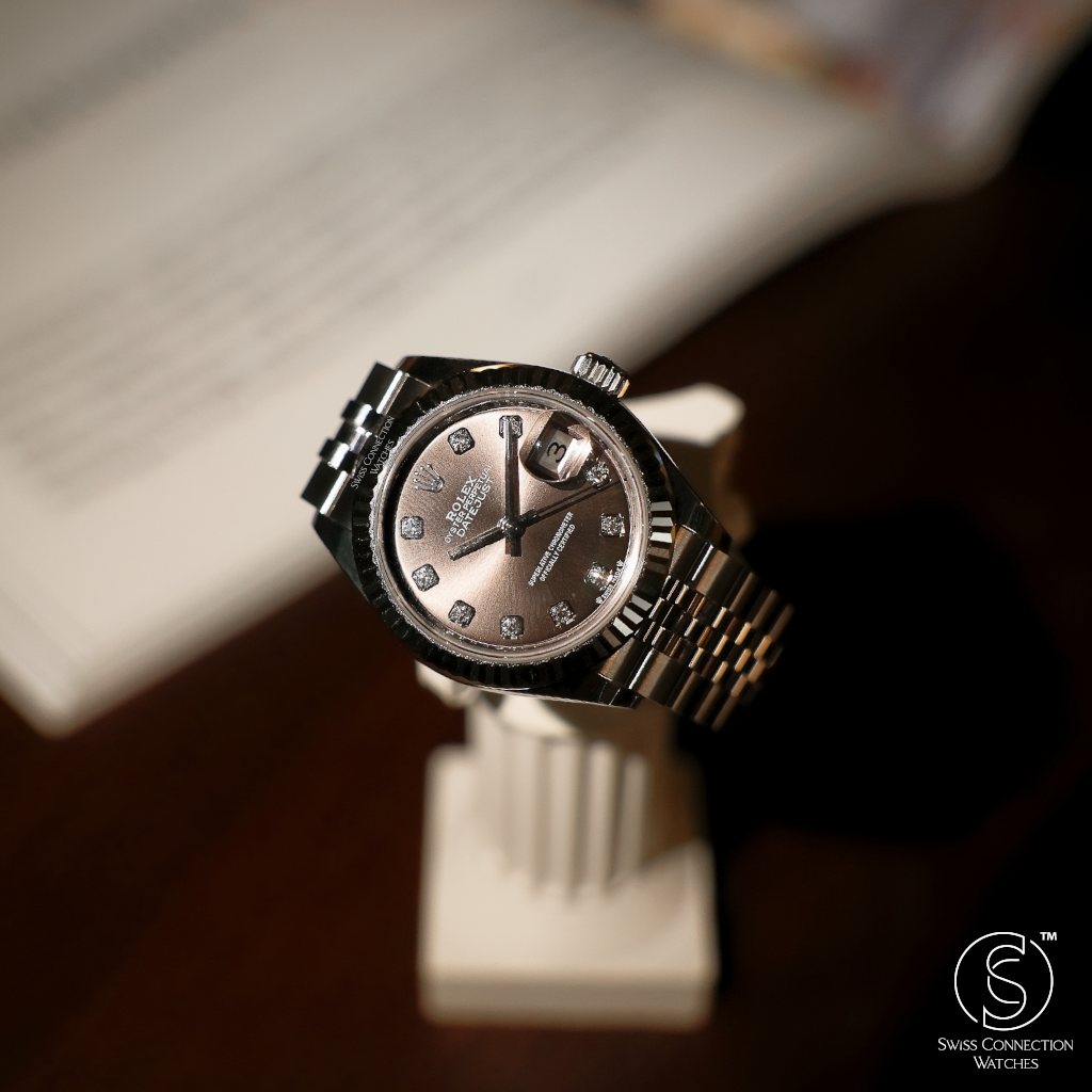 Powering the watch is the precise and reliable Rolex in-house Calibre 2236 automatic movement. This mechanism ensures exceptional accuracy and boasts an improved 55-hour power reserve, all rigorously certified as a Superlative Chronometer. The robust Oyster case provides water resistance up to 100 meters, making the Datejust 28 a practical and elegant companion for daily life, perfectly balancing high performance with refined luxury.