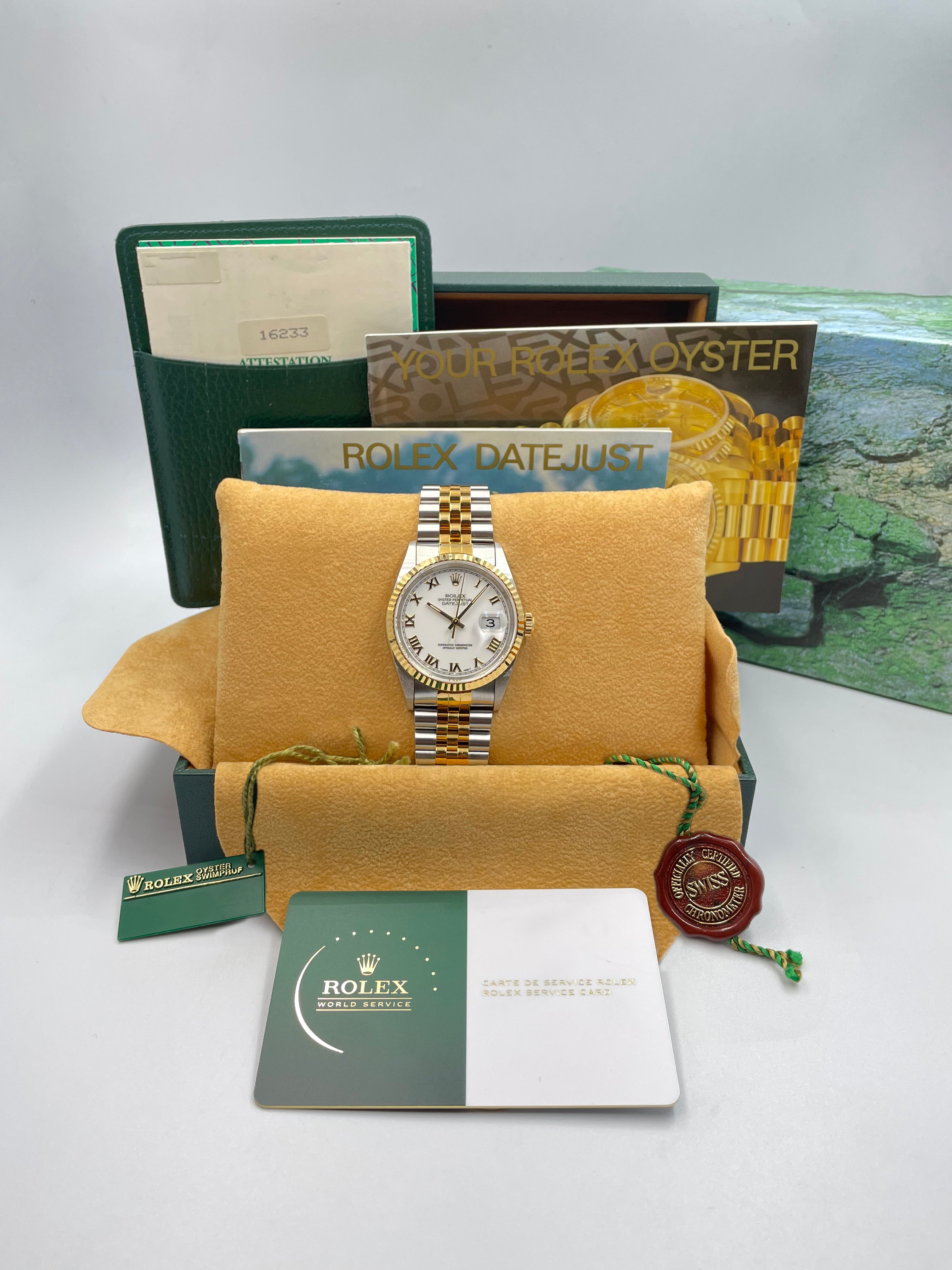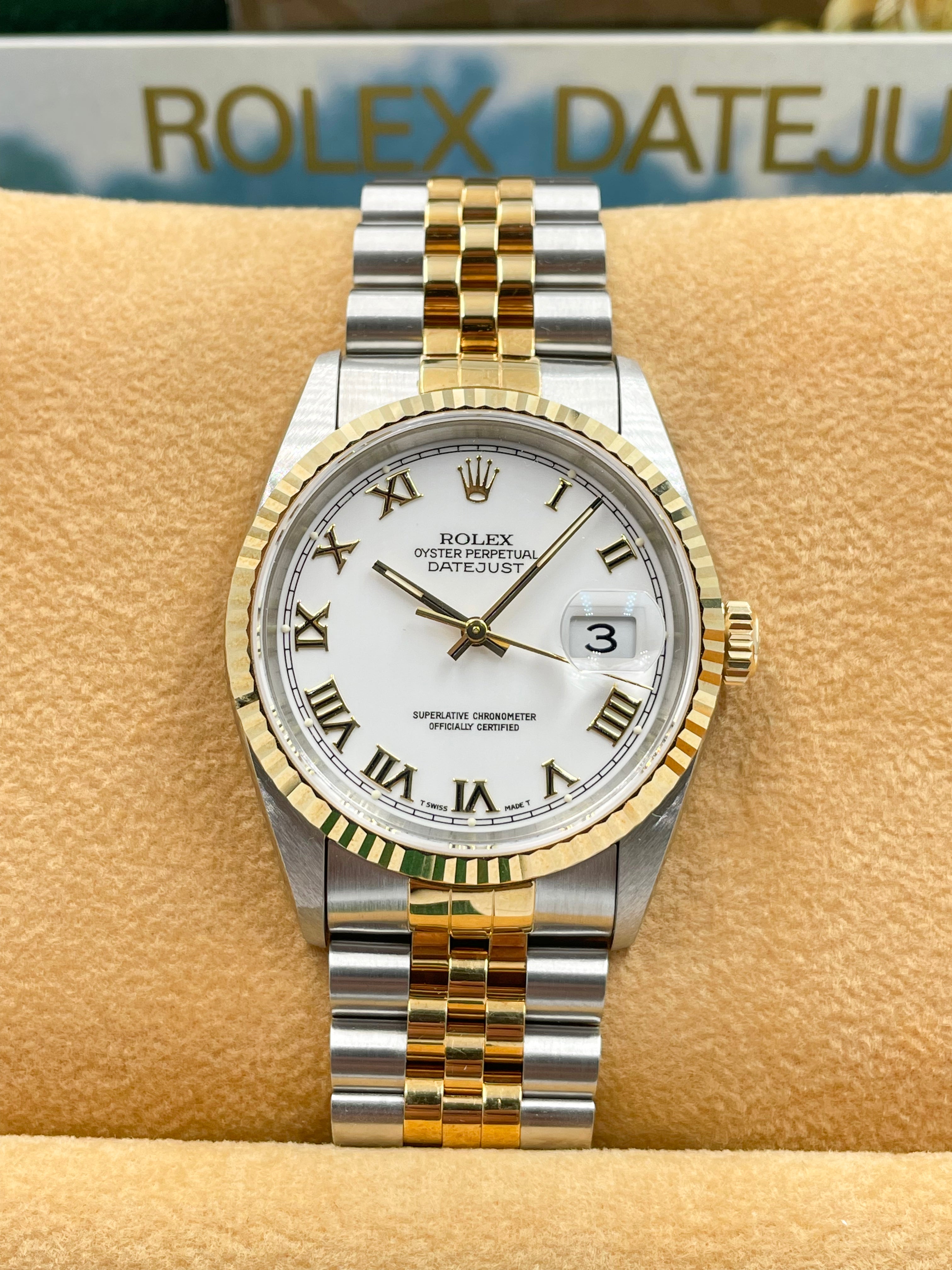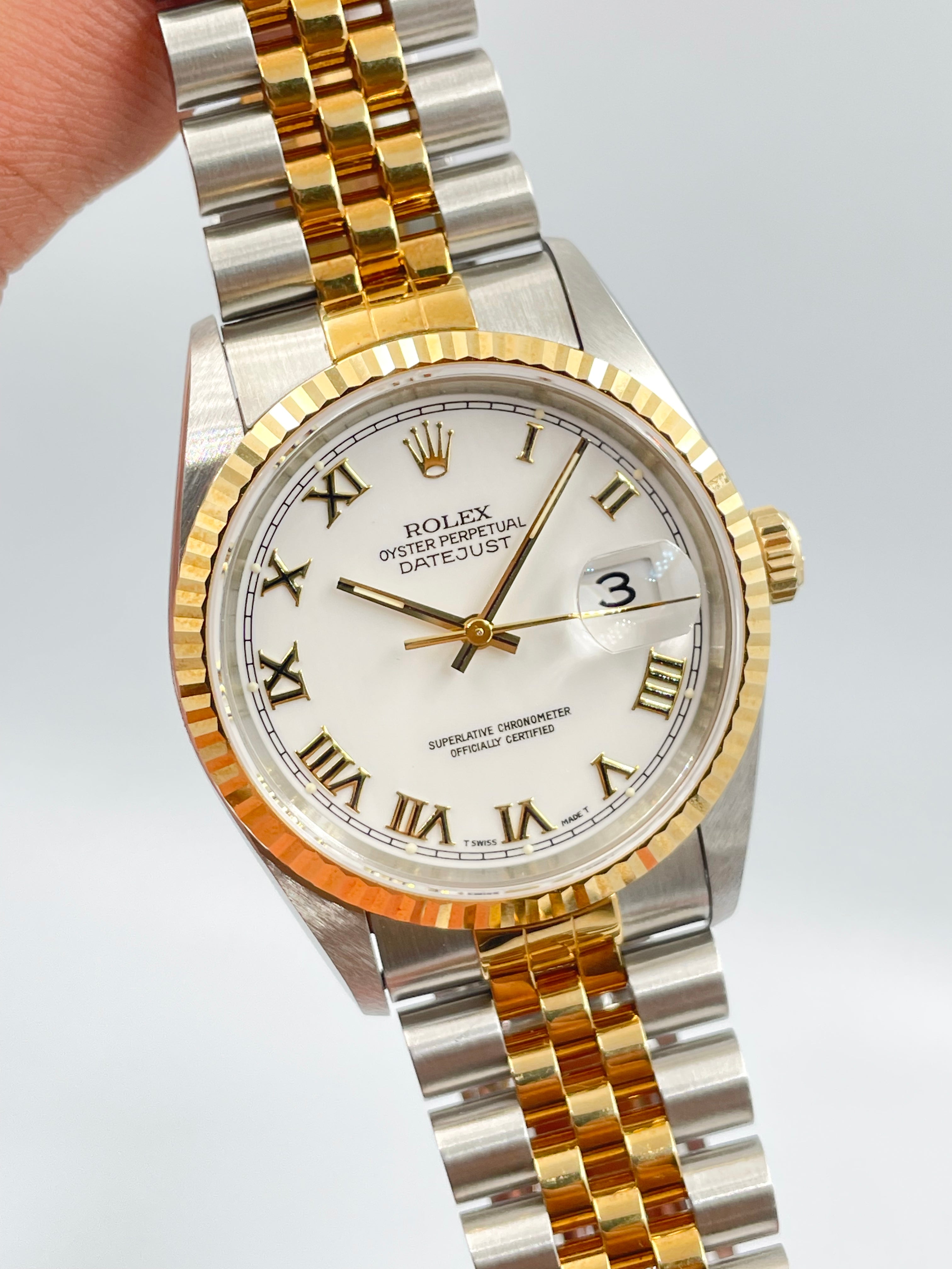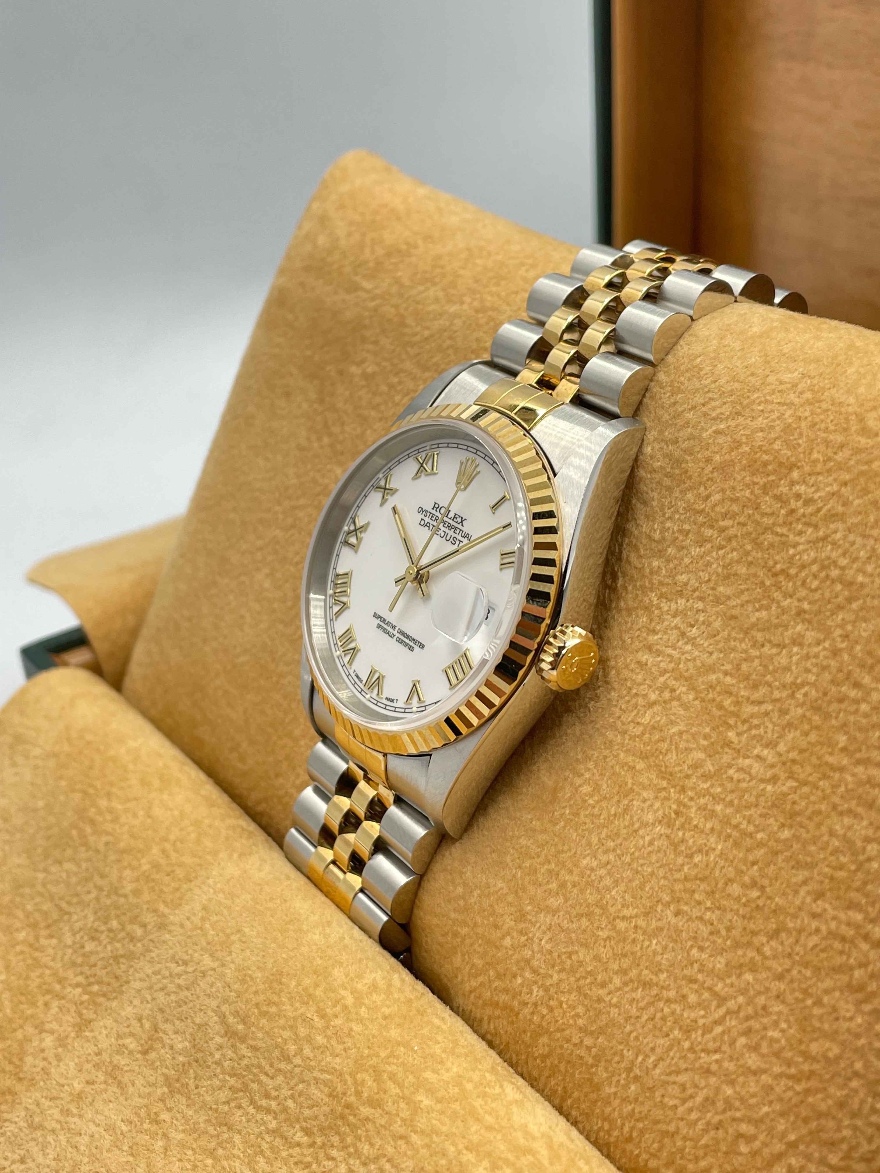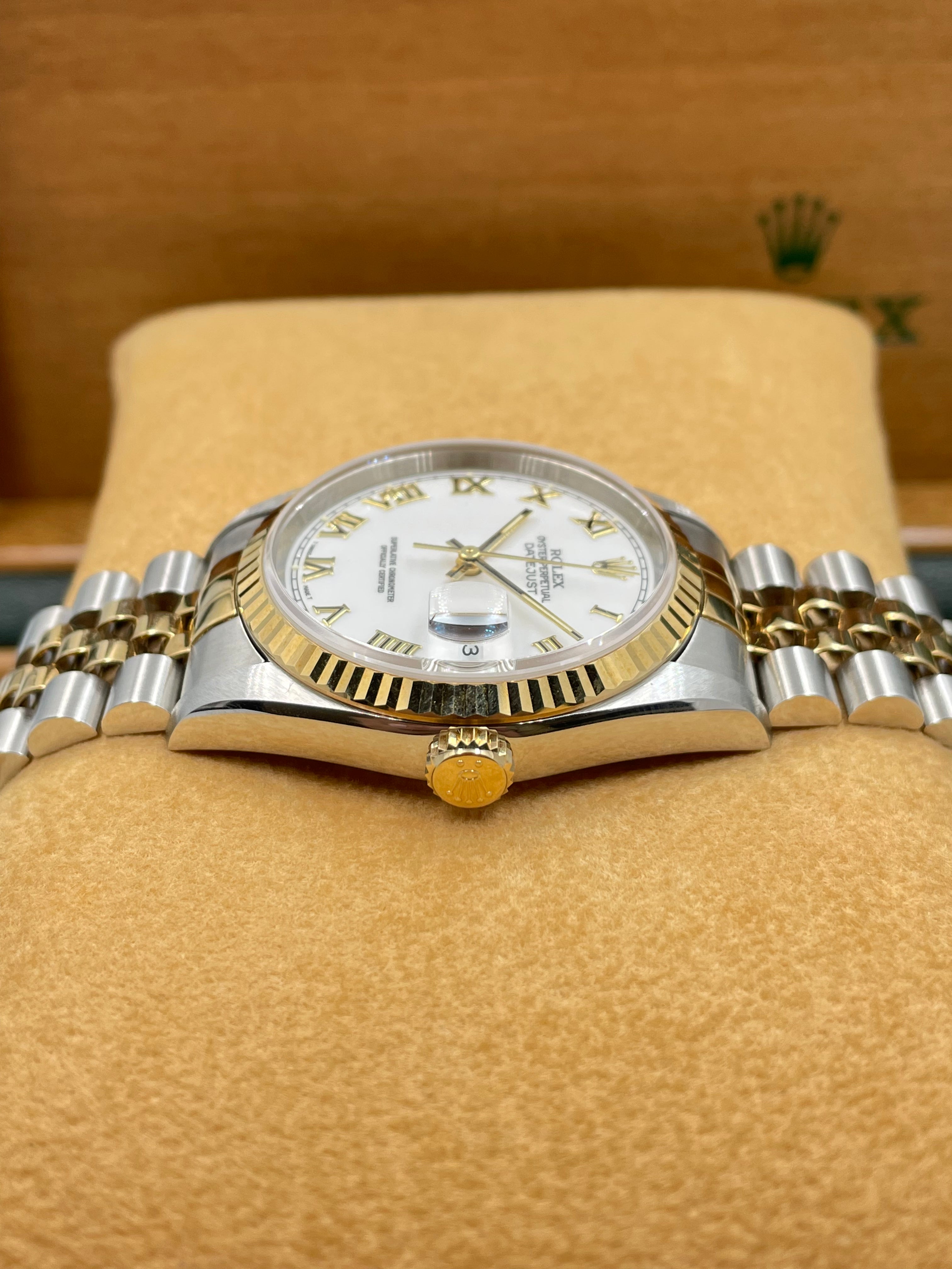 Rolex Datejust 36mm White Roman Dial Steel Rolesor on Jubilee 16233 1998 [NOS]