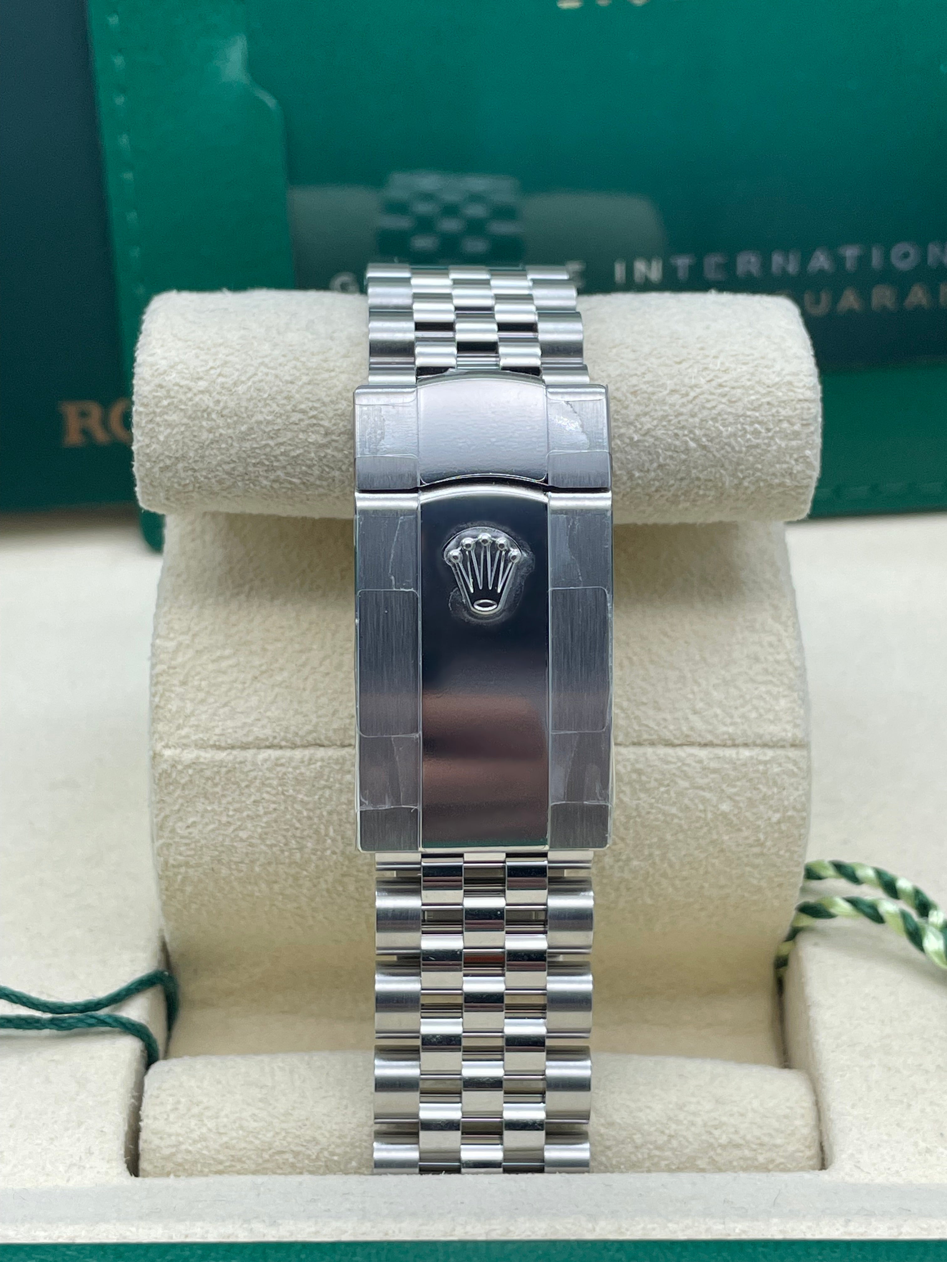 The 41mm Oystersteel case offers a confident yet balanced presence on the wrist, making it a versatile choice for any occasion. It’s paired with the distinguished Jubilee bracelet, renowned for its intricate five-piece links that provide exceptional comfort and a refined drape. This classic combination of the fluted bezel and Jubilee bracelet exudes an air of understated luxury, ensuring the watch is equally suited for formal events and sophisticated daily wear.