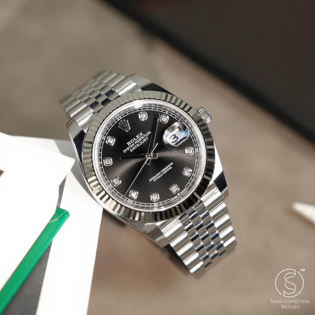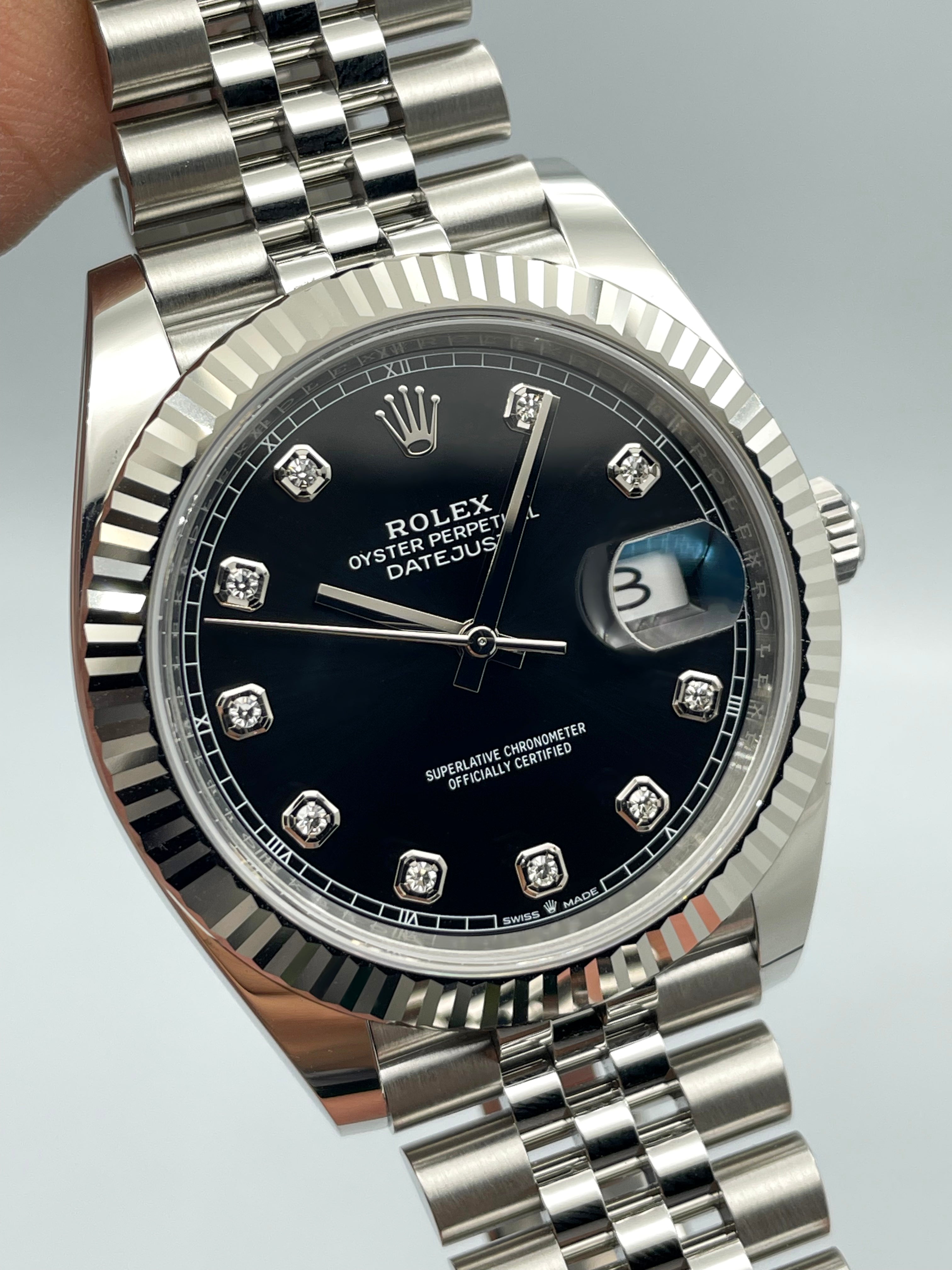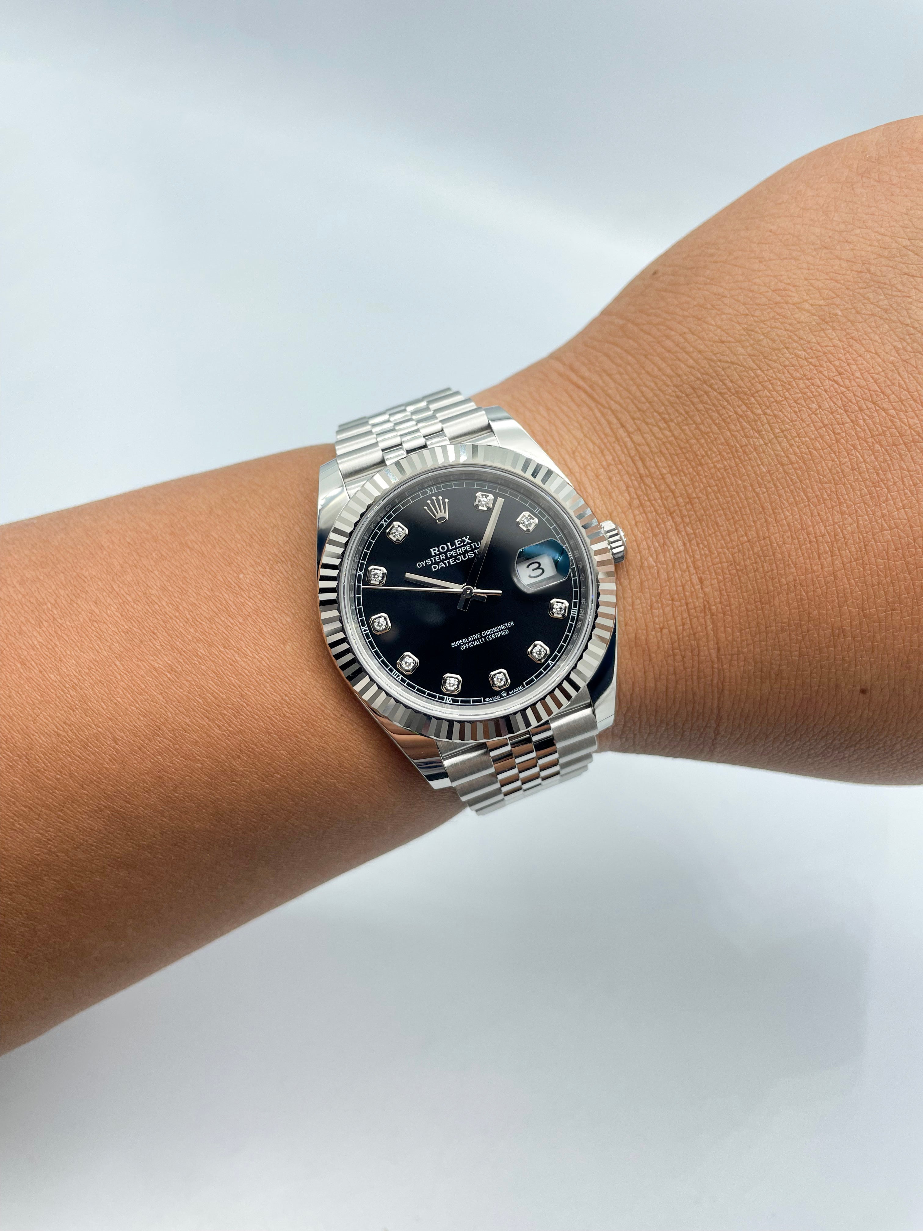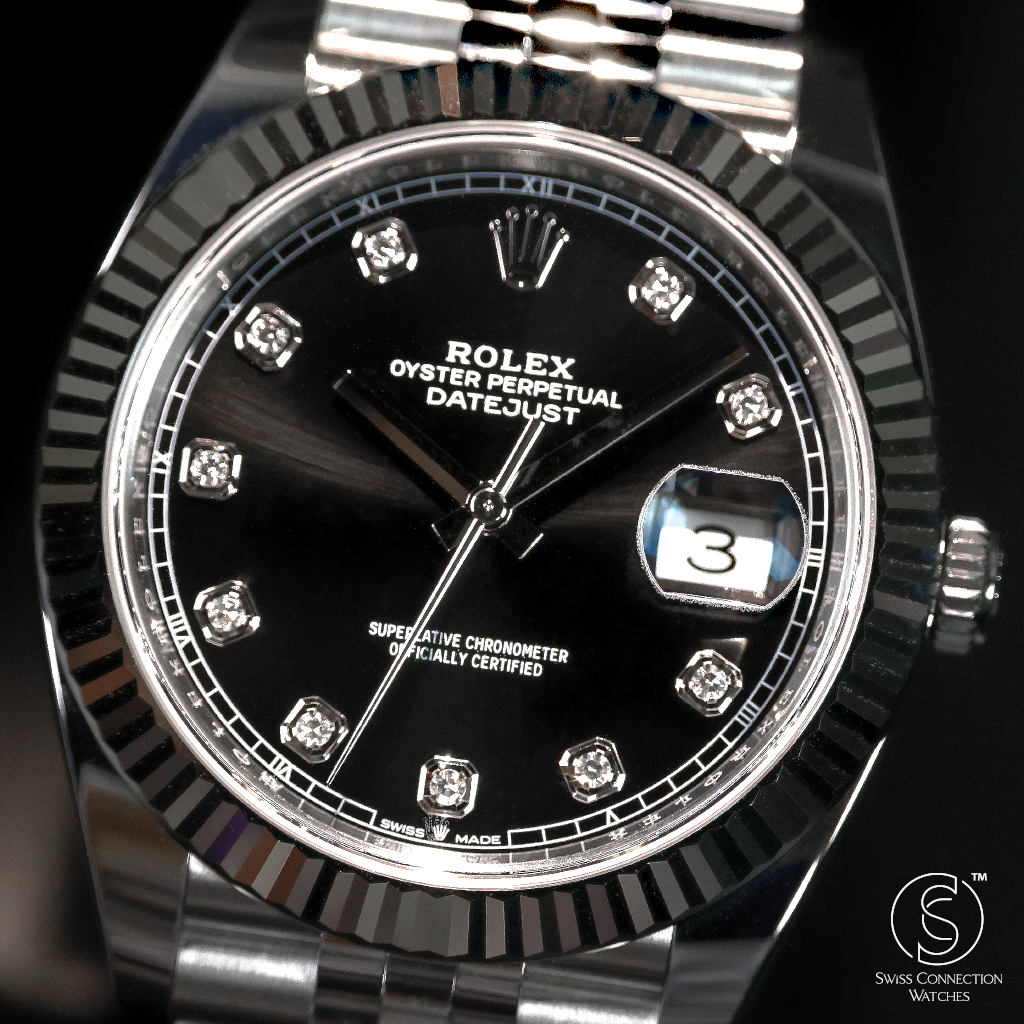 Rolex Datejust 41mm Black 10 Diamonds on Jubilee 126334