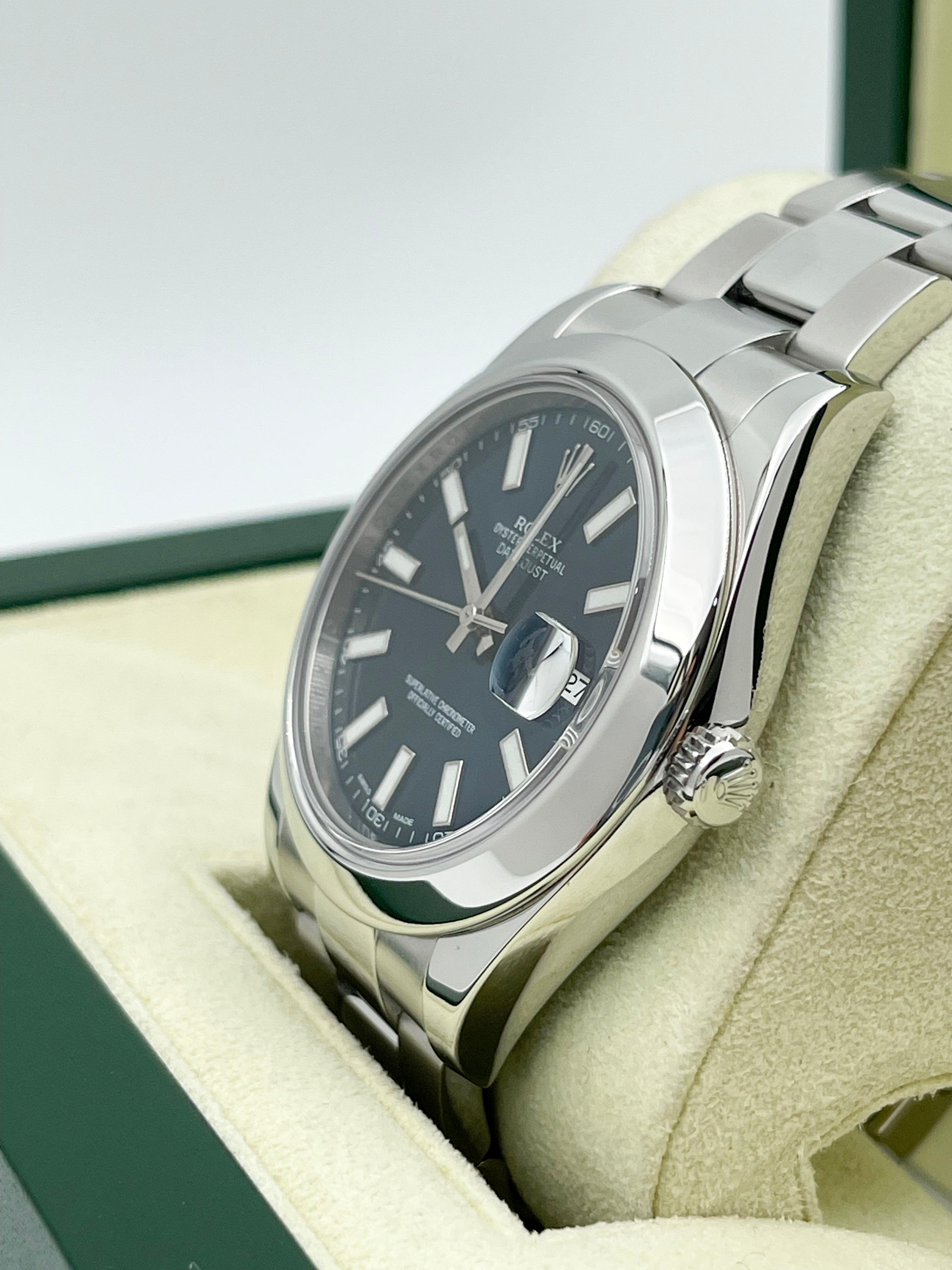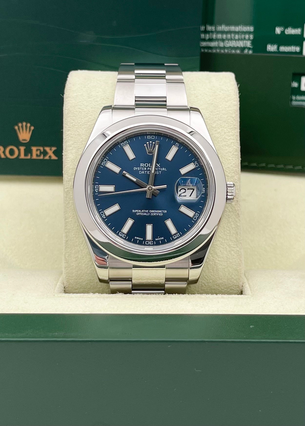 The reference 116300 is the previous Datejust in 41mm. It was discontinued in 2017 and the new reference 126300 supercedes it. Main differences are the index sizes on the dial and a newer movement.