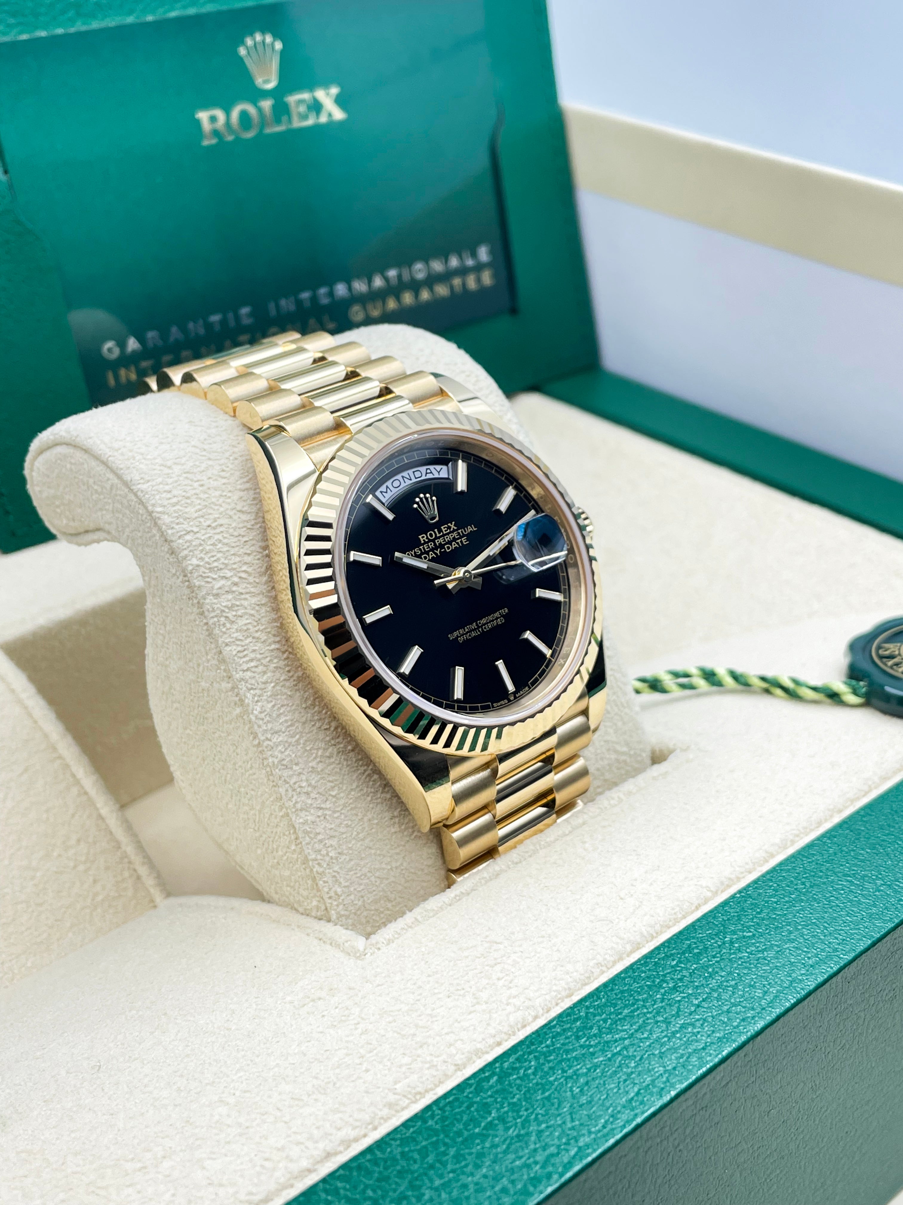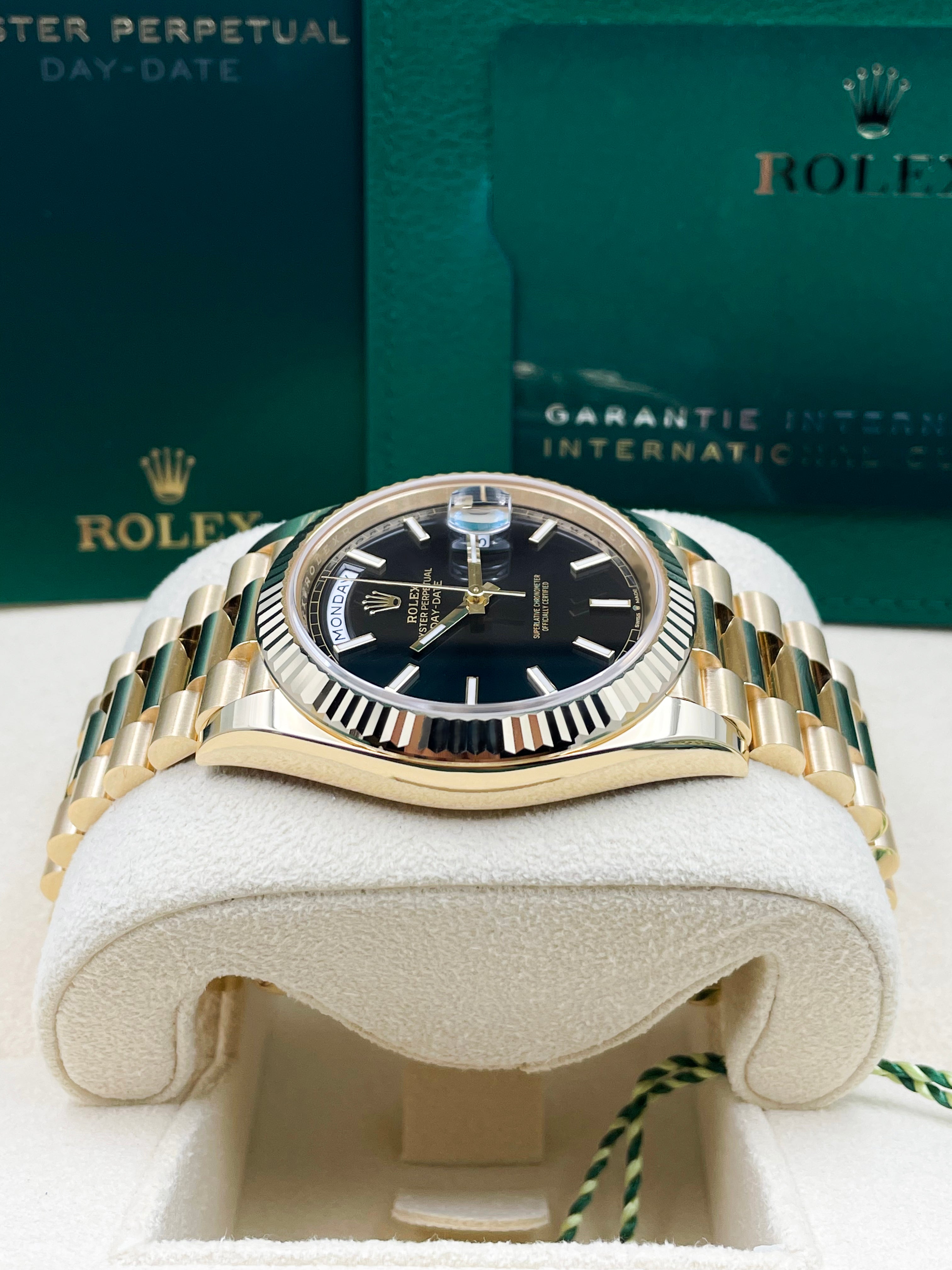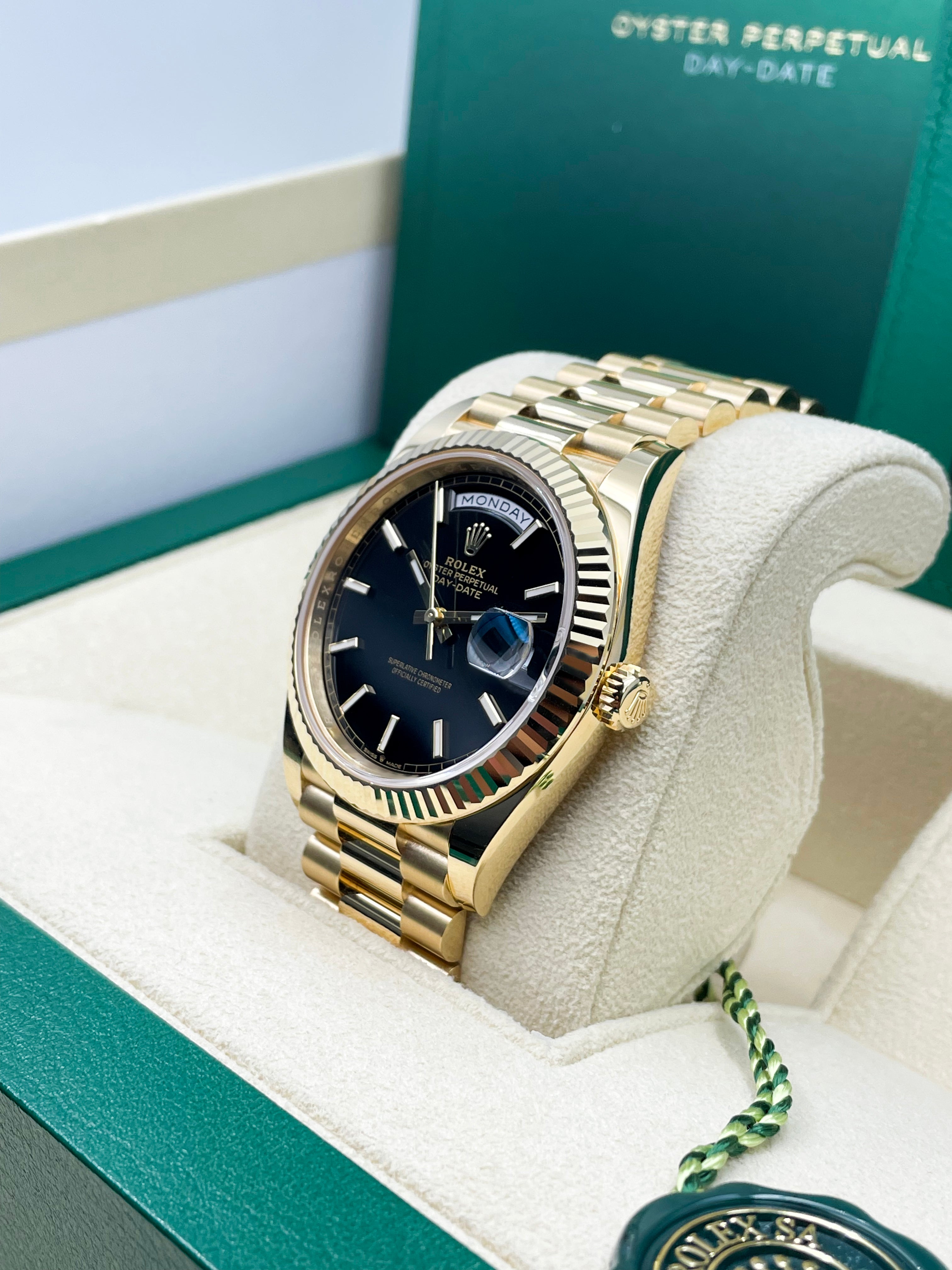 The Day-Date 40 was introduced in 2016 with a smaller case (previously 41mm Daydate II), newer movement (70hrs with parachrom spring) and a new 60th anniversary green-olive dial.