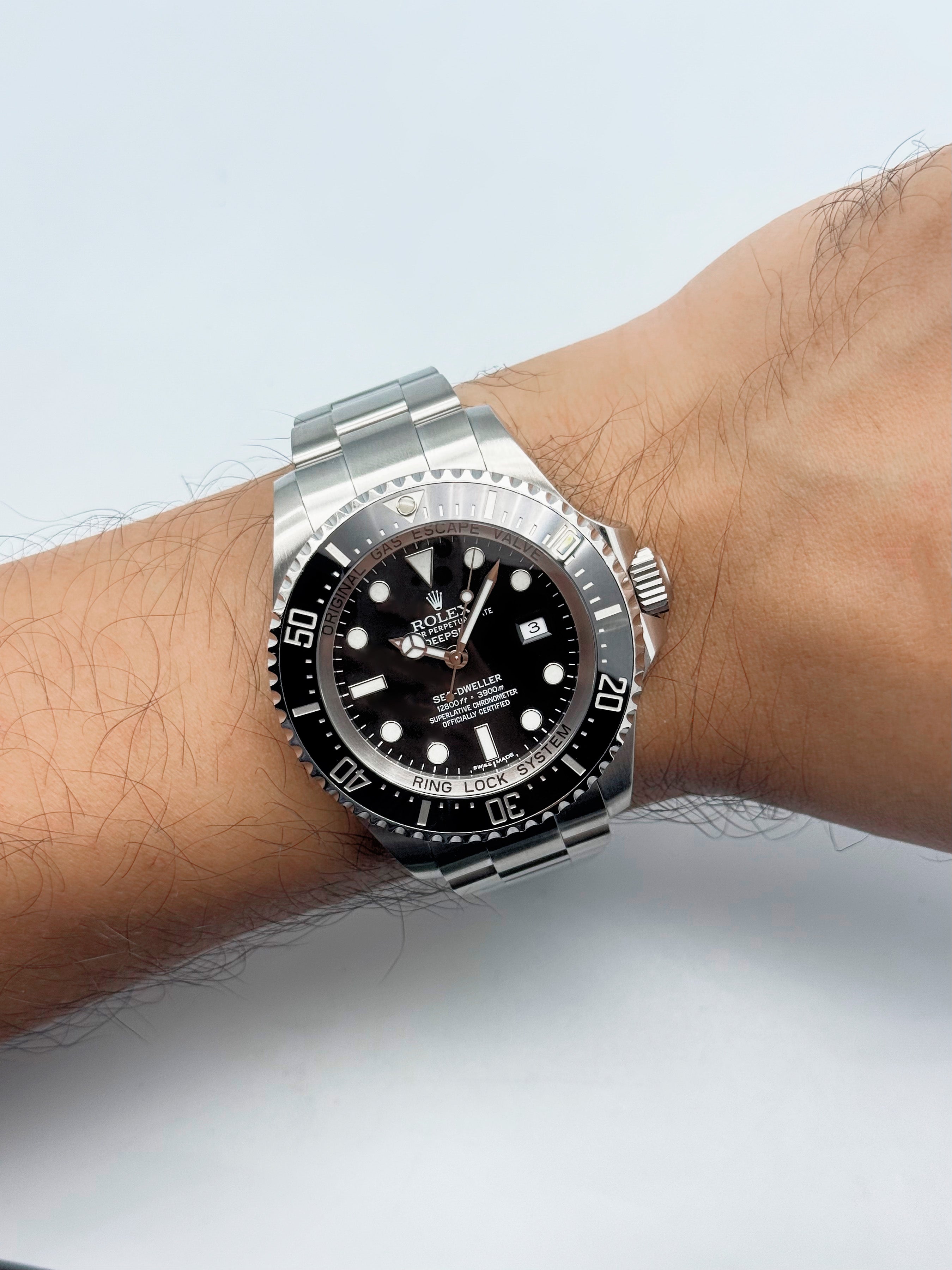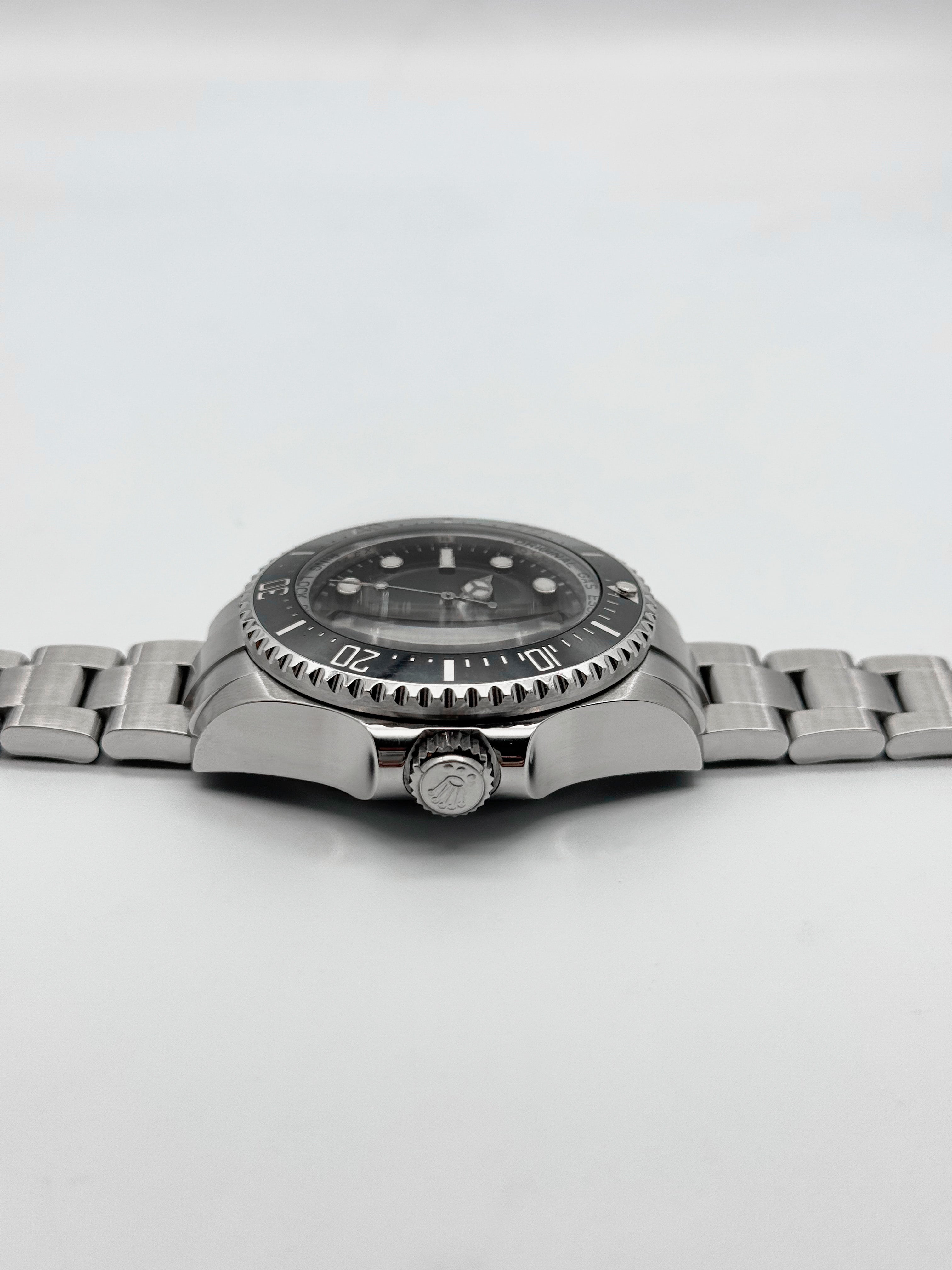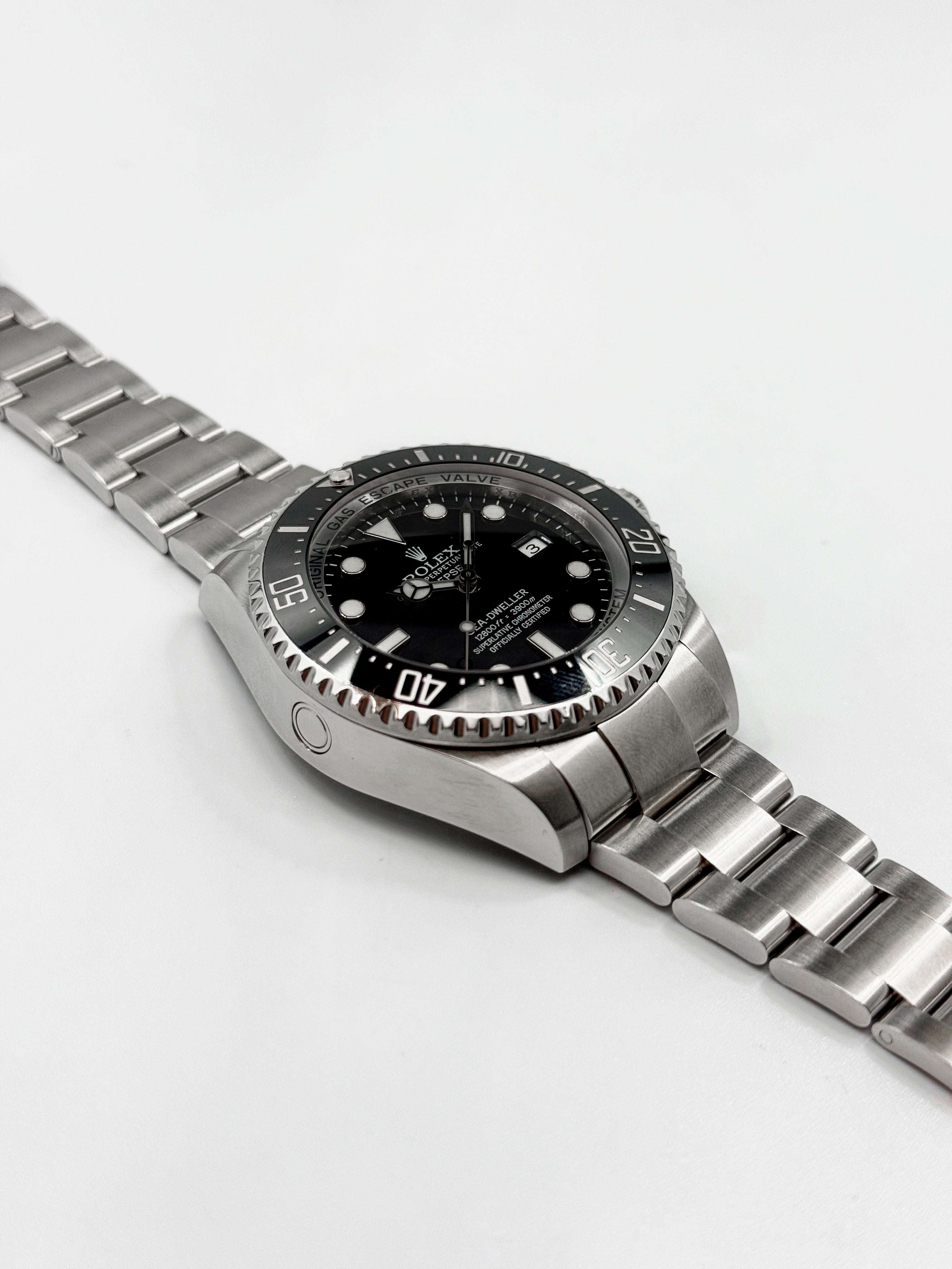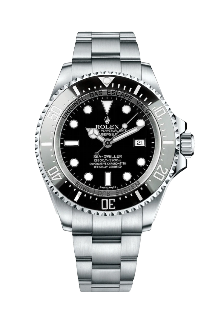 The Rolex Deepsea 116660, stands as one of the most formidable dive watches in Rolex’s professional collection. With its imposing 44mm Oystersteel case and the groundbreaking Ringlock System, it’s engineered to withstand the crushing pressures of deep-sea exploration—capable of diving depths up to 3,900 meters (12,800 feet). Its bold proportions and robust construction give it an unmistakable presence on the wrist, making it a statement piece for those who appreciate extreme performance and rugged design.
