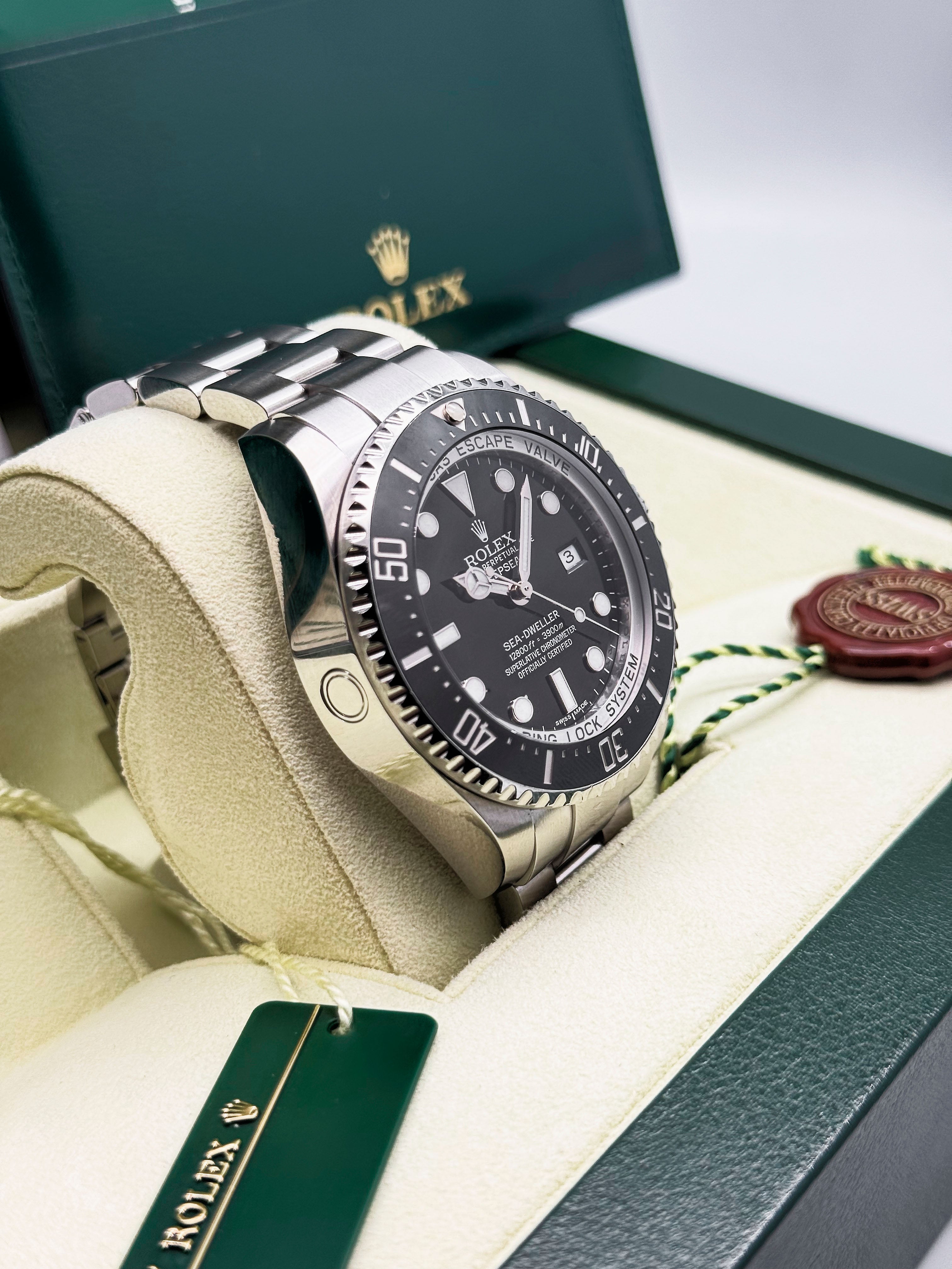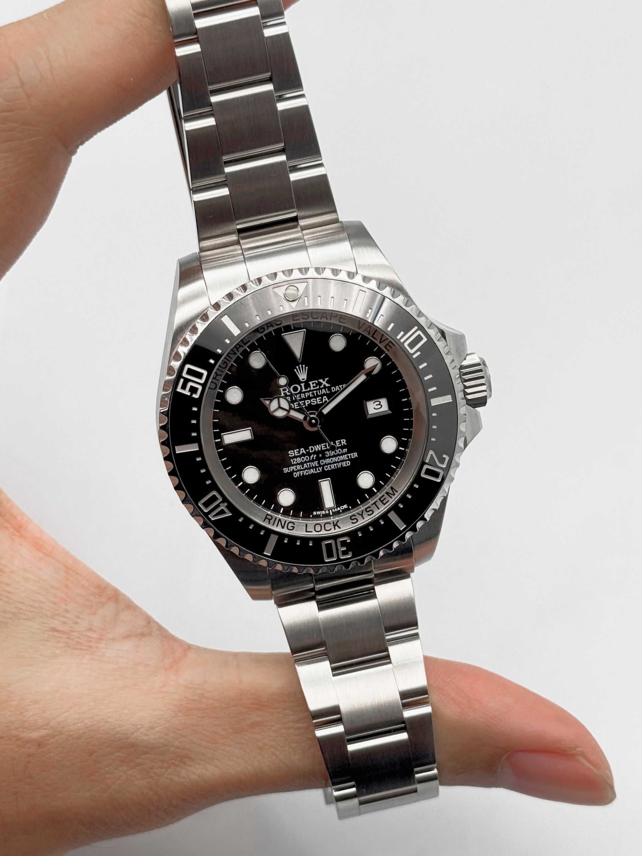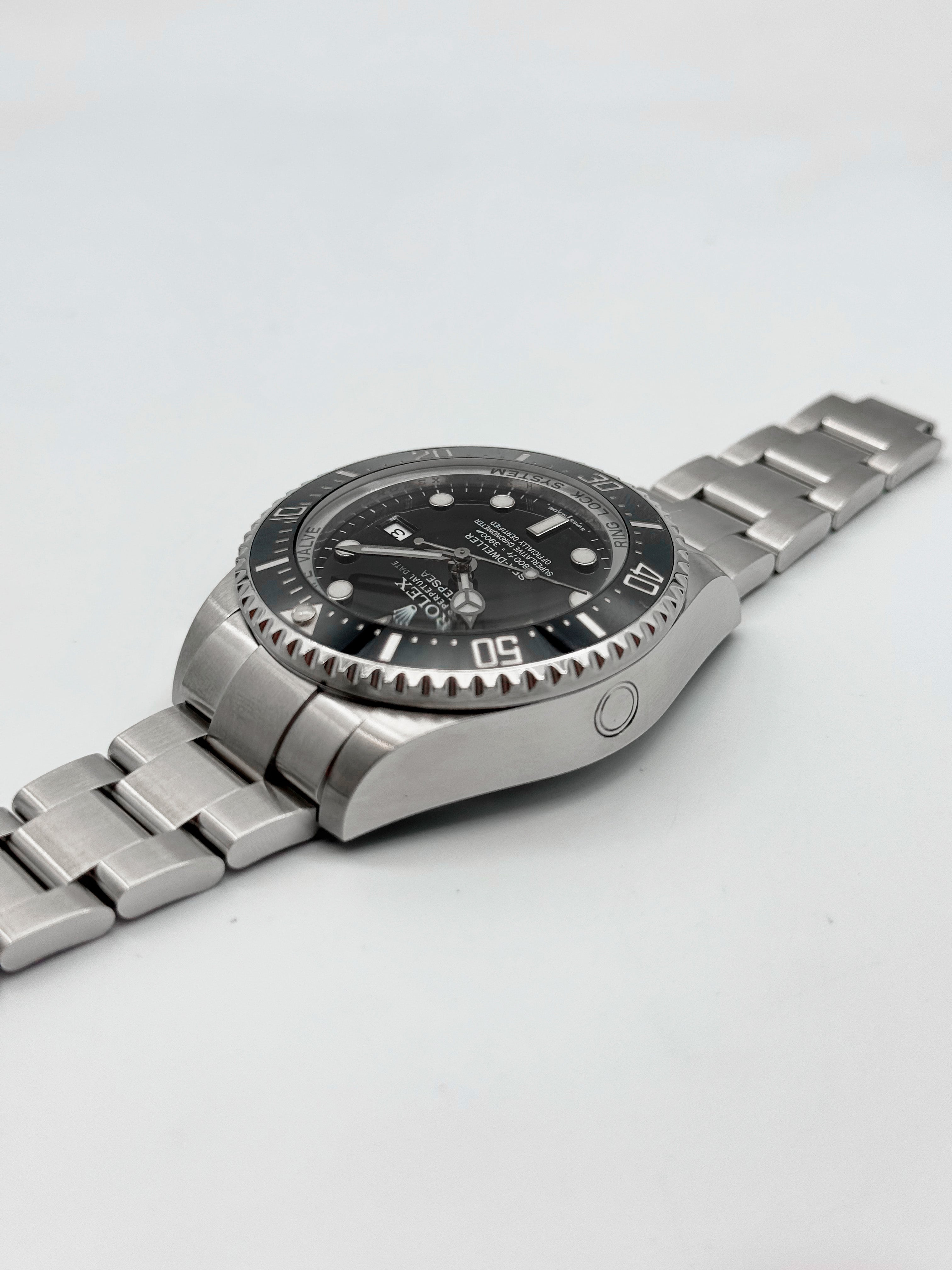 The Rolex Deepsea 116660, stands as one of the most formidable dive watches in Rolex’s professional collection. With its imposing 44mm Oystersteel case and the groundbreaking Ringlock System, it’s engineered to withstand the crushing pressures of deep-sea exploration—capable of diving depths up to 3,900 meters (12,800 feet). Its bold proportions and robust construction give it an unmistakable presence on the wrist, making it a statement piece for those who appreciate extreme performance and rugged design.