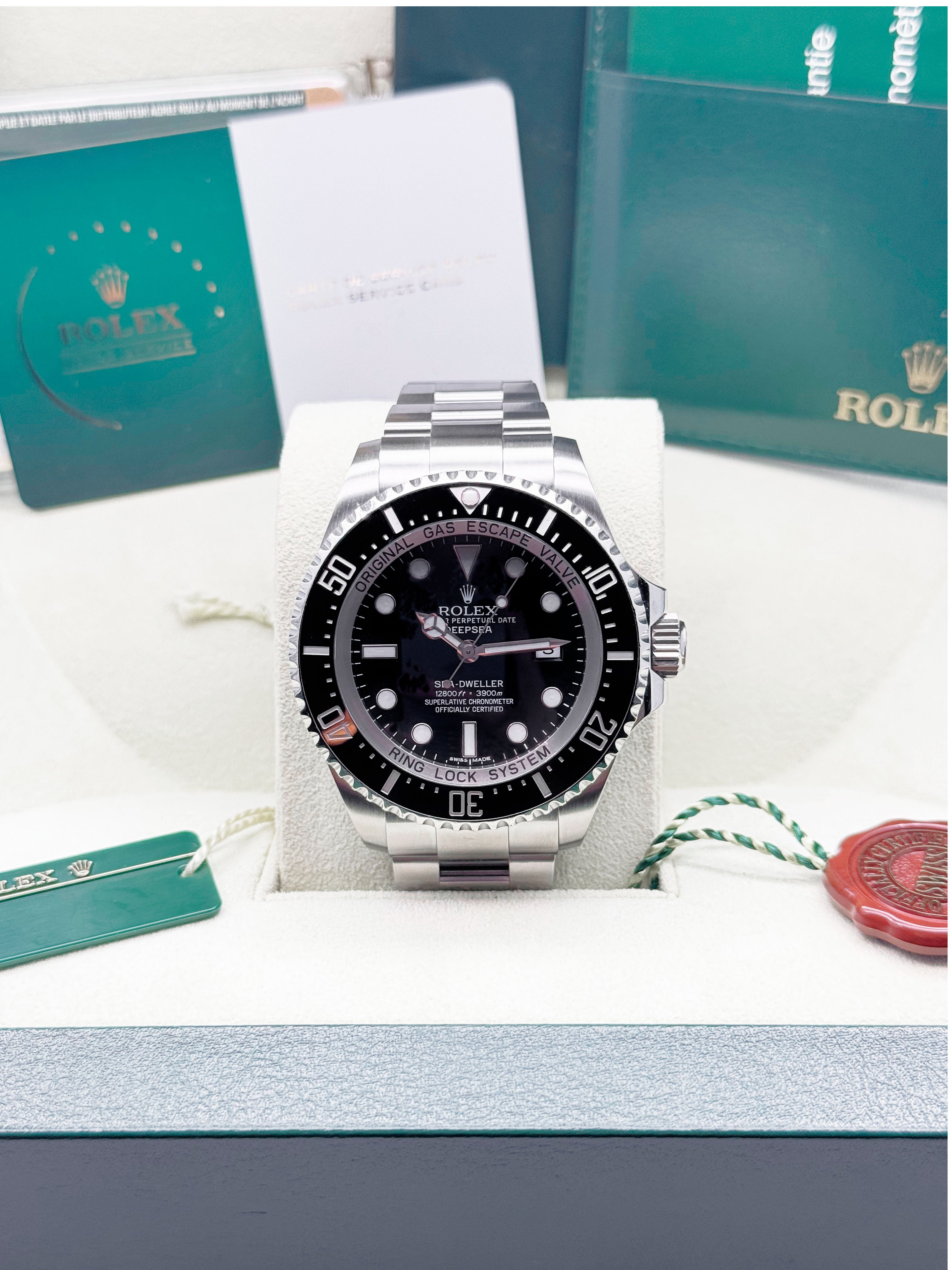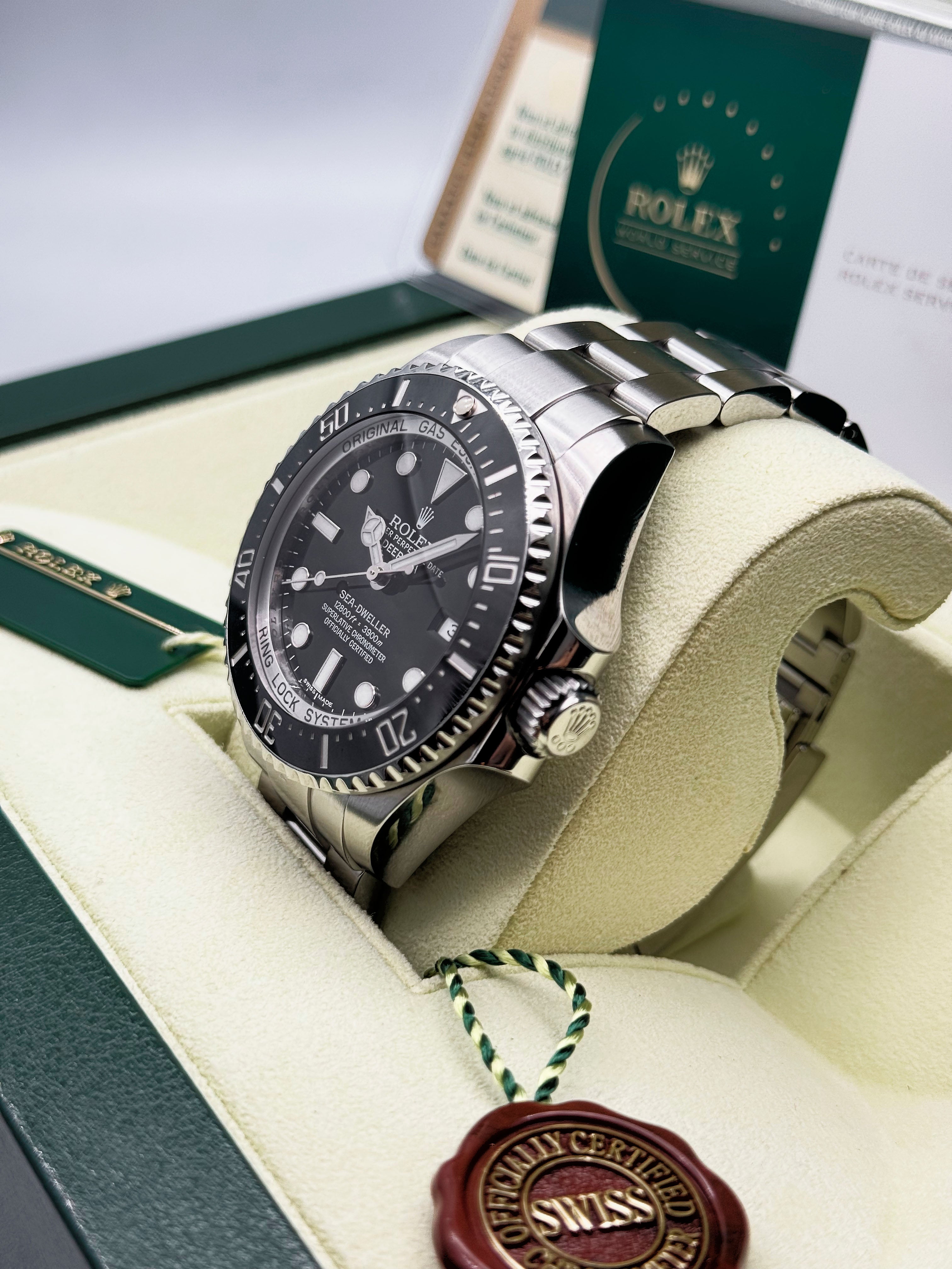 | Features : | 3900m depth rating, Blue luminescence on dial, Uni-directional Cerachrome Bezel, Helium Escape Valve, Folding Oysterlock safety clasp with Rolex Glidelock extension system and Fliplock extension link |