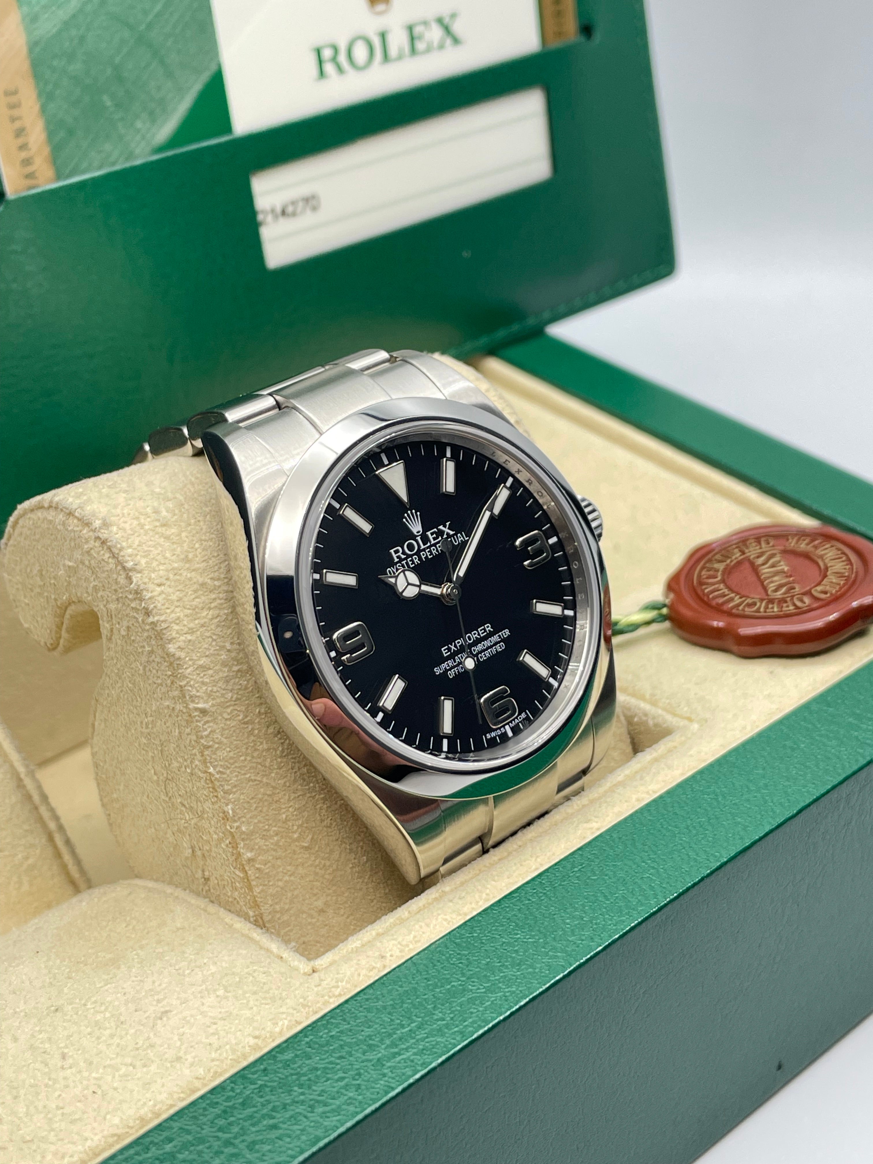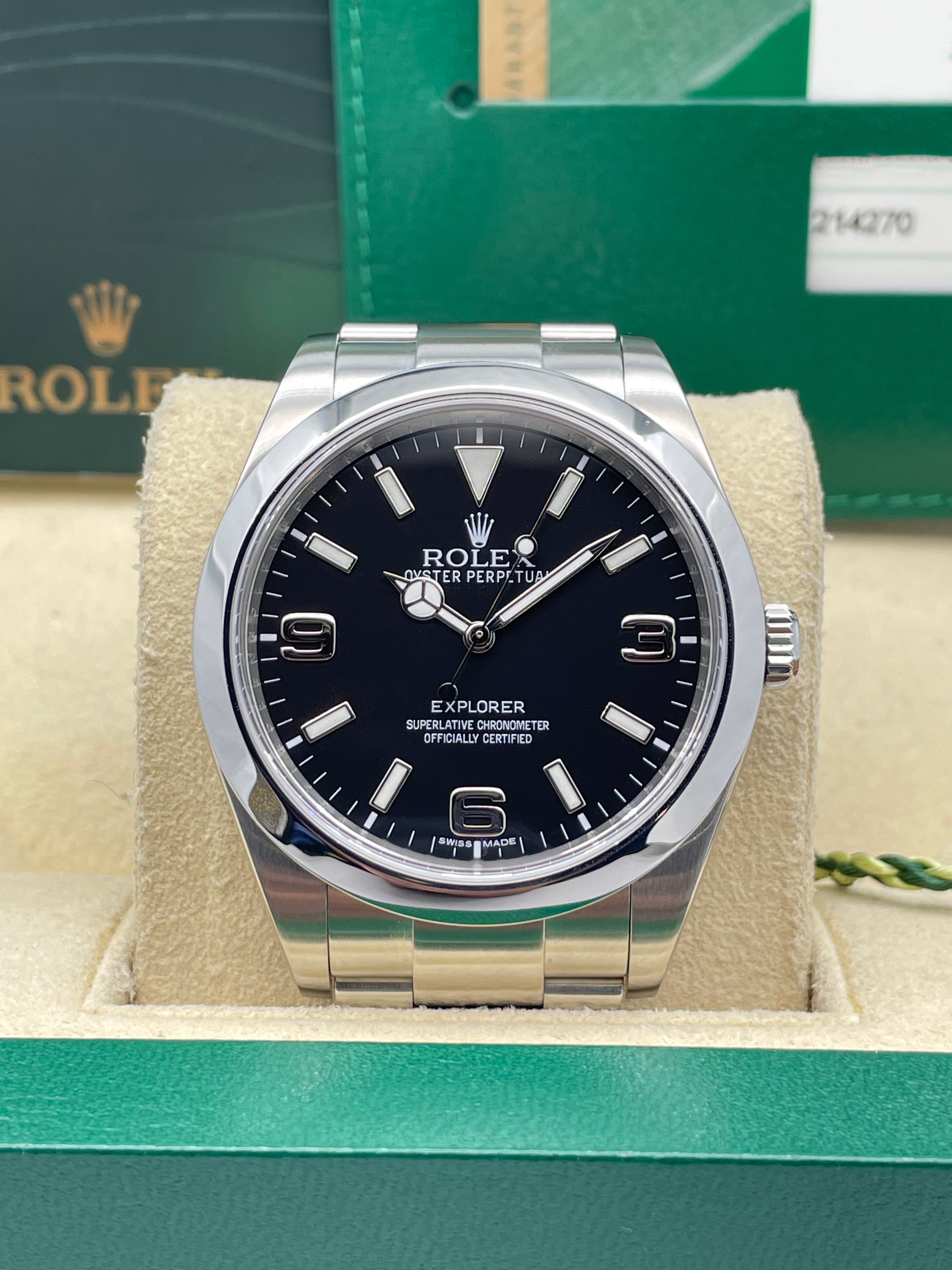 The Rolex Explorer 1 reference 214270 in 39mm is a celebrated model that carries the legacy of one of Rolex's most iconic timepieces. Introduced in 2010 and discontinued in 2021, it marked a modern evolution of the Explorer line while maintaining the watch’s storied history. The 39mm case offered a contemporary size upgrade, catering to modern tastes while retaining the robust and understated elegance that has defined the Explorer since its debut in 1953.