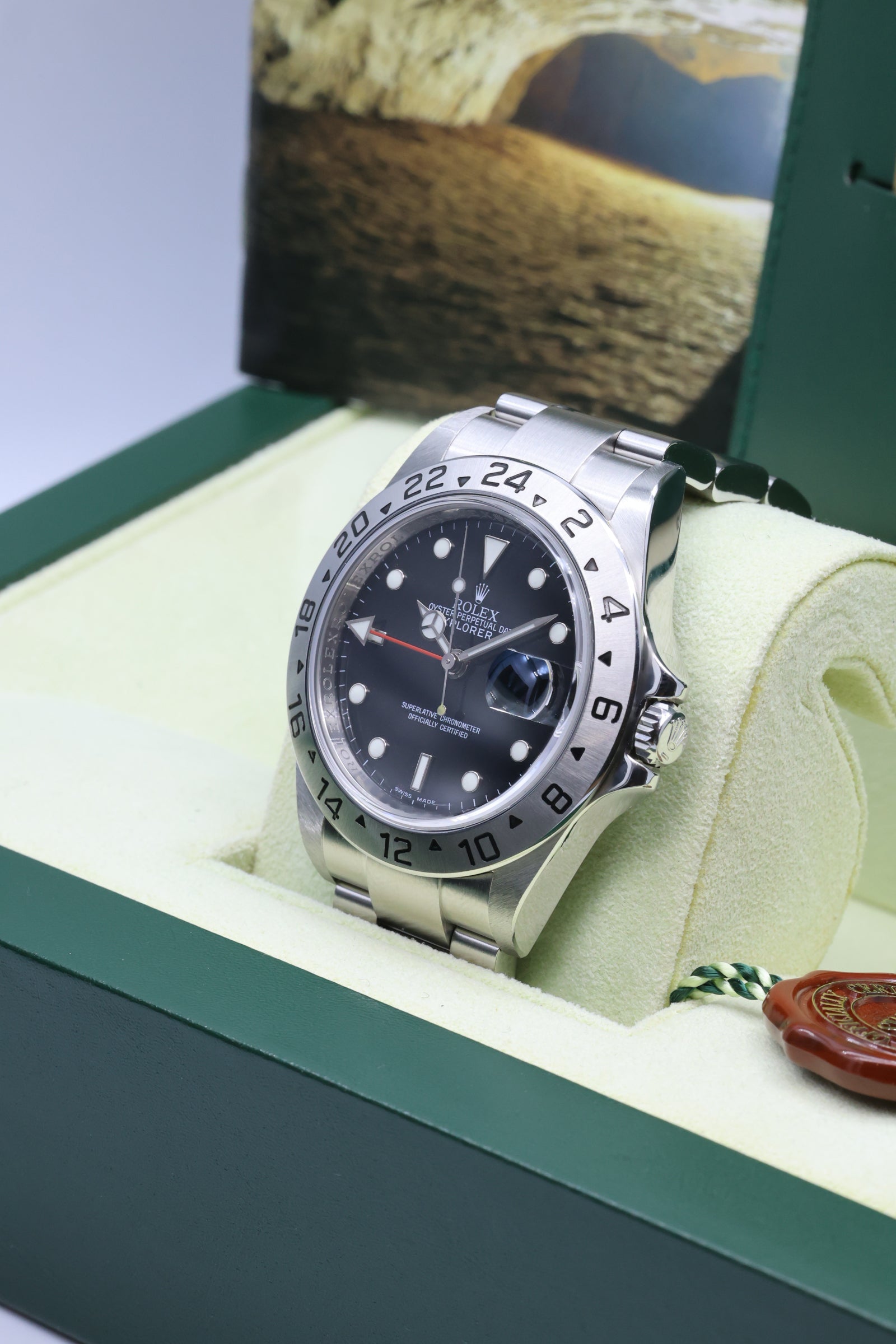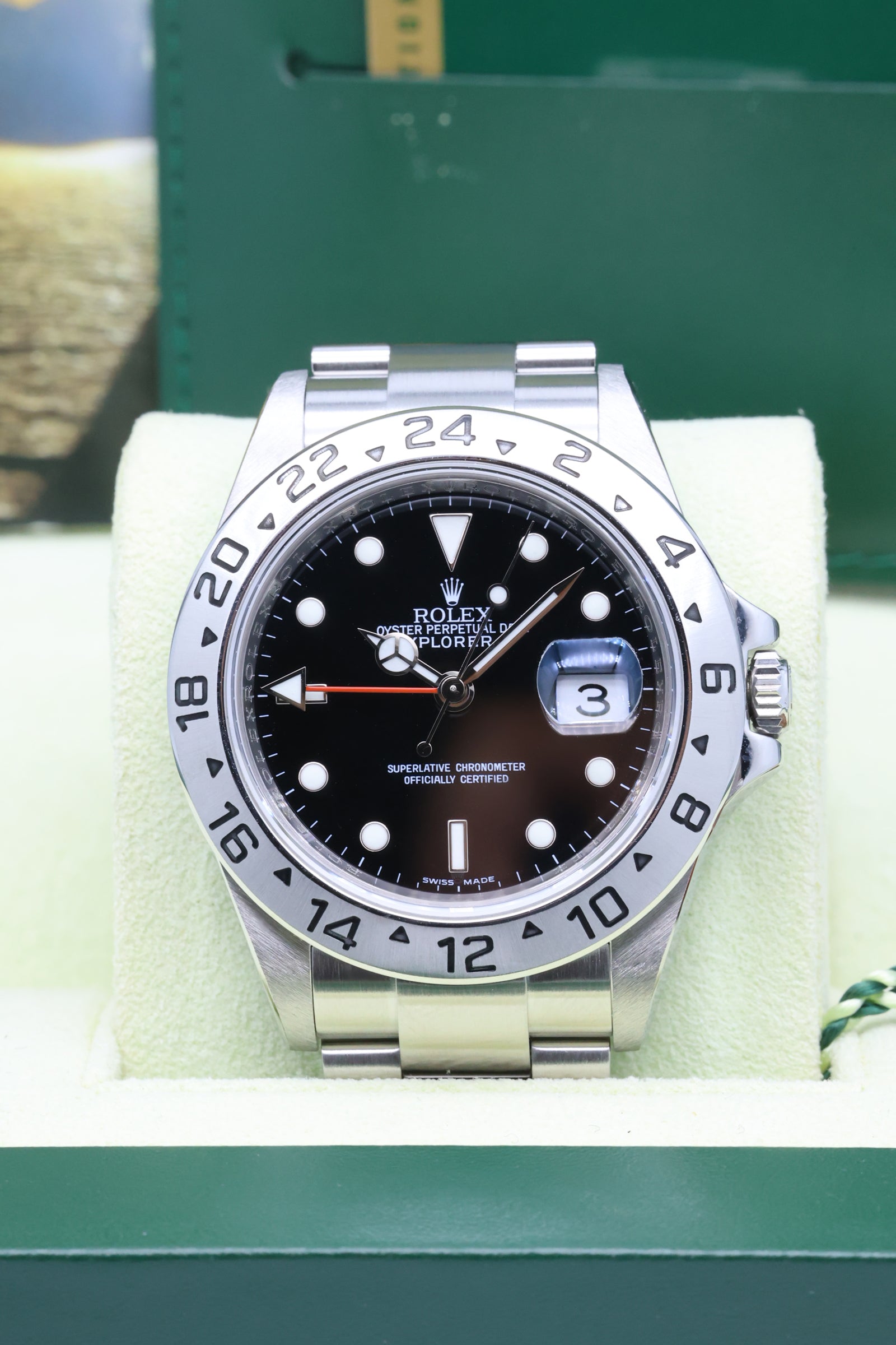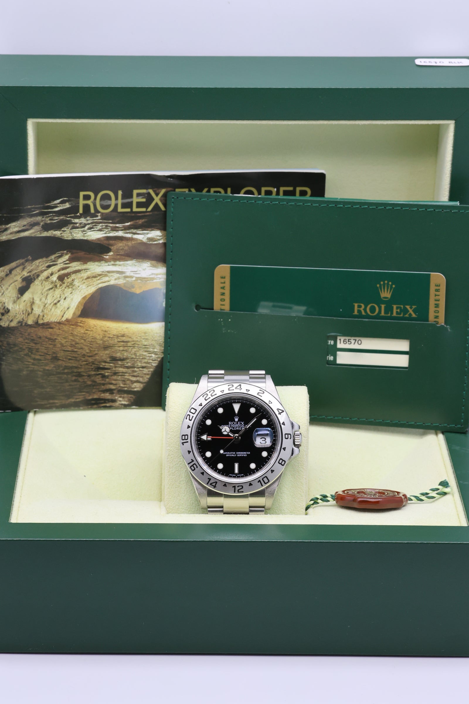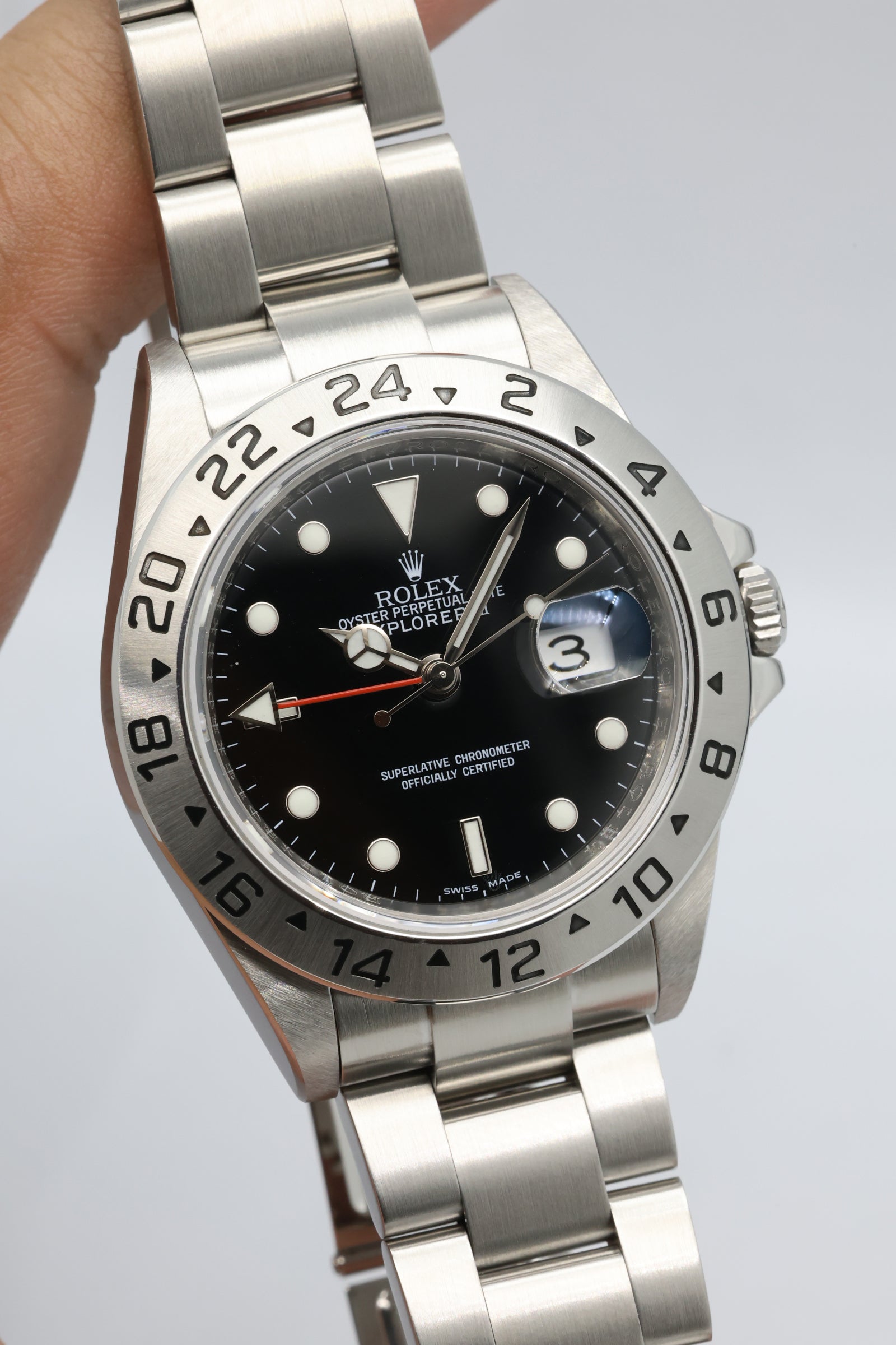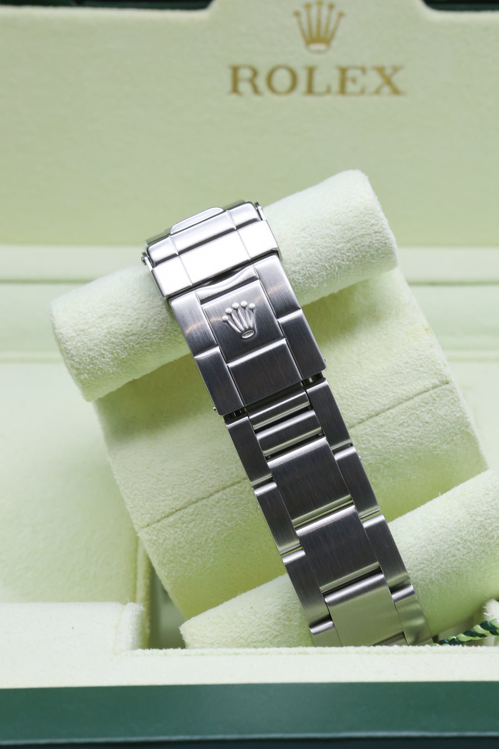 Housed in a 40mm stainless steel case, the 16570 maintains a sleek and comfortable profile that suits various wrist sizes. Its Oyster case construction ensures water resistance up to 100 meters (330 feet), making it reliable for both rugged exploration and urban adventures. The fixed 24-hour bezel, crafted from robust stainless steel, features engraved numerals filled with black enamel for excellent legibility. Paired with the Oyster bracelet and its secure folding clasp, the watch offers a harmonious combination of durability and refinement.
