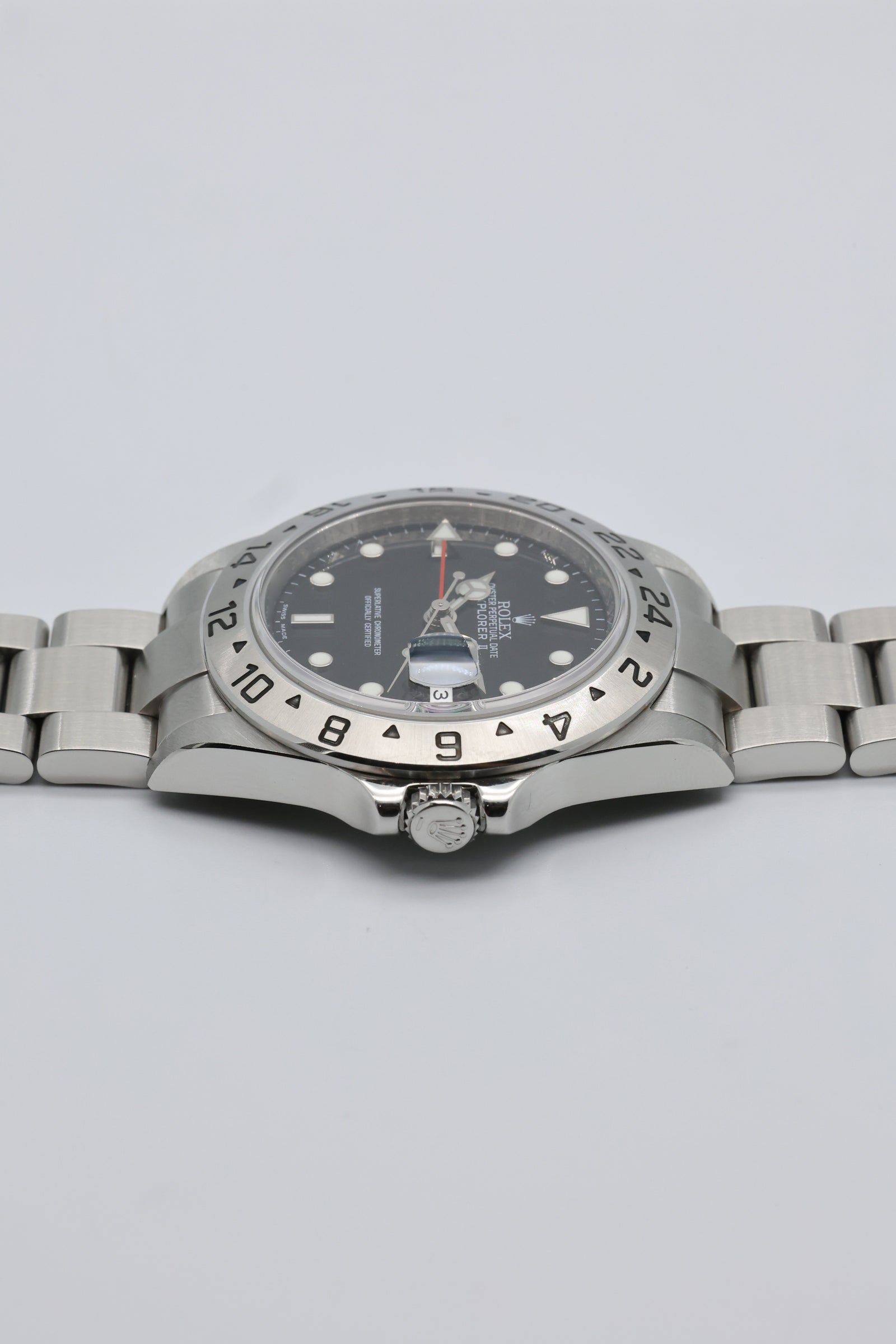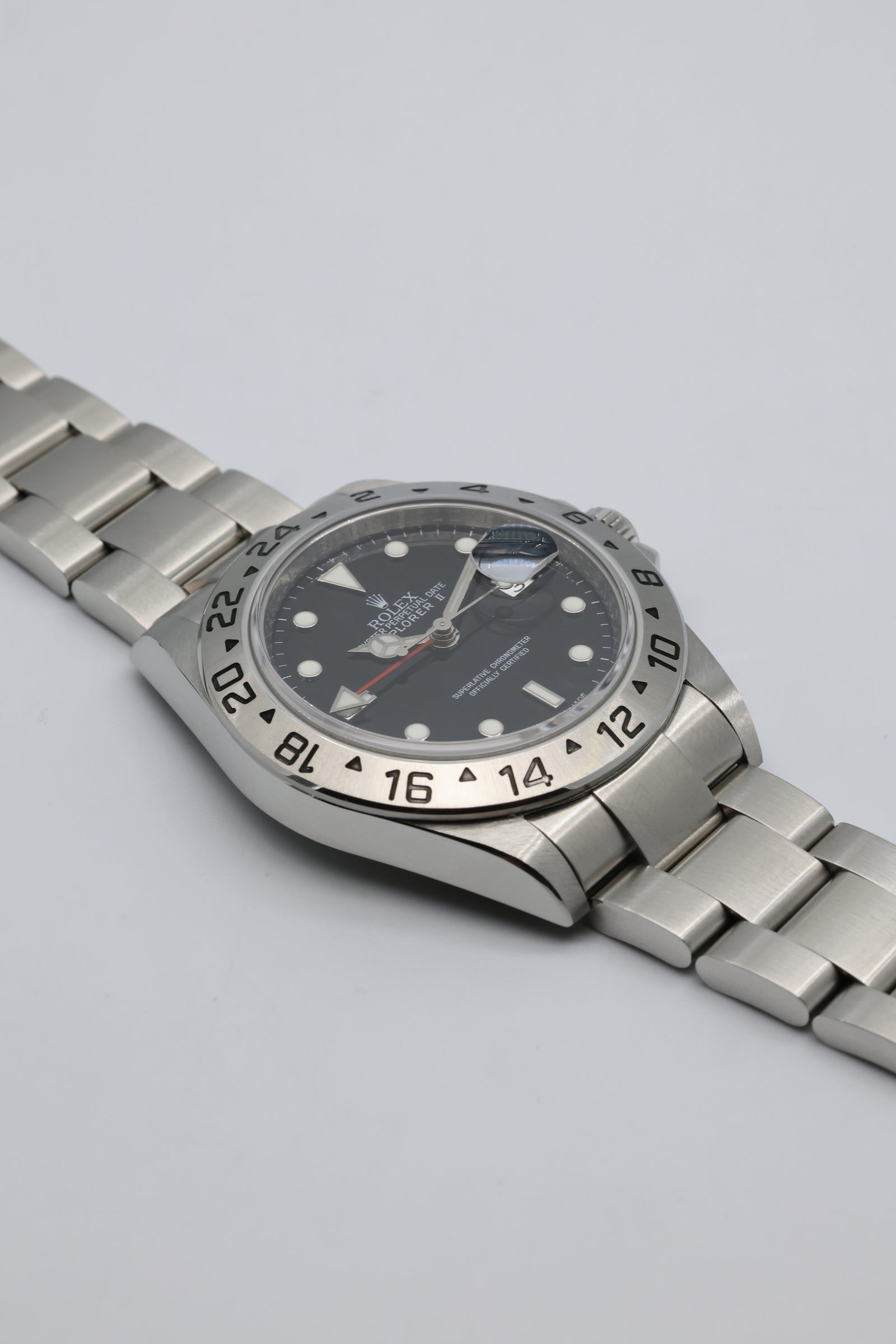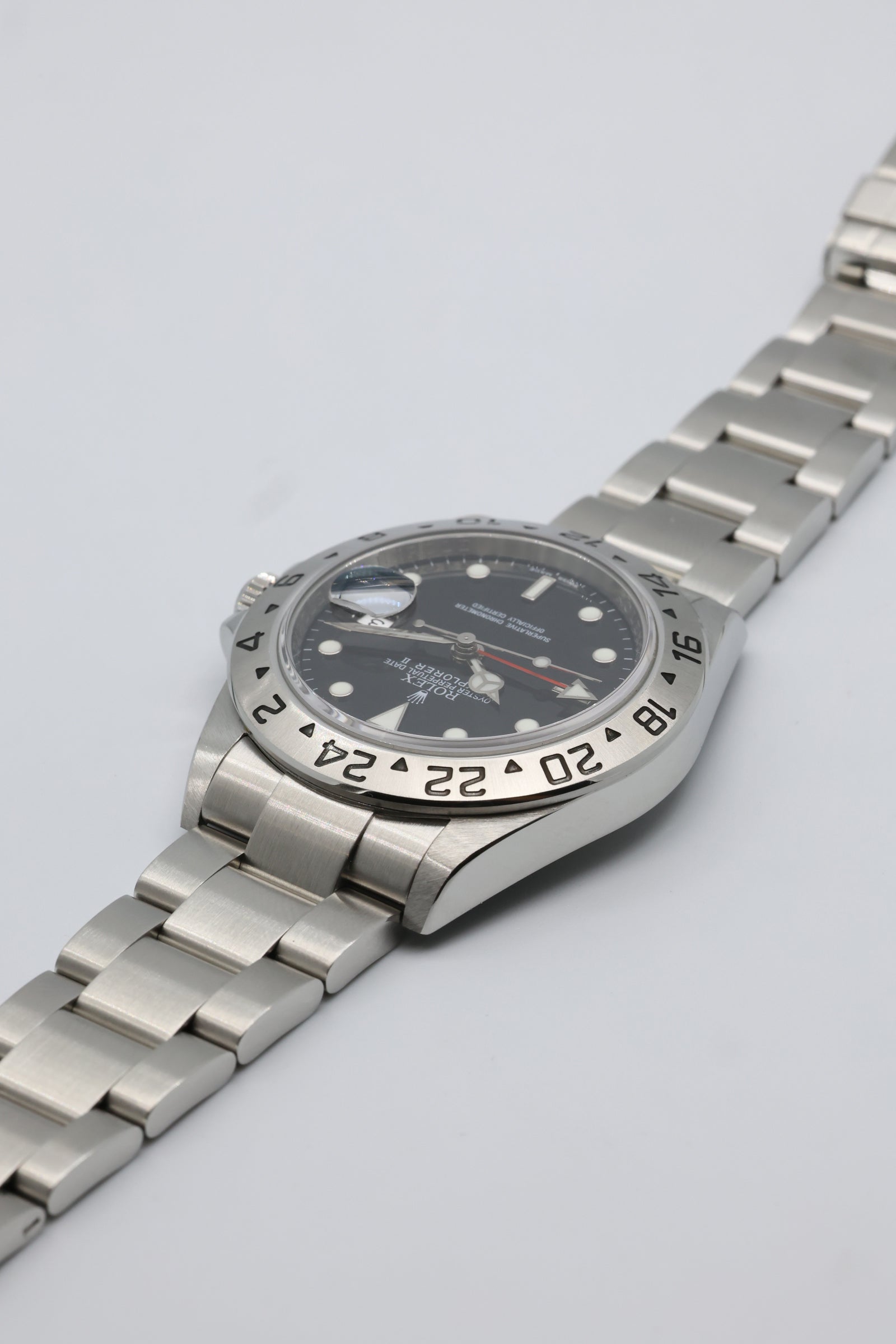 The Rolex Explorer II 16570, produced in 2010, represents the pinnacle of a classic tool watch designed for adventure and utility. Introduced in 1989 and discontinued in 2011, the 16570 is a versatile and understated timepiece that has grown significantly in collector appeal. By 2010, Rolex had refined the model to offer a perfect balance between rugged functionality and everyday wearability. With its distinctive fixed 24-hour bezel and highly legible dial, the Explorer II is designed for adventurers and professionals needing to track day and night cycles, such as spelunkers and polar explorers.