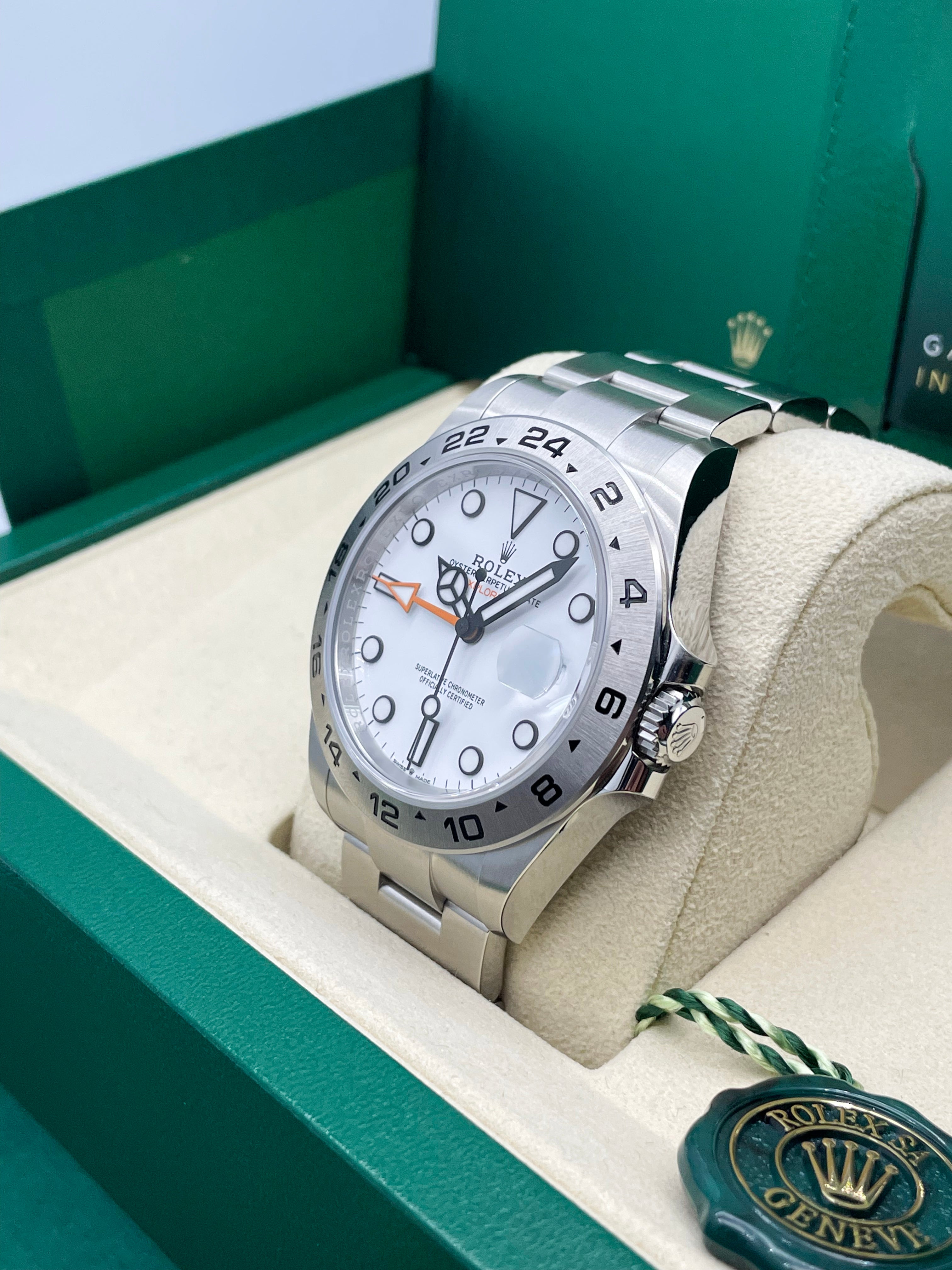 Adding to the comfort and versatility of the 226570 is Rolex’s Oyster bracelet, which features the Easylink comfort extension system, allowing for an easy 5mm adjustment. This subtle feature, paired with the watch’s well-balanced case and lightweight build, ensures a comfortable fit for long periods of wear. The Explorer II 226570 combines vintage-inspired aesthetics with modern robustness, making it an enduring choice for watch enthusiasts who value both Rolex heritage and contemporary performance.
