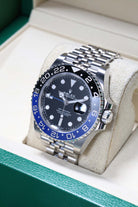 Powering this exceptional timepiece is the high-performance Calibre 3285 movement, equipped with Rolex’s efficient Chronergy escapement and a substantial 70-hour power reserve. Engineered for accuracy and reliability, this advanced mechanism offers excellent resistance to shocks and magnetic fields, ensuring dependable timekeeping wherever your adventures may take you. The Rolex GMT-Master II "Batgirl" on the Jubilee bracelet is a beloved choice for collectors and global citizens alike, embodying Rolex's legacy of exceptional craftsmanship with a design ready for any journey.