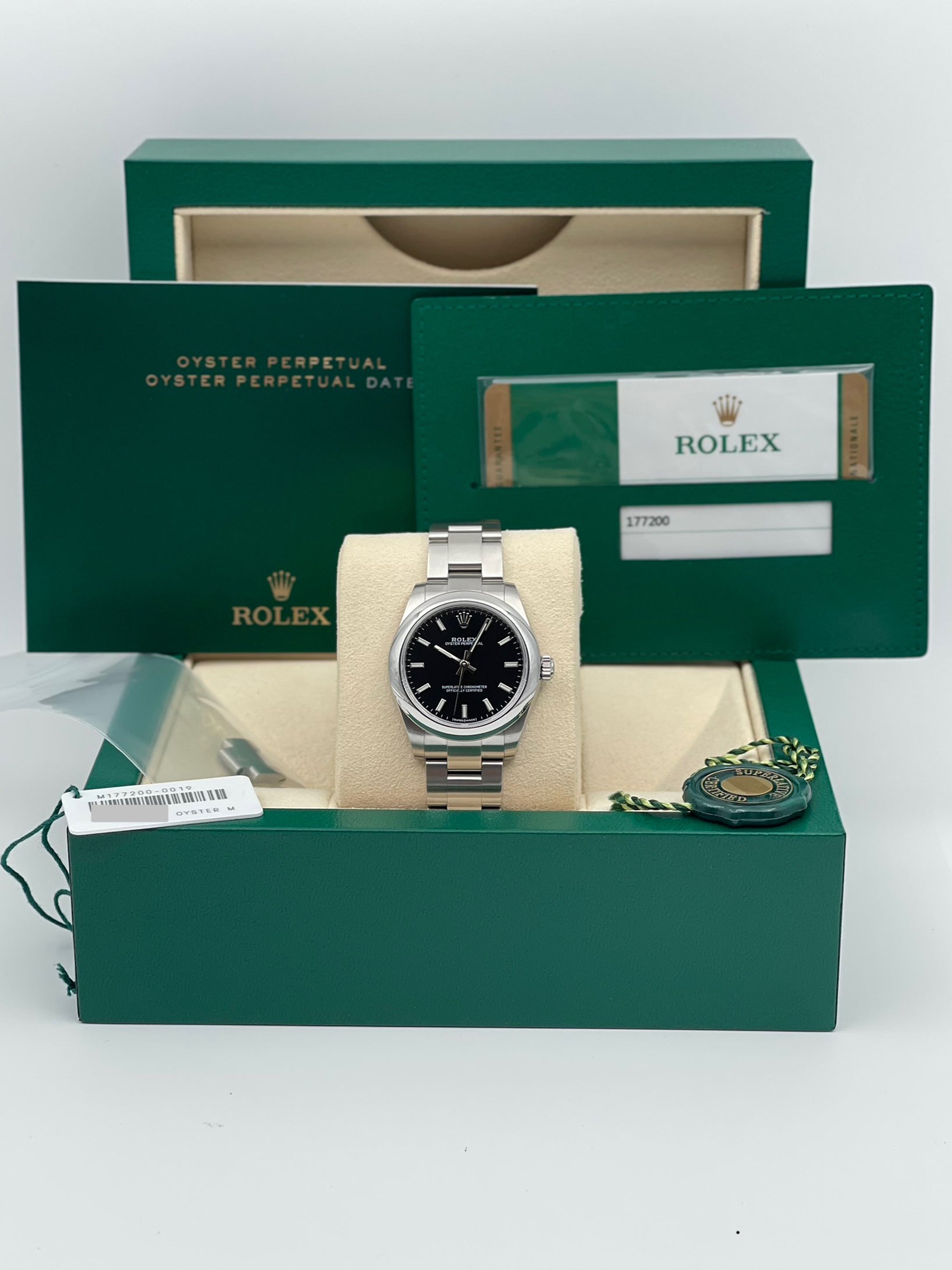 Discontinued in 2020, the 177200 has quietly gained recognition among collectors and enthusiasts as a transitional reference. Its short production run and timeless design make it an appealing choice for those looking to own a subtle yet meaningful piece of Rolex history. With its clean black dial and compact size, this model embodies the pure essence of the Oyster Perpetual line—unfussy, elegant, and enduring.