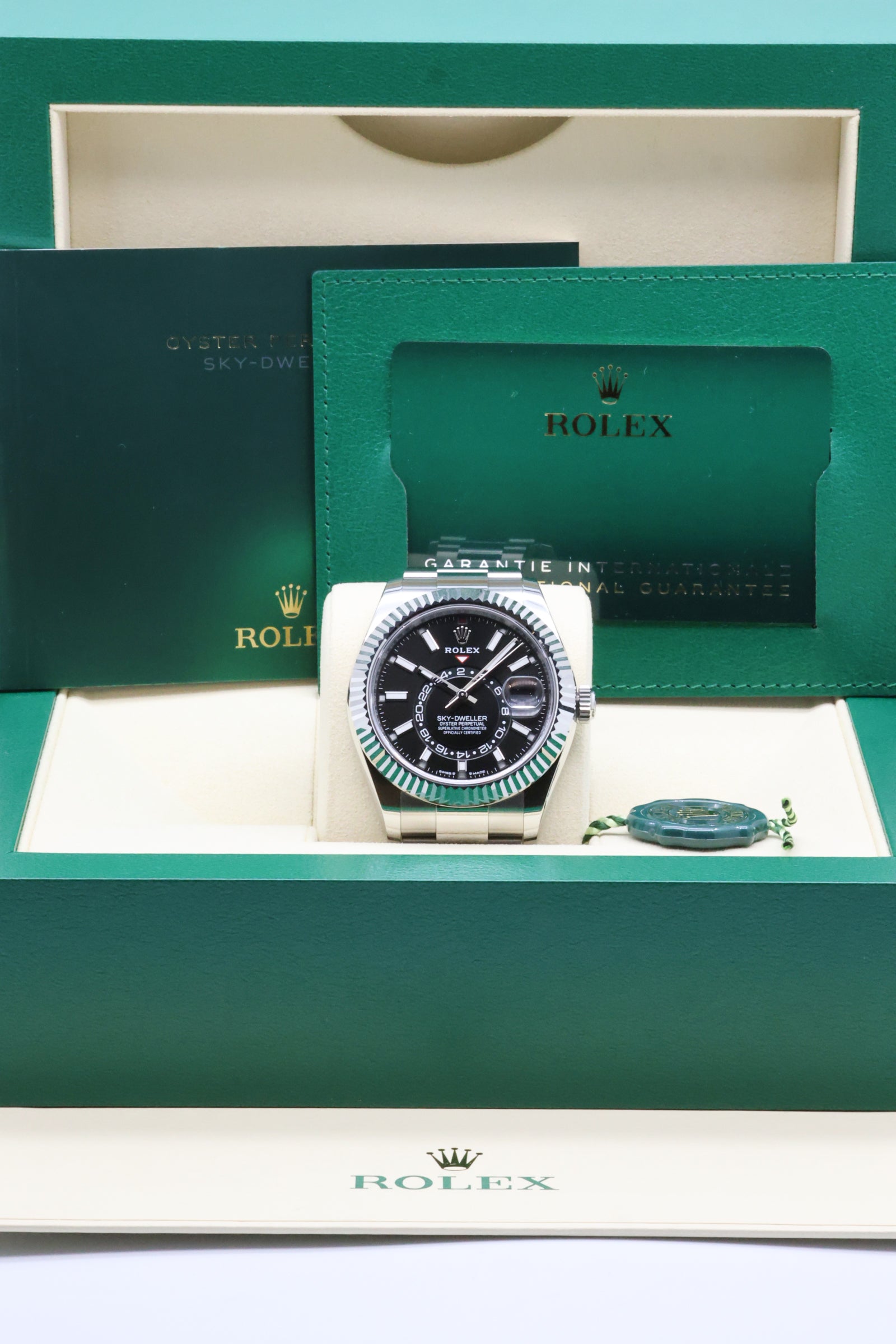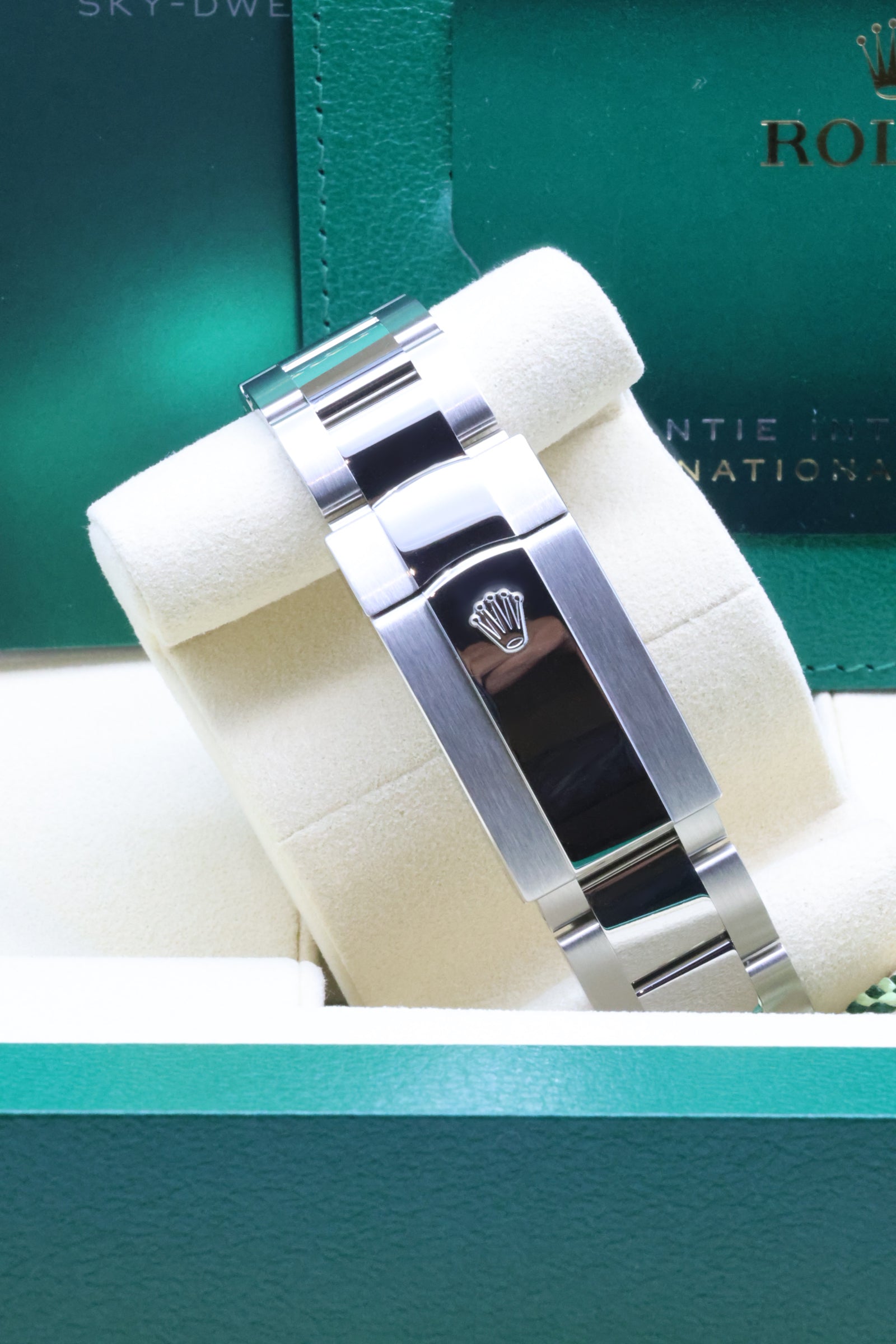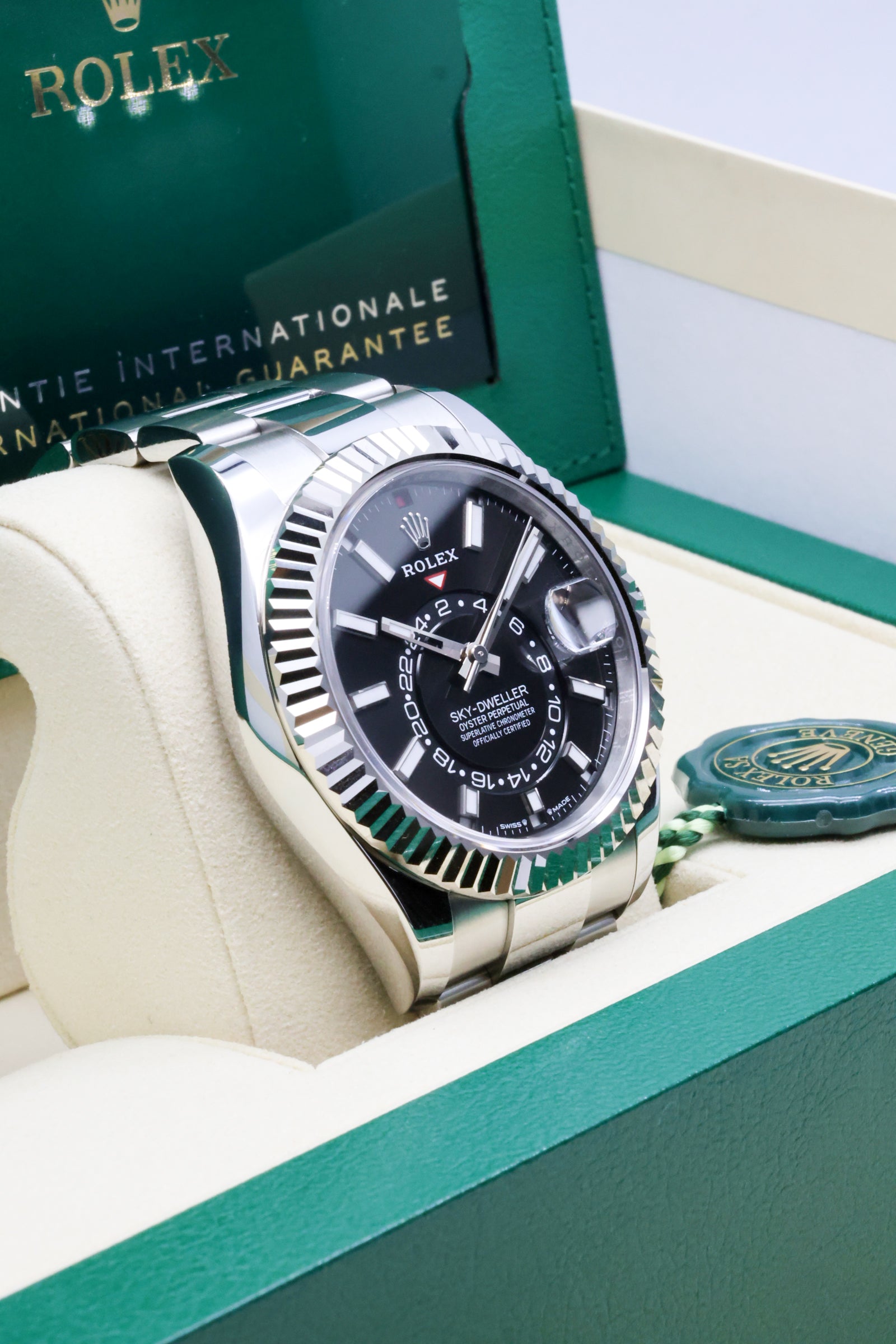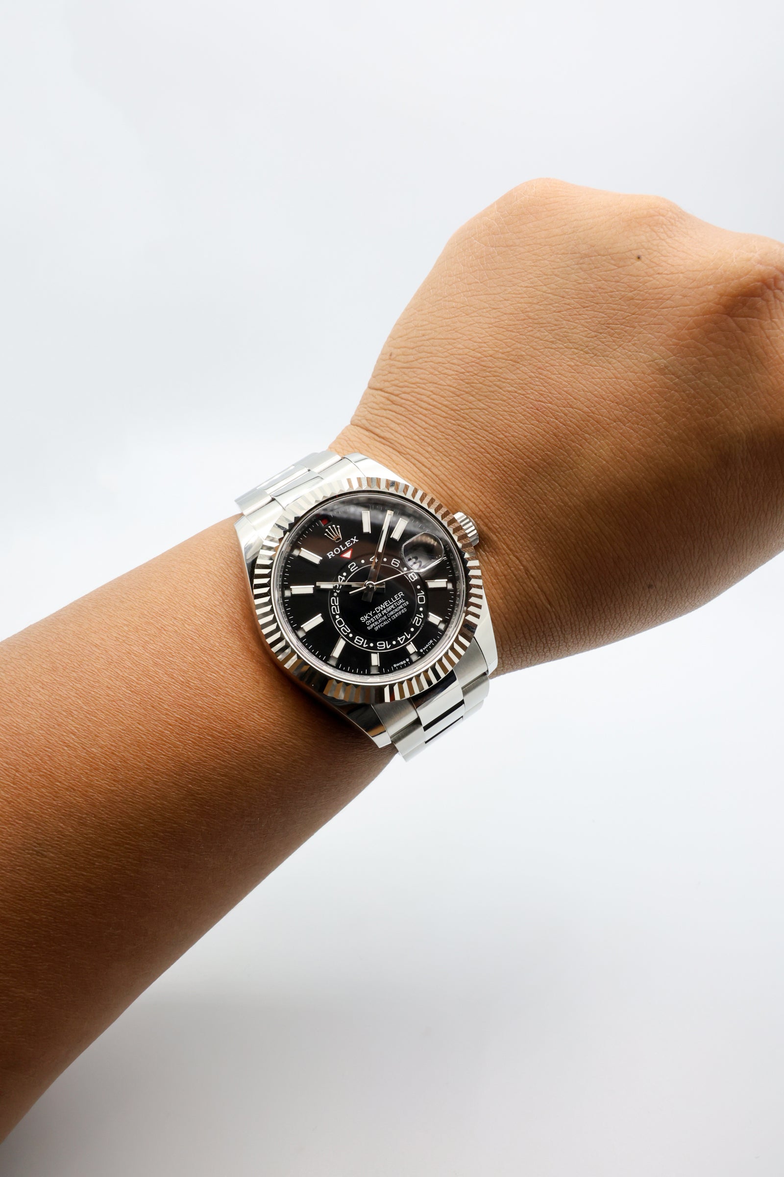 The Sky-Dweller 336934 is not just a technical marvel; it’s a symbol of versatility and sophistication. Its robust Oystersteel construction, paired with the Oyster bracelet featuring the Easylink comfort extension, ensures a secure yet refined wear. This combination of innovation, craftsmanship, and timeless design has cemented the Sky-Dweller as a favorite among globetrotters and collectors who seek the ultimate expression of Rolex’s technical prowess.